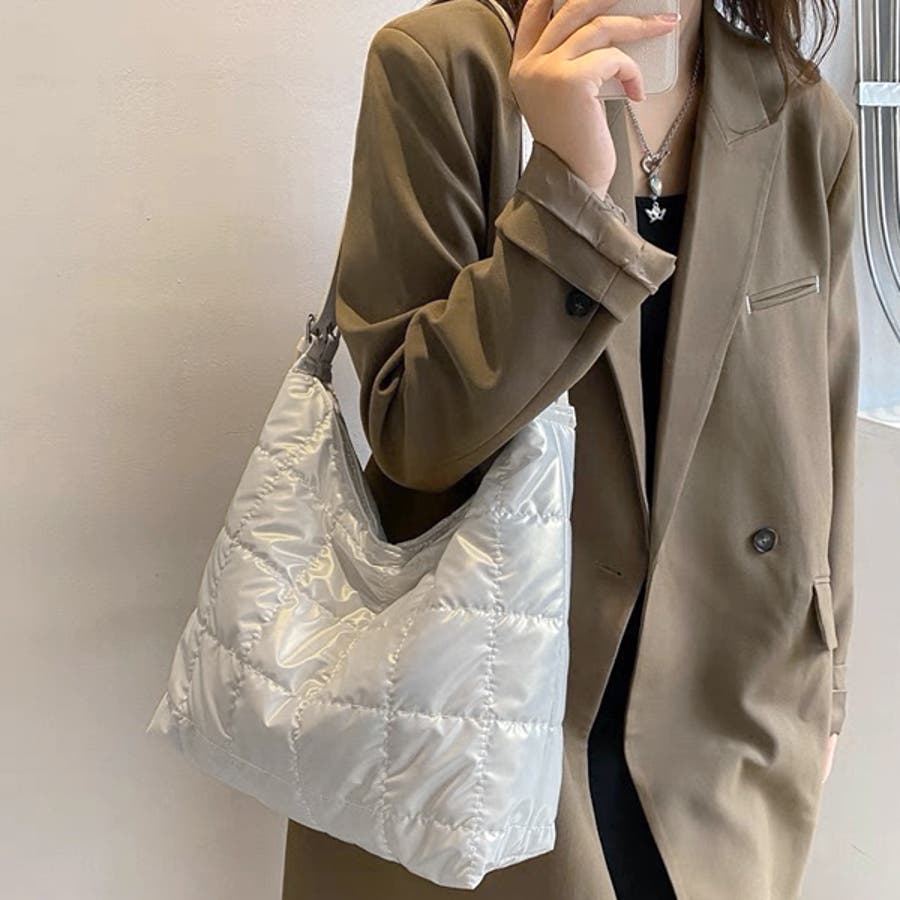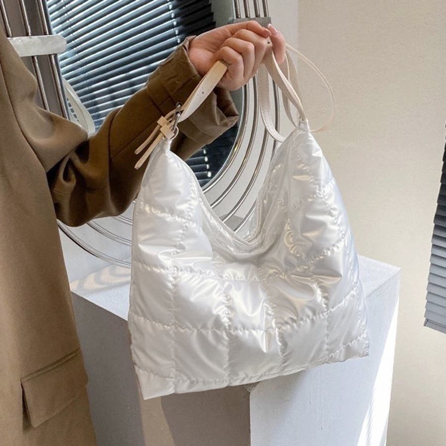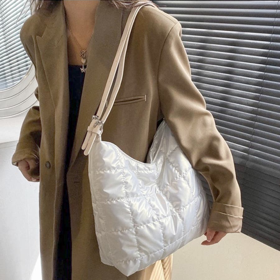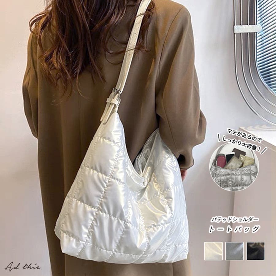 春 春コーデ 春ファッション 春服 夏 夏コーデ 夏ファッション 夏服 カジュアル カジュアルコーデ 大人 大人カジュアル オフィスカジュアル オフィス オフィスファッション オフィススタイル 韓国 韓国ファッション 韓国コーデ プチプラ プチプラファッション レディース Y2K 量産型 キレイめ 綺麗め きれい きちんと パデッド パデッドバッグ キルティング キルティングバッグ ショルダーバッグ 大容量 トートバッグ メタリック シルバー シルバーバッグ 通勤 通学 大容量サイズ セカンドバッグ シルバー オフ ナチュラル ブラック 白 黒