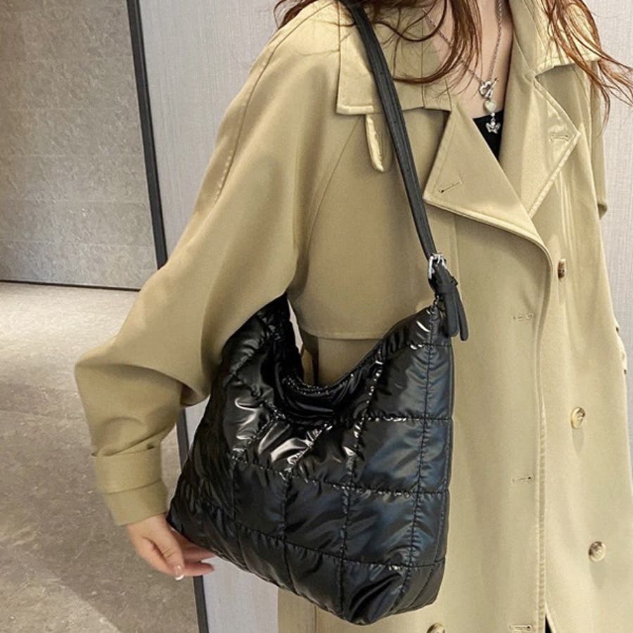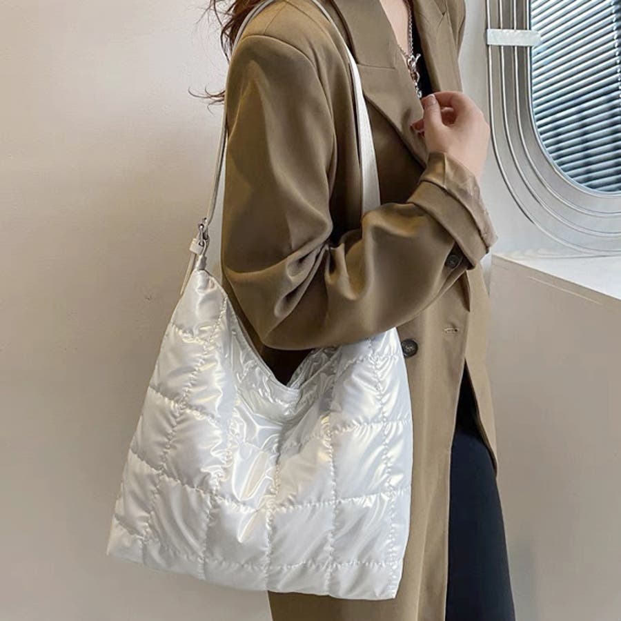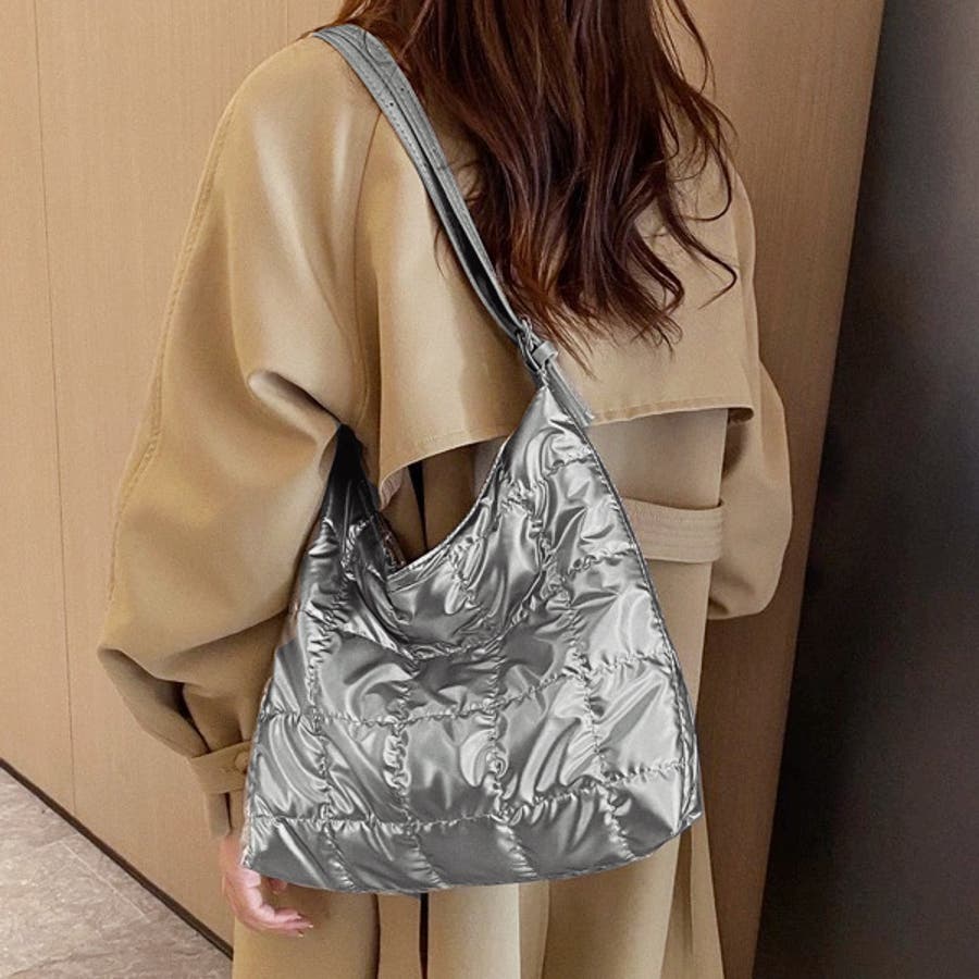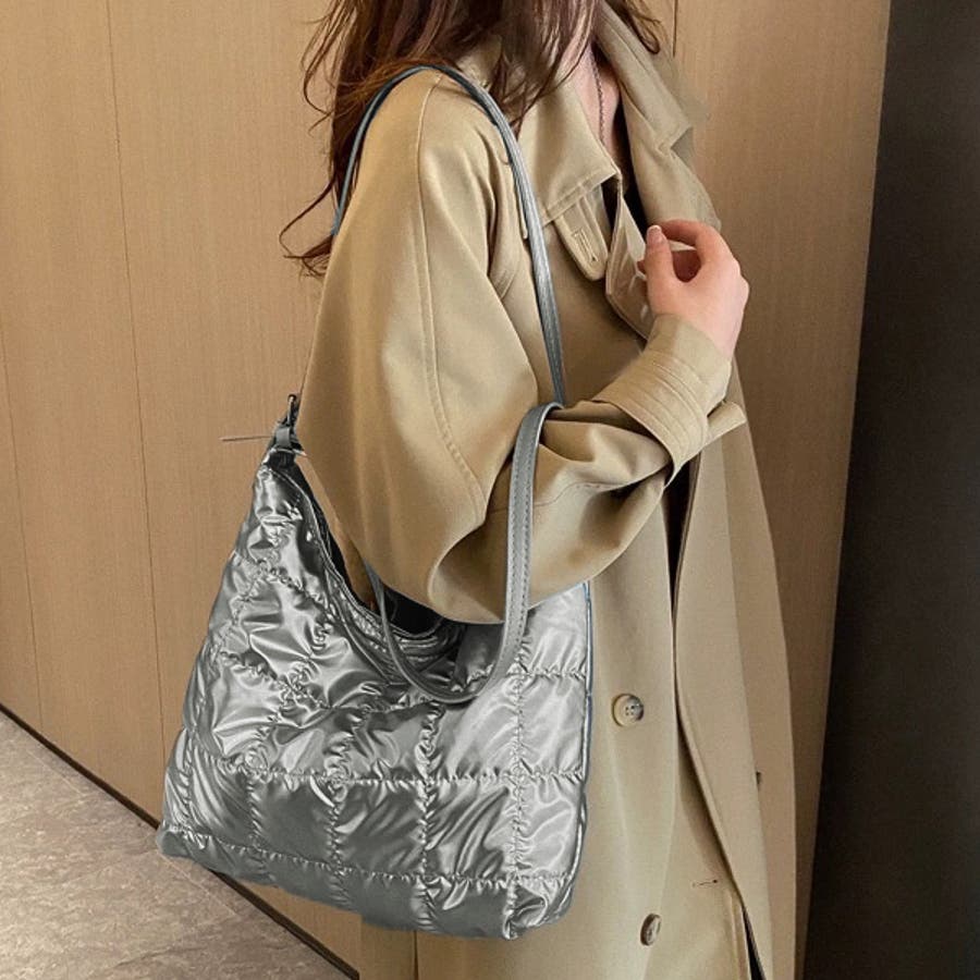 春 春コーデ 春ファッション 春服 夏 夏コーデ 夏ファッション 夏服 カジュアル カジュアルコーデ 大人 大人カジュアル オフィスカジュアル オフィス オフィスファッション オフィススタイル 韓国 韓国ファッション 韓国コーデ プチプラ プチプラファッション レディース Y2K 量産型 キレイめ 綺麗め きれい きちんと パデッド パデッドバッグ キルティング キルティングバッグ ショルダーバッグ 大容量 トートバッグ メタリック シルバー シルバーバッグ 通勤 通学 大容量サイズ セカンドバッグ シルバー オフ ナチュラル ブラック 白 黒