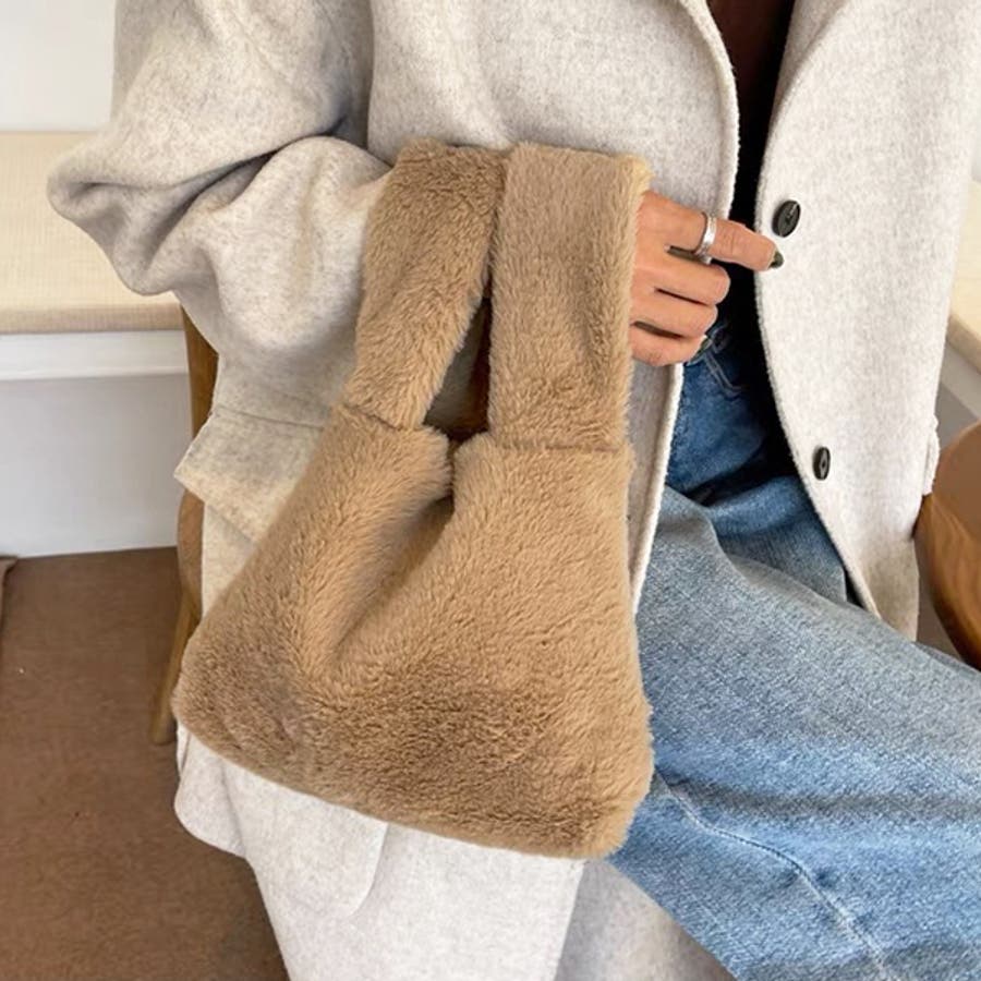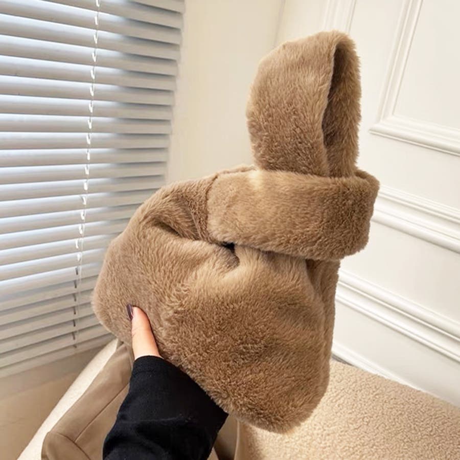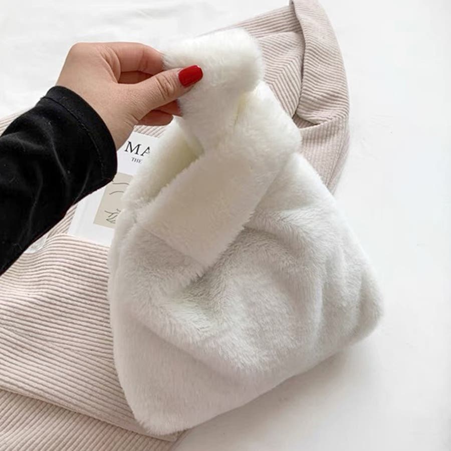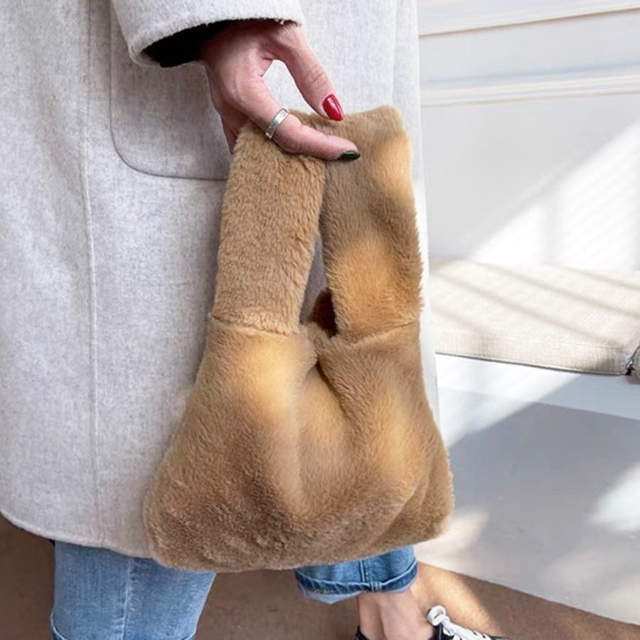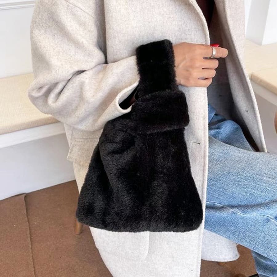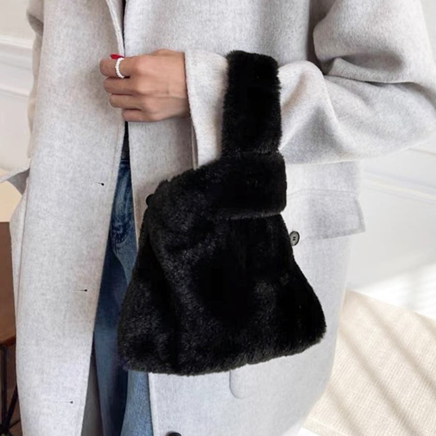 毛足長めでふわふわな素材感のエコファーミニバッグ!