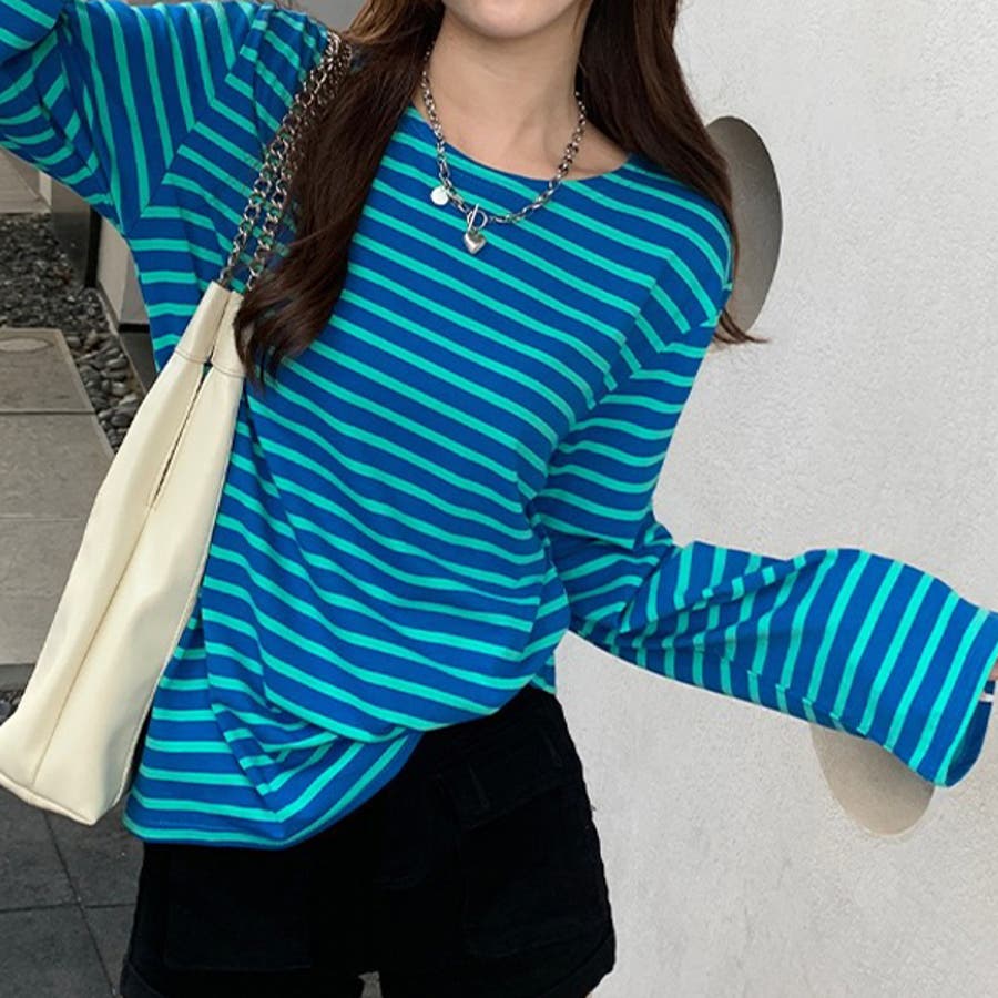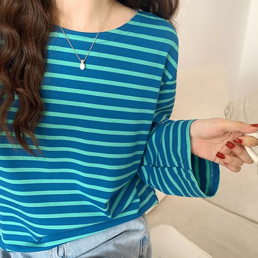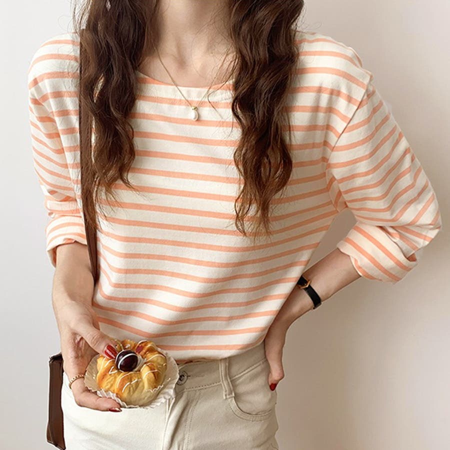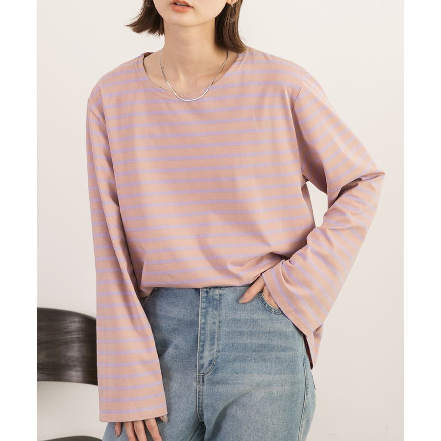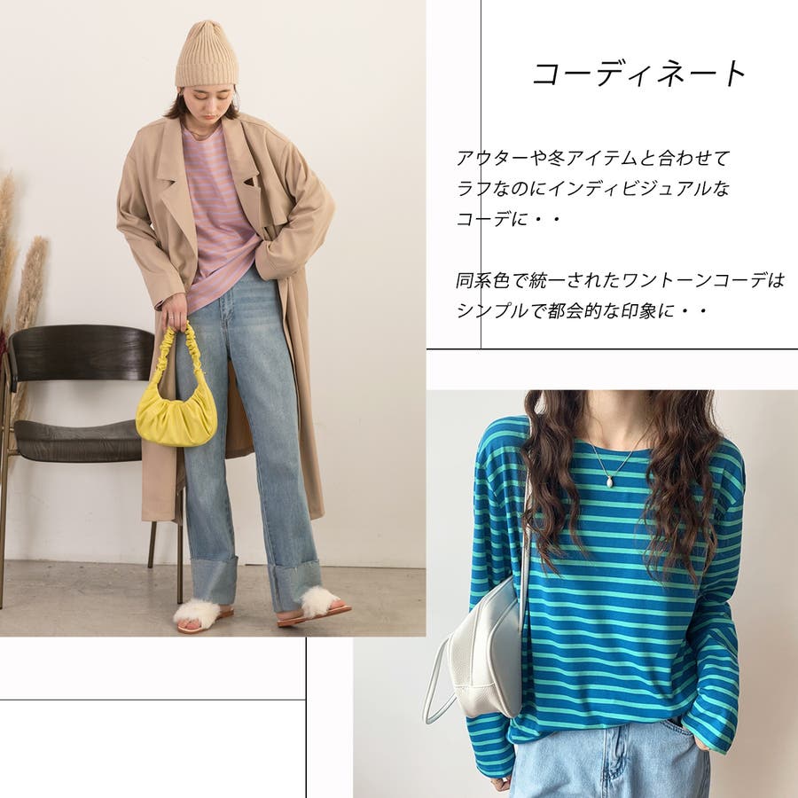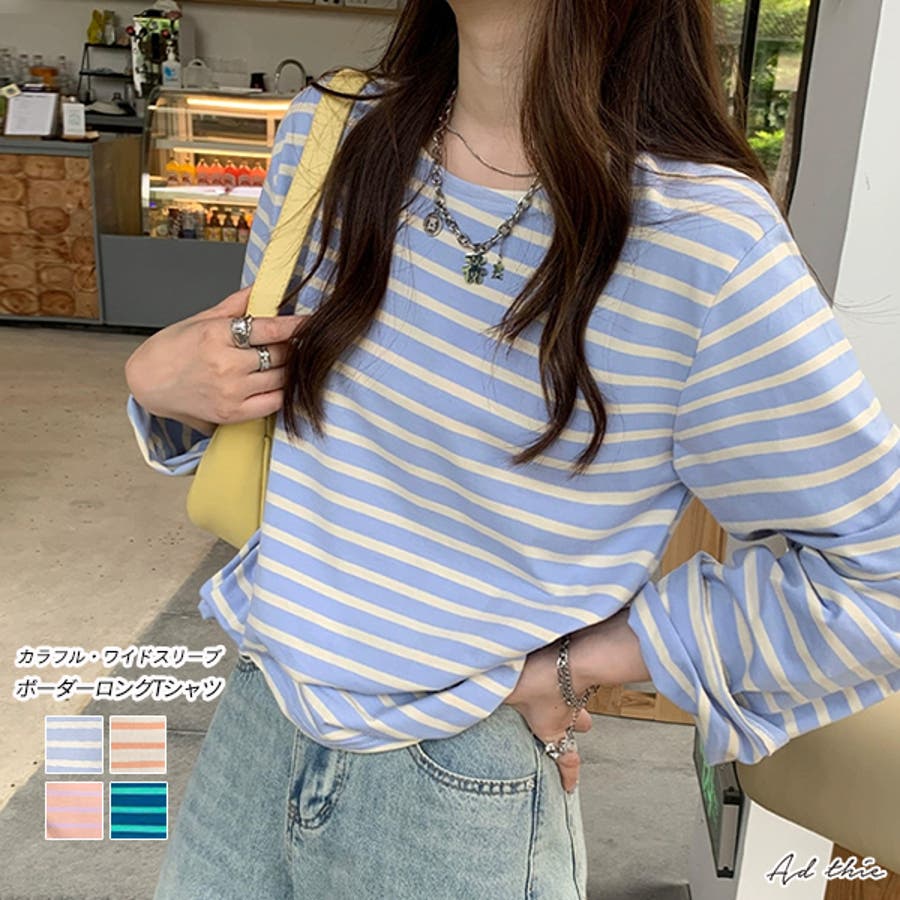 春 春コーデ 春ファッション 春服 冬 冬コーデ 冬ファッション 冬服 カジュアル カジュアルコーデ 大人 大人カジュアル オフィスカジュアル オフィス オフィスファッション オフィススタイル 韓国 韓国ファッション 韓国コーデ プチプラ プチプラファッション レディース Y2K 量産型 キレイめ 綺麗め きれい きちんと ボーダー ボーダーTシャツ ロングTシャツ ワイドスリーブ Tシャツ カラーボーダー カットソー レディース トップス ロンT 長袖 ドロップショルダー クルーネック シンプル ゆったり フレアスリーブ 楽ちん 楽 ピンク ブルー オレンジ ライトブルー