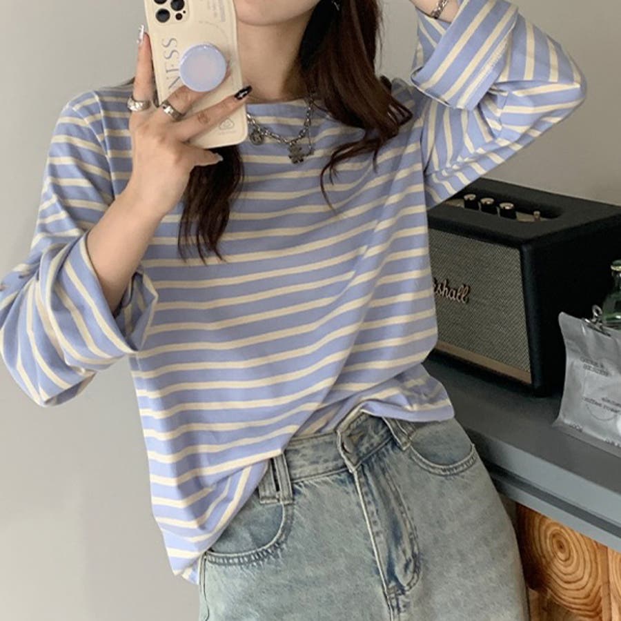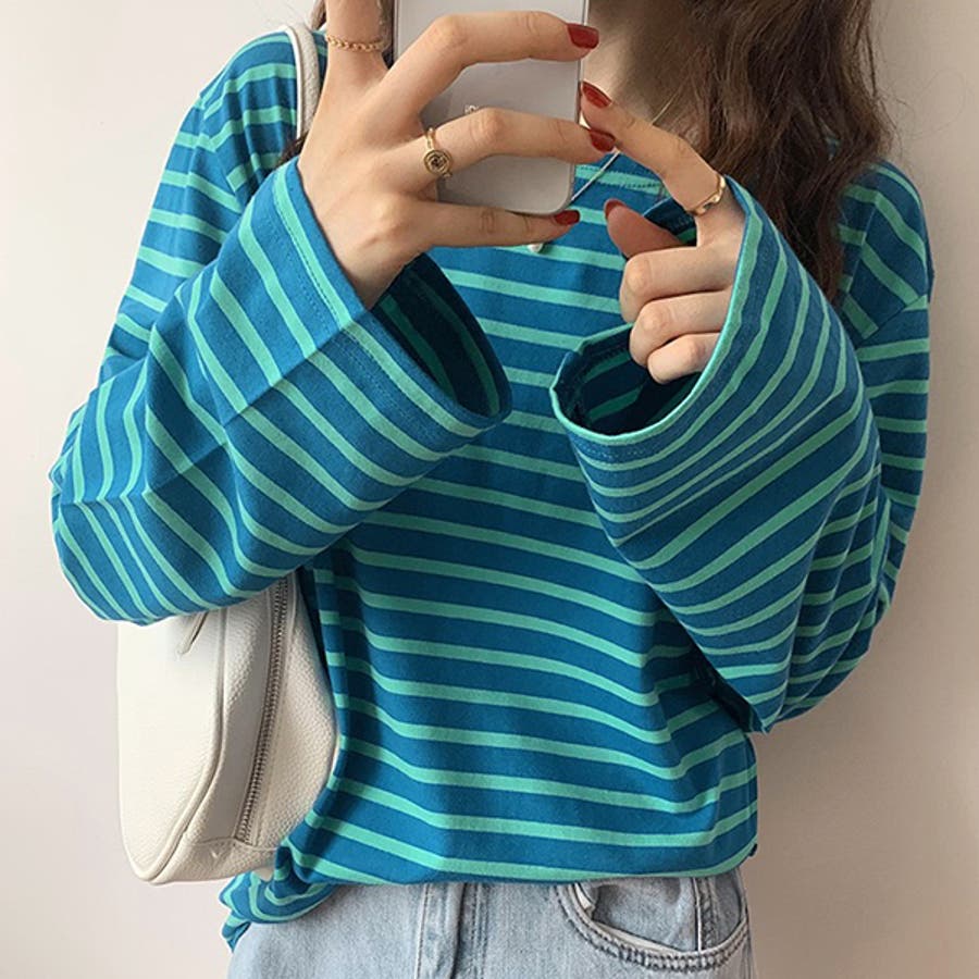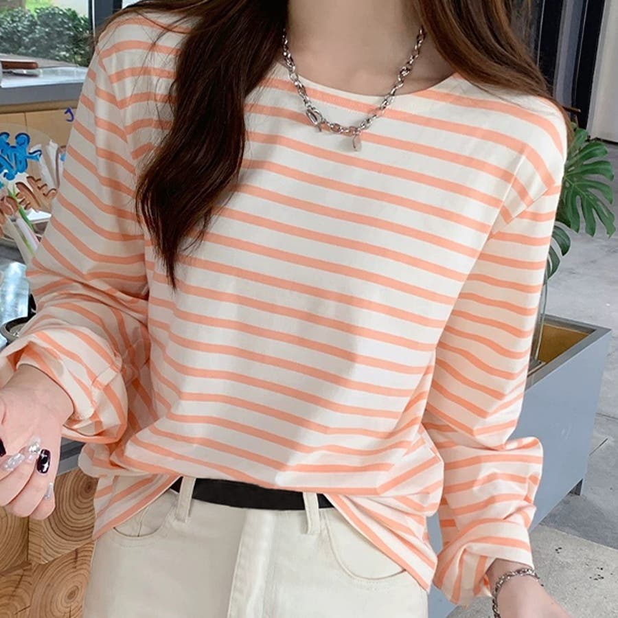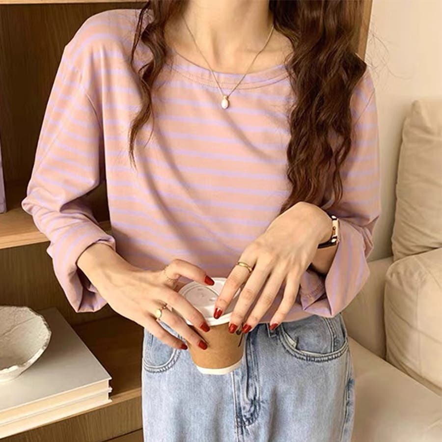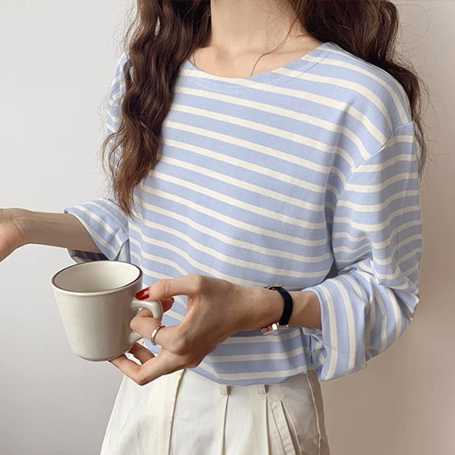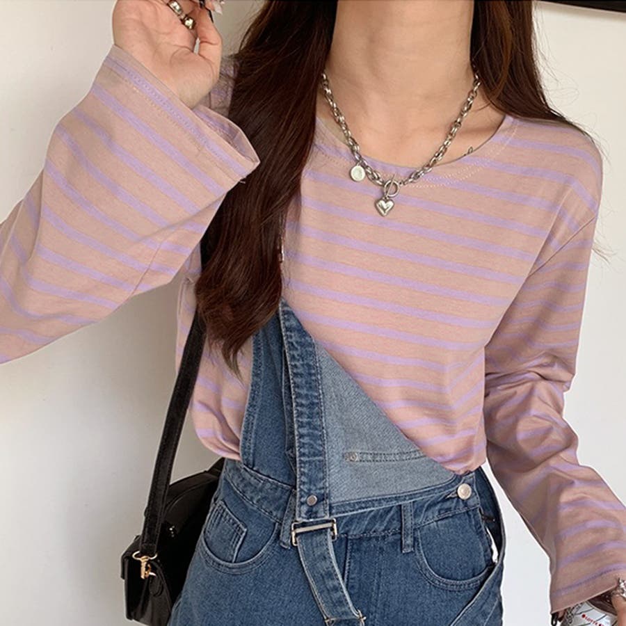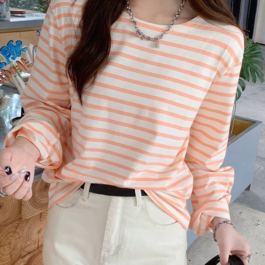 春 春コーデ 春ファッション 春服 冬 冬コーデ 冬ファッション 冬服 カジュアル カジュアルコーデ 大人 大人カジュアル オフィスカジュアル オフィス オフィスファッション オフィススタイル 韓国 韓国ファッション 韓国コーデ プチプラ プチプラファッション レディース Y2K 量産型 キレイめ 綺麗め きれい きちんと ボーダー ボーダーTシャツ ロングTシャツ ワイドスリーブ Tシャツ カラーボーダー カットソー レディース トップス ロンT 長袖 ドロップショルダー クルーネック シンプル ゆったり フレアスリーブ 楽ちん 楽 ピンク ブルー オレンジ ライトブルー