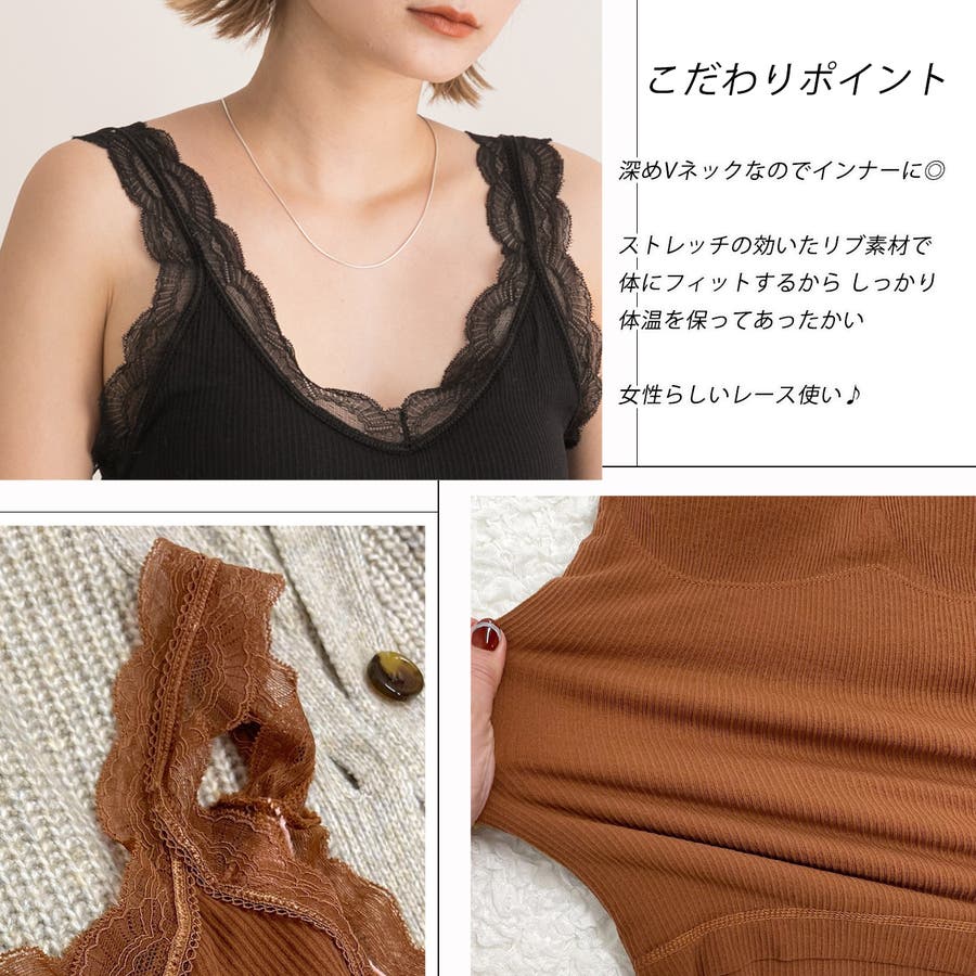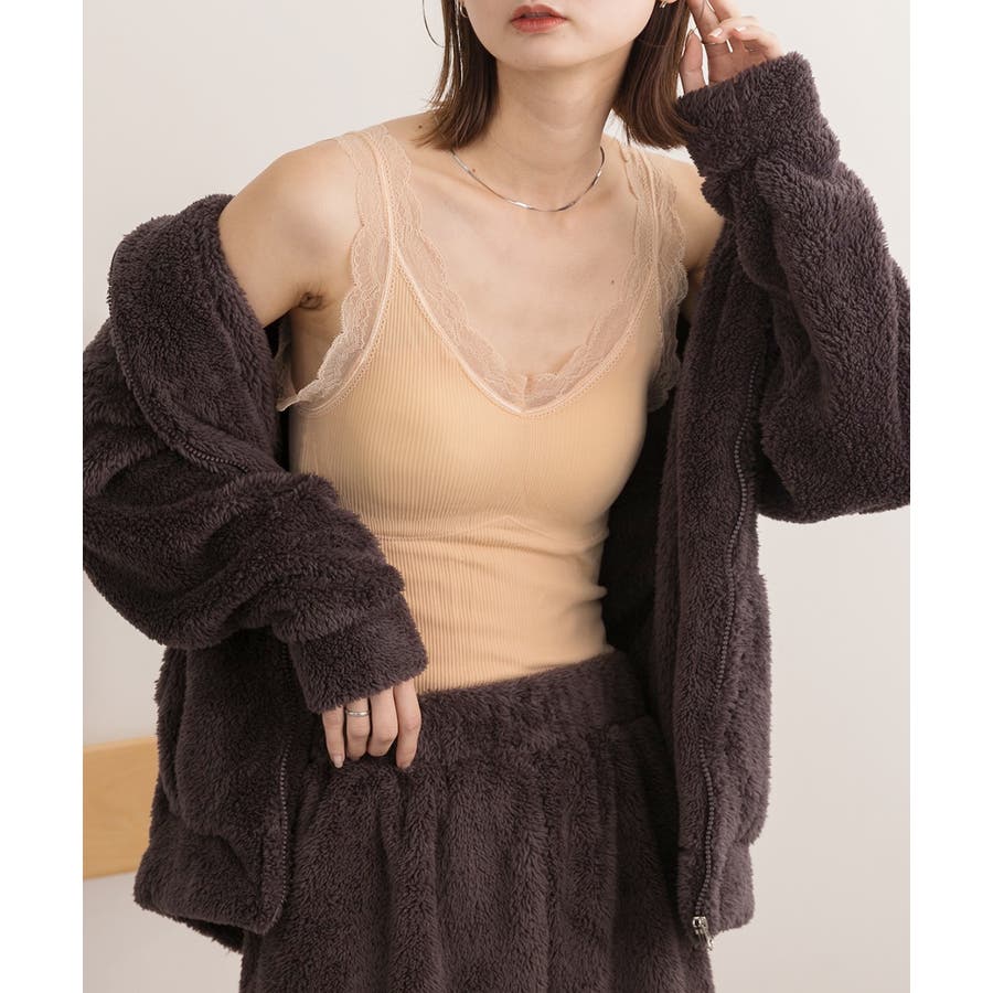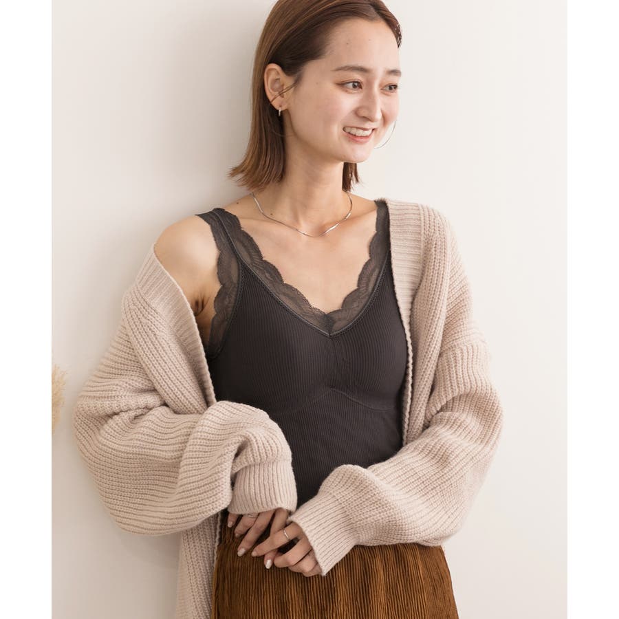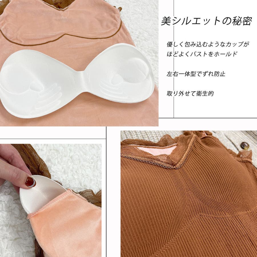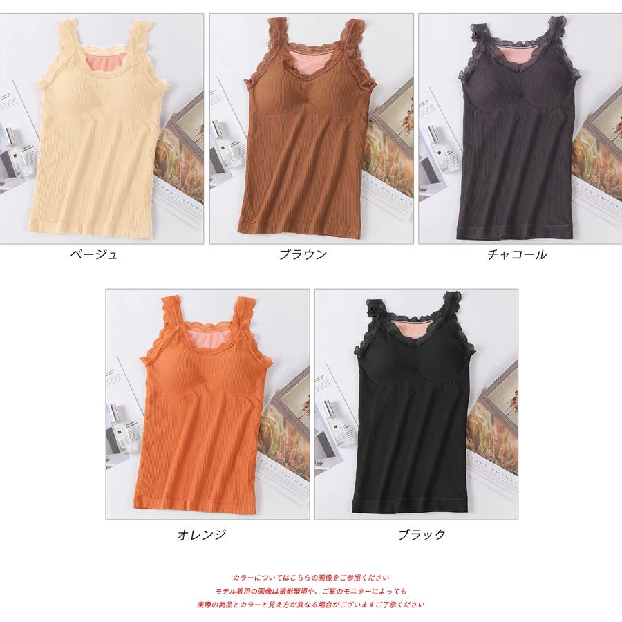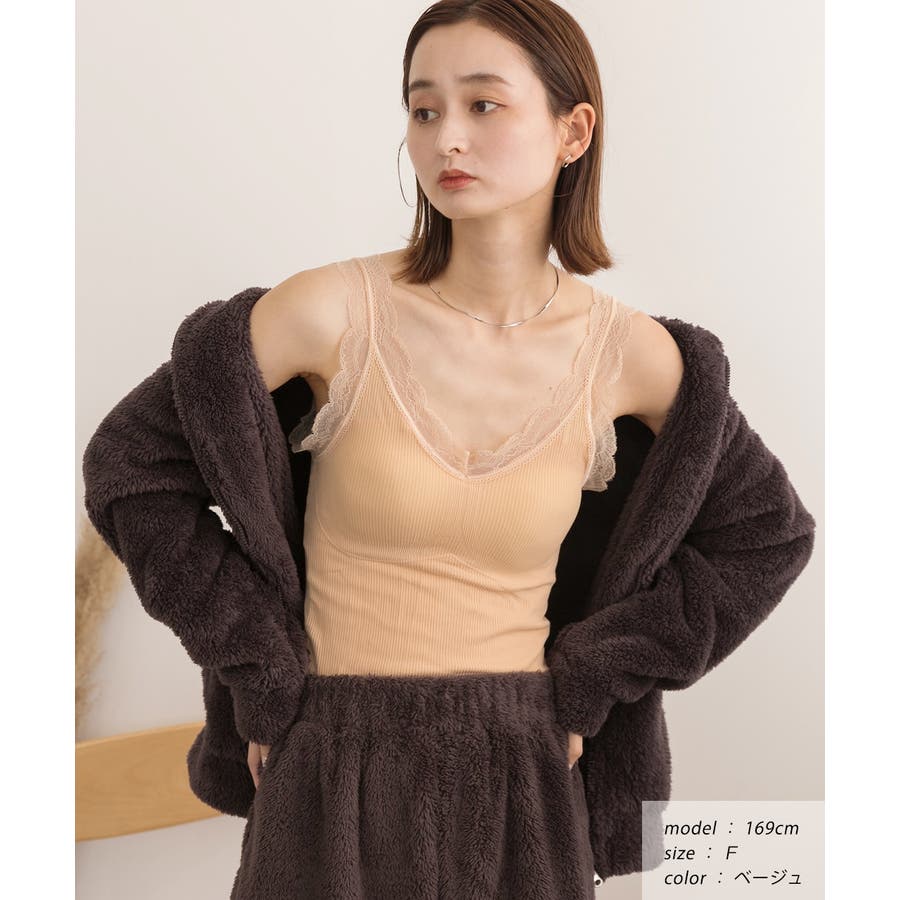 裏起毛が暖かいカップ付きレースキャミソール!