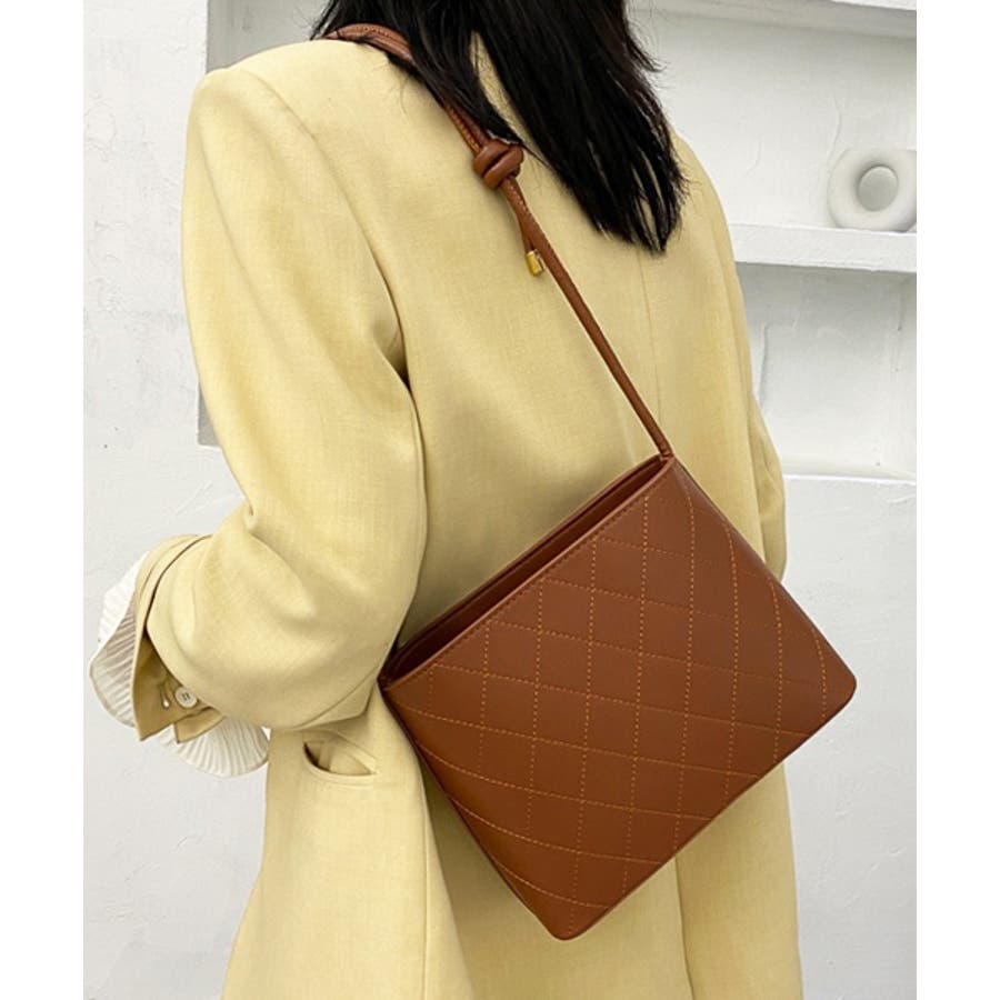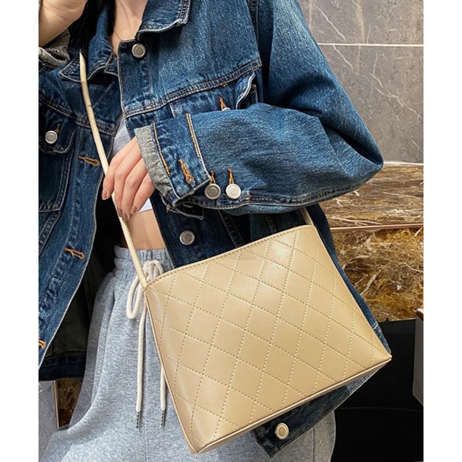 春 春コーデ 春ファッション 春服 冬 冬コーデ 冬ファッション 冬服 カジュアル カジュアルコーデ 大人 大人カジュアル オフィスカジュアル オフィス オフィスファッション オフィススタイル 韓国 韓国ファッション 韓国コーデ プチプラ プチプラファッション レディース Y2K 量産型 キレイめ 綺麗め きれい きちんと シンプルバッグ ベーシックカラー ショルダーバッグ ステッチ ベージュ ブラック 黒 ブラウン スクエアバッグ レザーバッグ キルティング キルティングバッグ