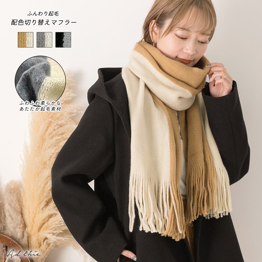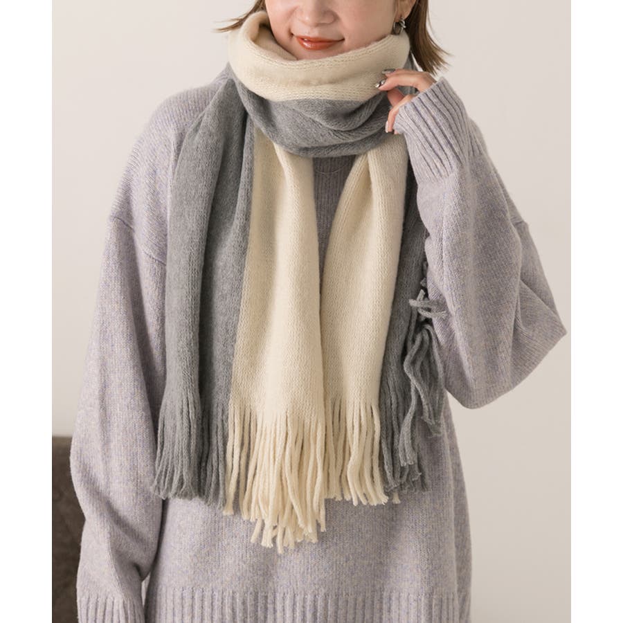 春 春コーデ 春ファッション 春服 冬 冬コーデ 冬ファッション 冬服 カジュアル カジュアルコーデ 大人 大人カジュアル オフィスカジュアル オフィス オフィスファッション オフィススタイル 韓国 韓国ファッション 韓国コーデ プチプラ プチプラファッション レディース Y2K 量産型 キレイめ 綺麗め きれい きちんと マフラー 起毛マフラー グレー アイボリー ブラック グレー 黒 ブラウン アイボリー 配色切り替えマフラー バイカラーマフラー 配色マフラー 保温 防寒 防寒対策 暖か 暖かい あったか フリンジ ふわふわ