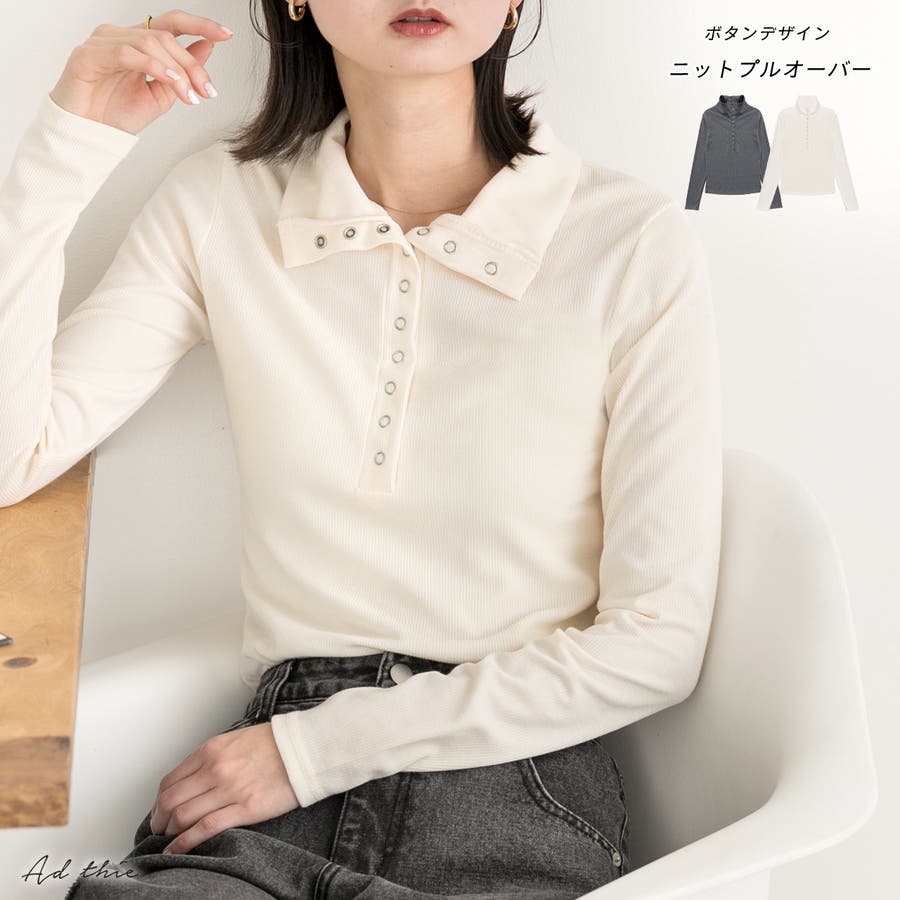 釦デザイン ニットプルオーバー