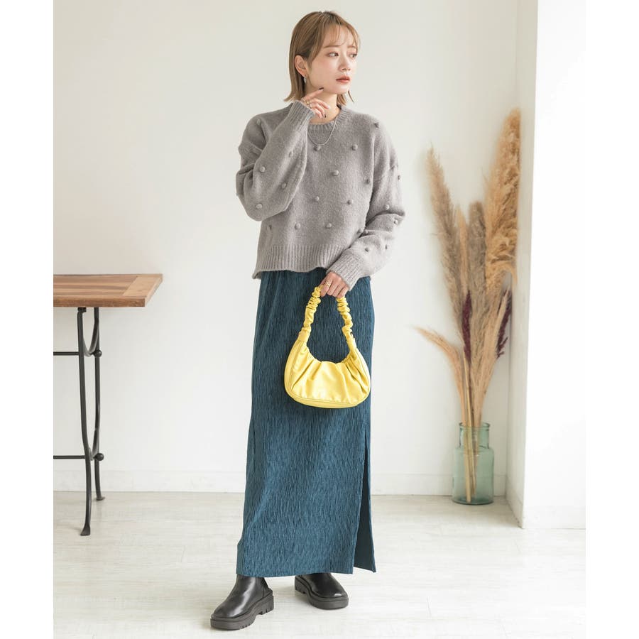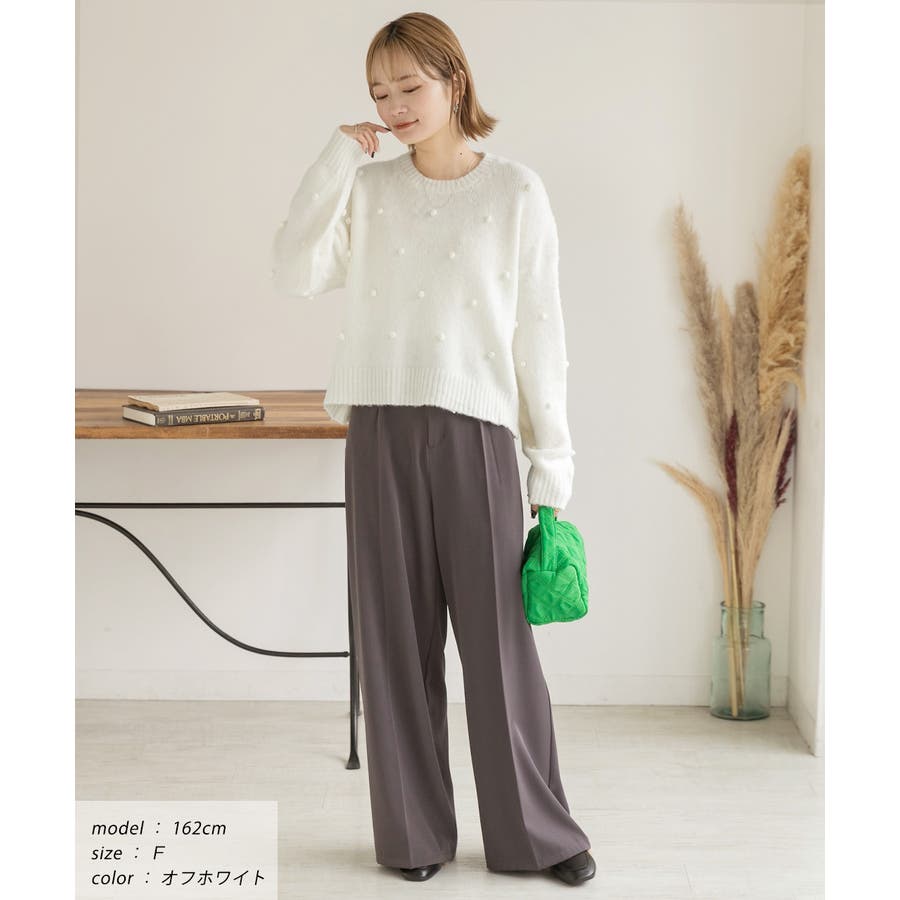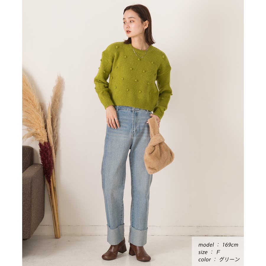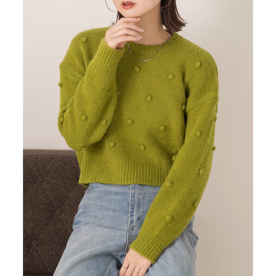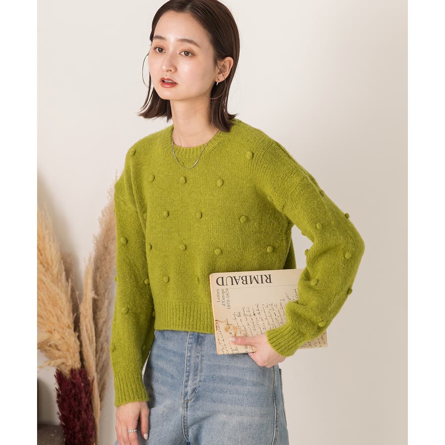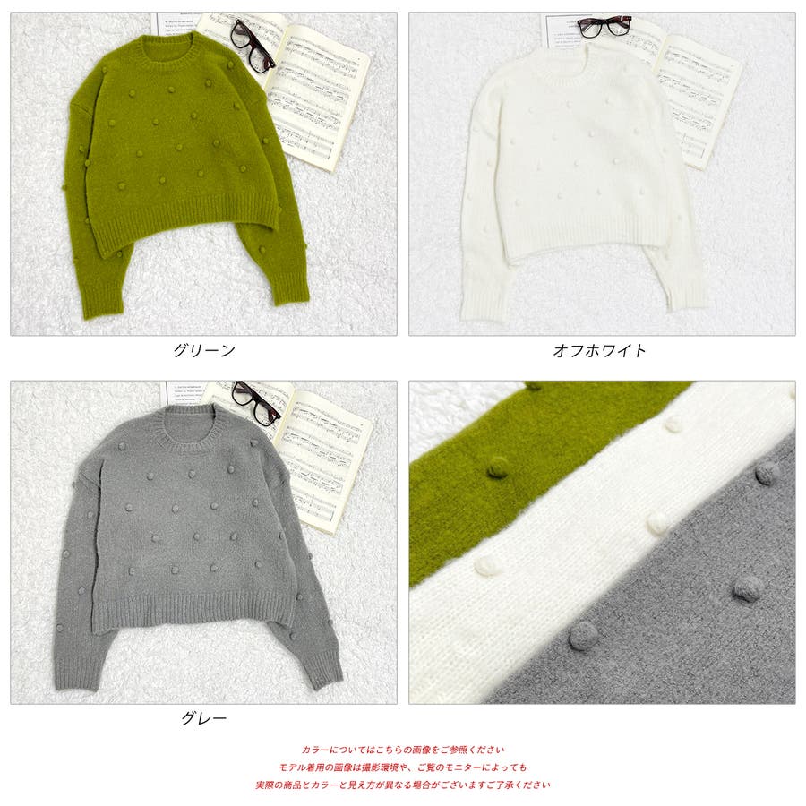 春 春コーデ 春ファッション 春服 冬 冬コー冬ファッション 冬服 カジュアル カジュアルコーデ 大人 大人カジュアル オフィスカジュアル オフィス オフィスファッション オフィススタイル 韓国 韓国ファッション 韓国コーデ プチプラ プチプラファッション レディース Y2K 量産型 キレイめ 綺麗め きれい きちんと ニット ニットトップス セーター ワイド ショート丈 ショート丈ニット ふわふわニットポンポン ドット オフホワイト 白 グレー グリーン