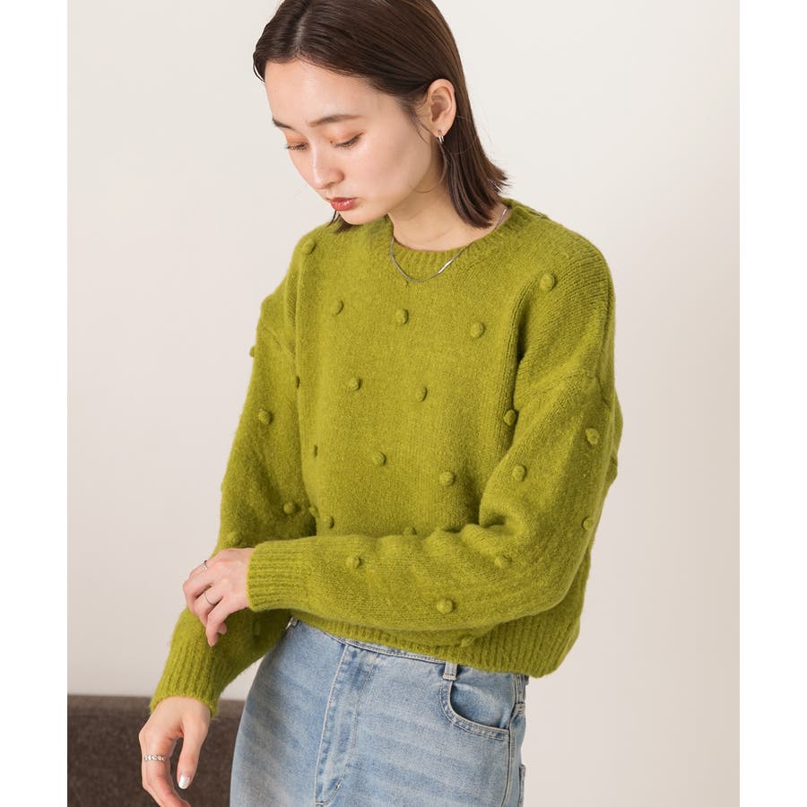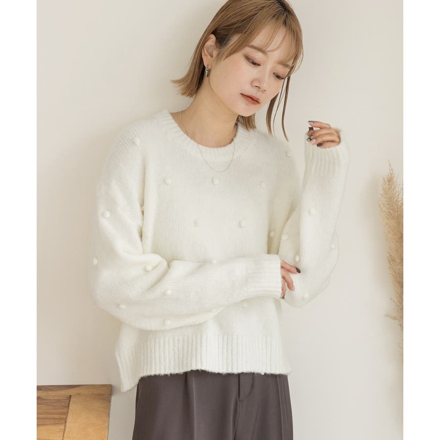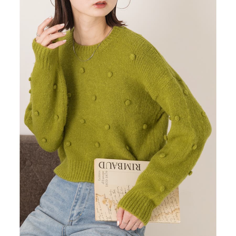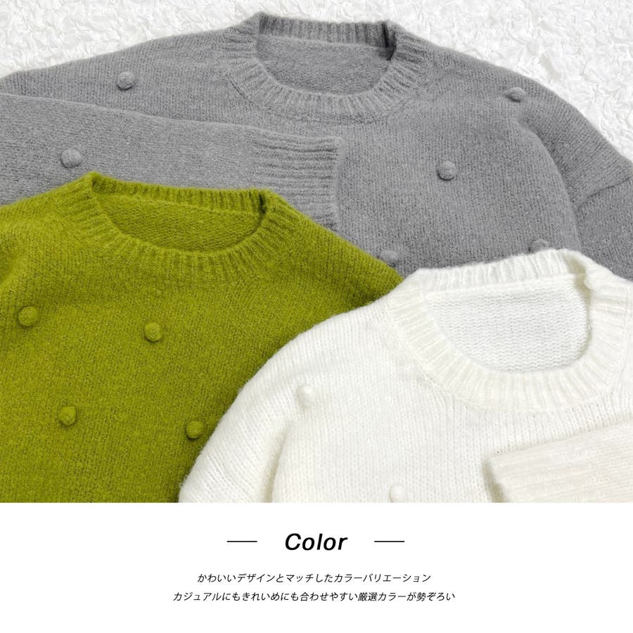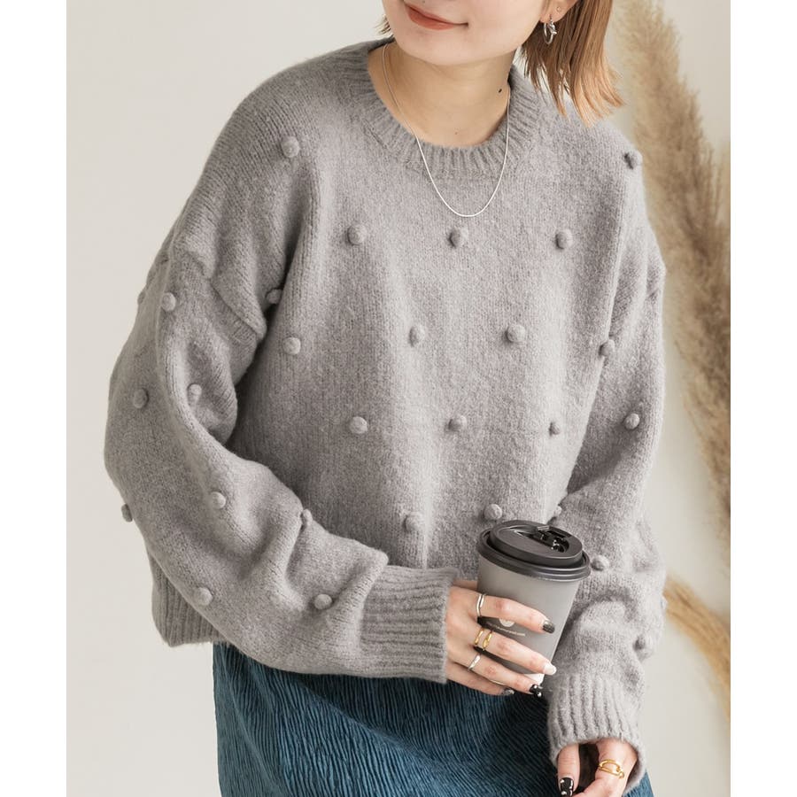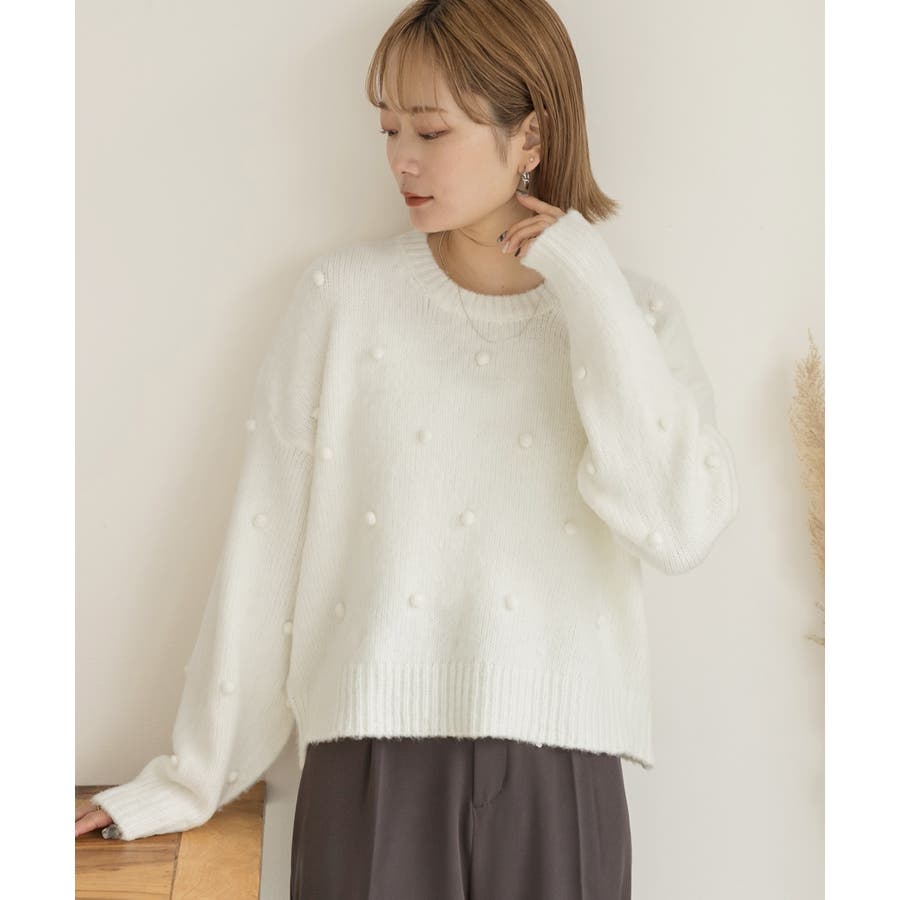 立体的なドットデザインが可愛いやわらかクルーネックニットトップス