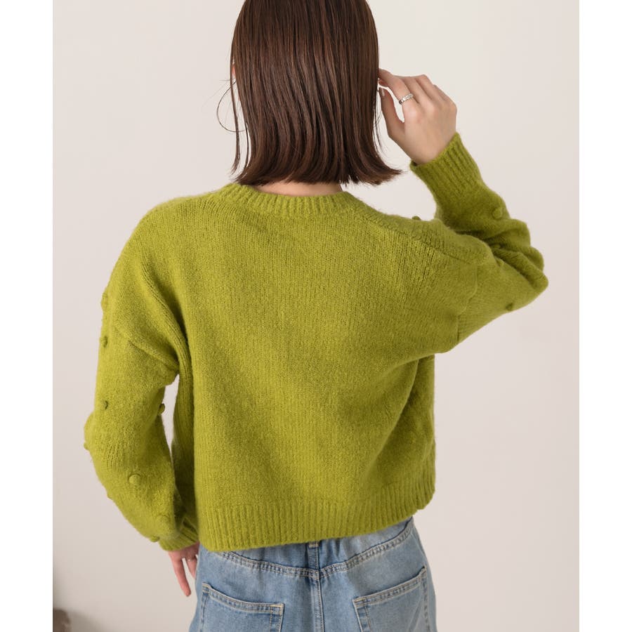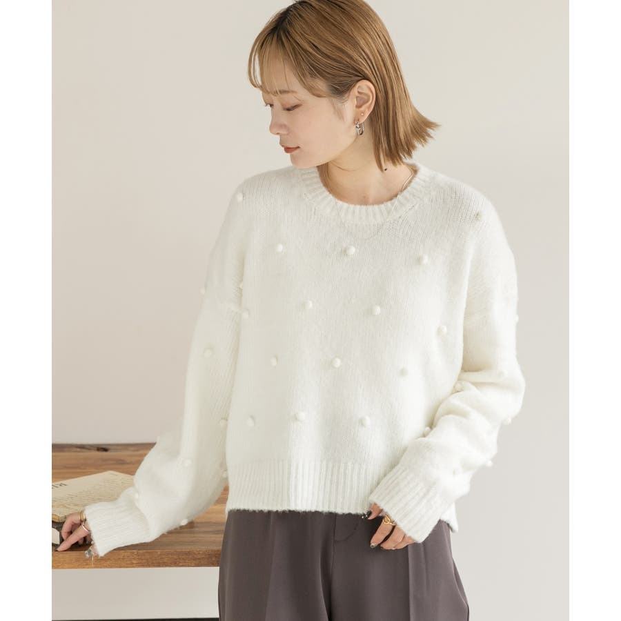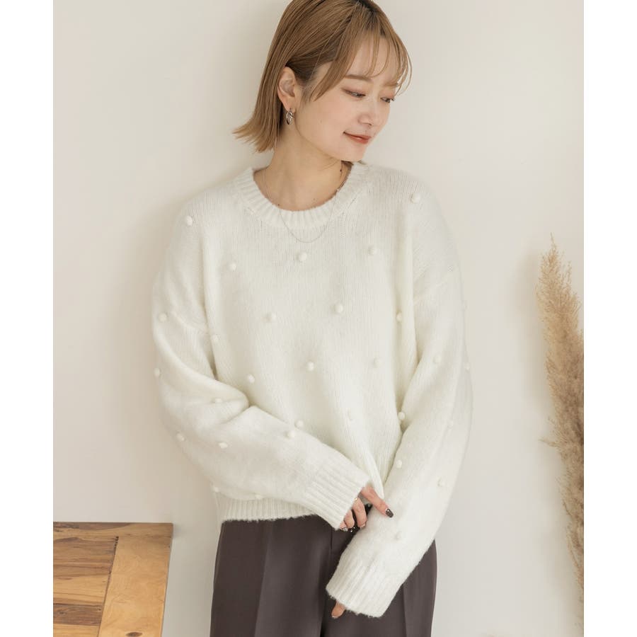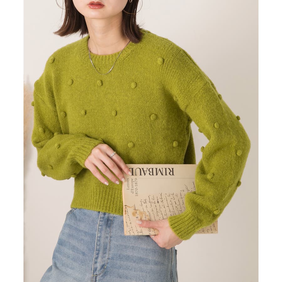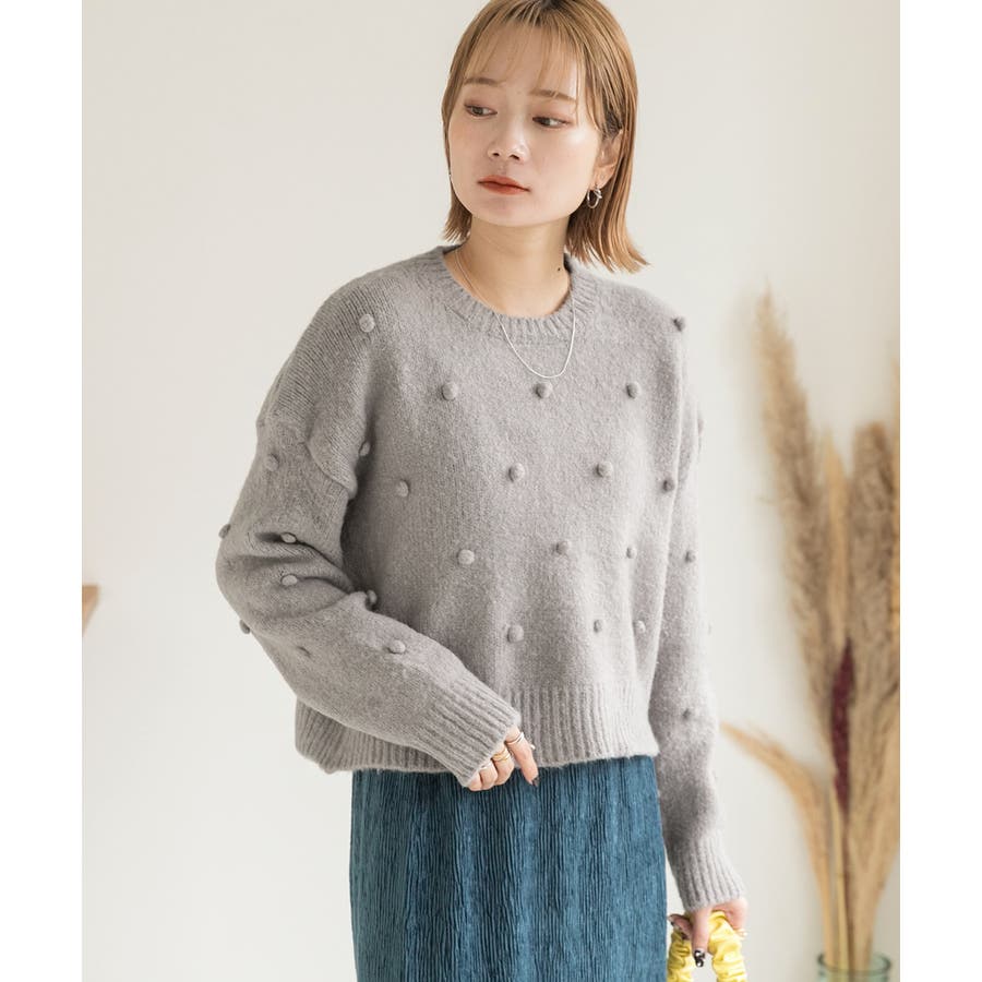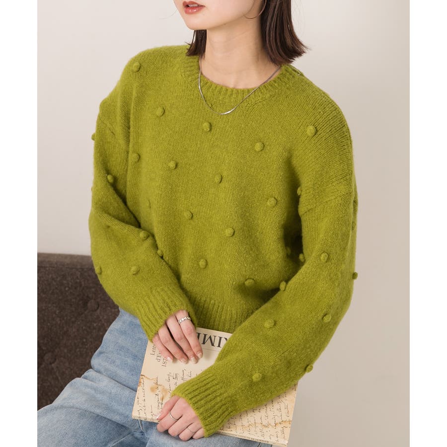 立体的なドットデザインが可愛いやわらかクルーネックニットトップス