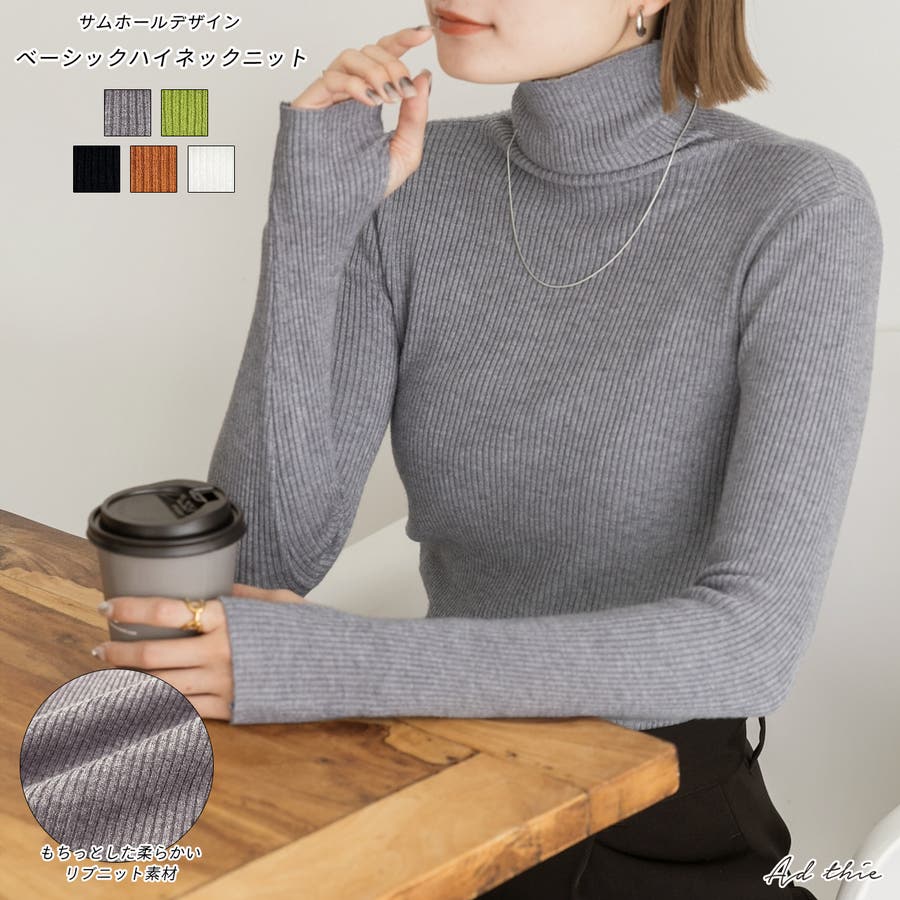 サムホールデザイン ベーシックハイネックニット