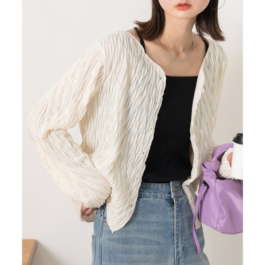 春 春コーデ 春ファッション 春服 夏 夏コーデ 夏ファッション 夏服 カジュアル カジュアルコーデ 大人 大人カジュアル オフィスカジュアル オフィス オフィスファッション オフィススタイル 韓国 韓国ファッション 韓国コーデ プチプラ プチプラファッション レディース Y2K 量産型 キレイめ 綺麗め きれい きちんと カーディガン 春カーディガン カーデ ジャガード くしゅくしゅ 春カーデ 羽織 ライトアウター 薄手 上品 オフホワイト 白 ブラウン