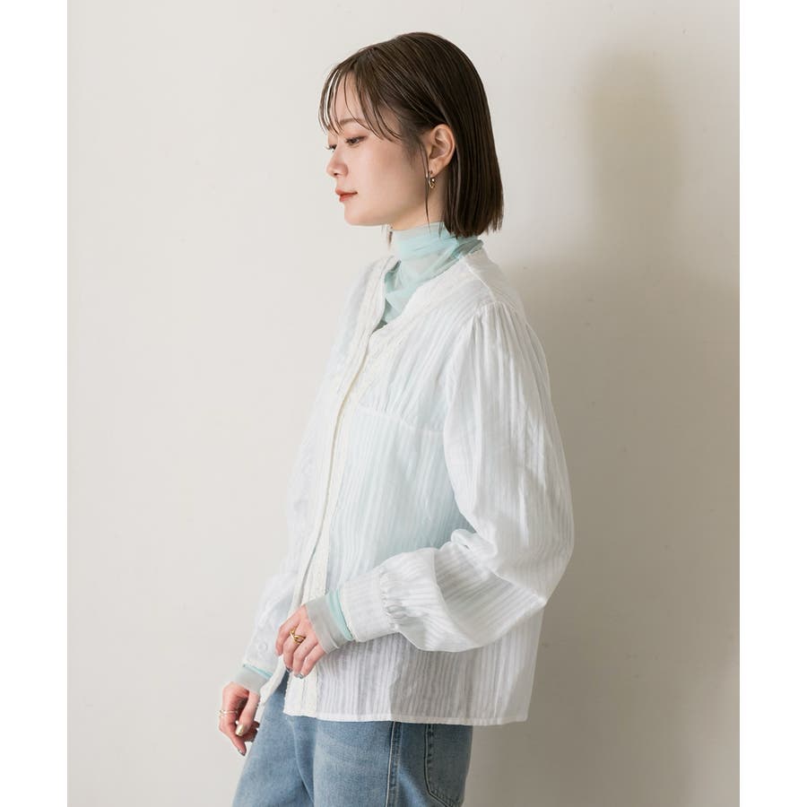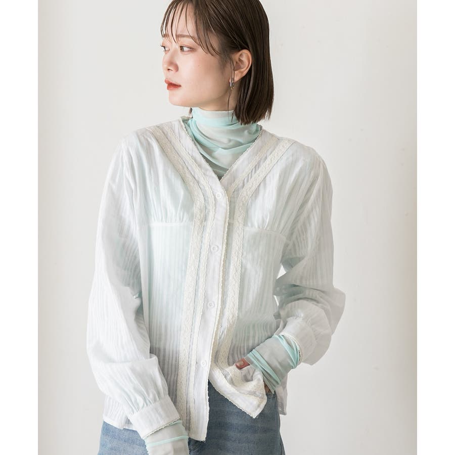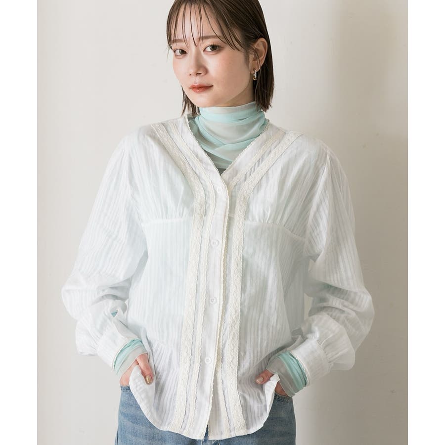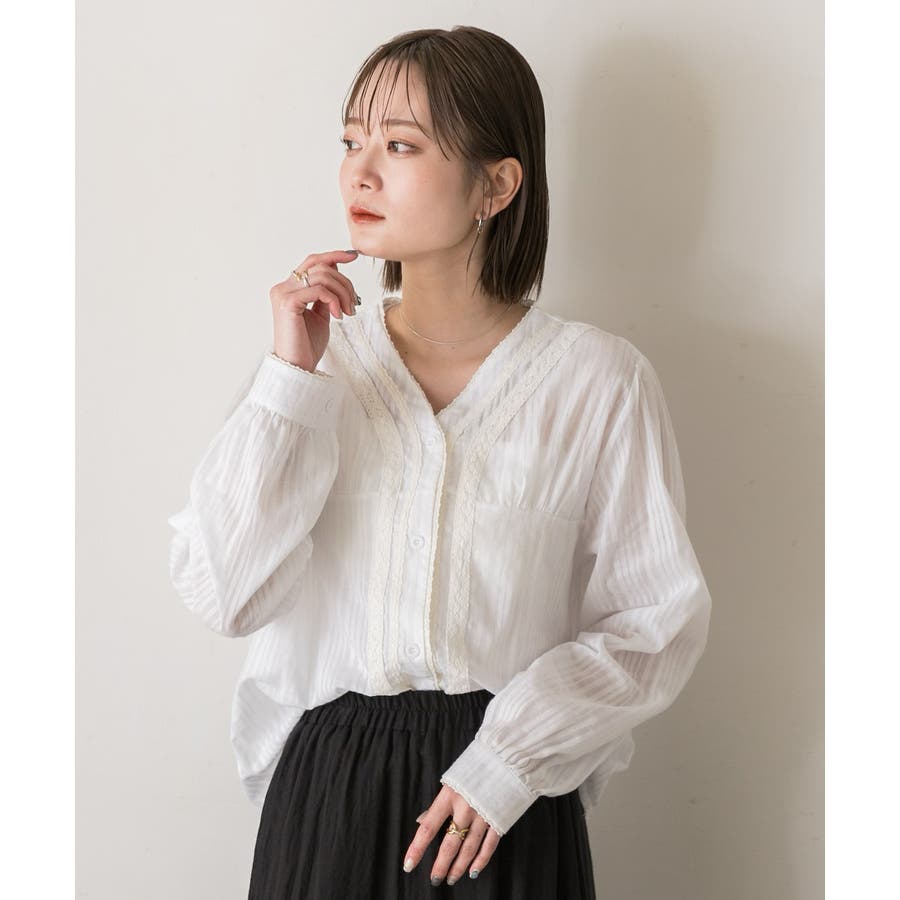 春 春コーデ 春ファッション 春服 夏 夏コーデ 夏ファッション 夏服 カジュアル カジュアルコーデ 大人 大人カジュアル オフィスカジュアル オフィス オフィスファッション オフィススタイル 韓国 韓国ファッション 韓国コーデ プチプラ プチプラファッション レディース Y2K 量産型 キレイめ 綺麗め きれい きちんと ブラウス レーストップス レースシャツ レースブラウス シアーブラウス シアー レース ストライプ 長袖 ワイドシルエット ボタンダウン デザインブラウス Vネック 綿 コットン 白 オフホワイト