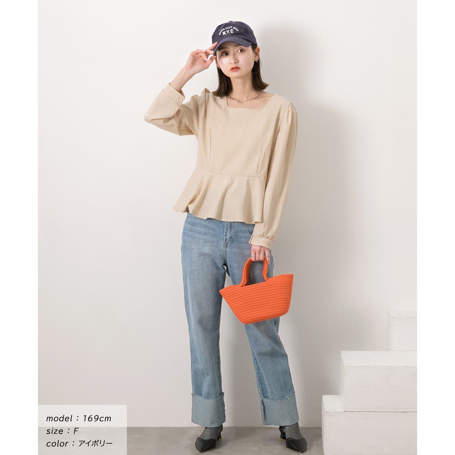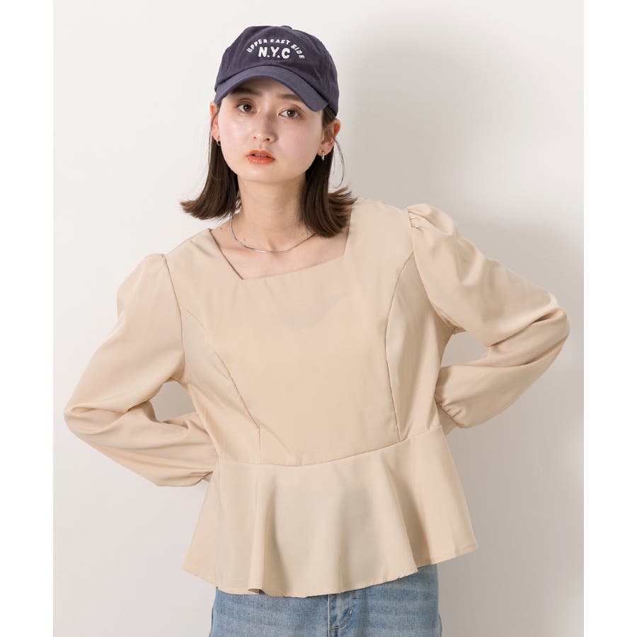 スクエアネック ペプラムトップス