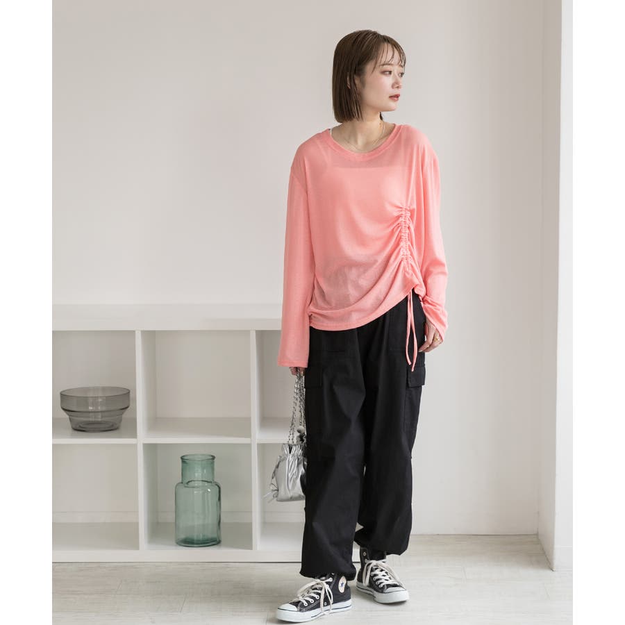 ゆるっとこなれ感のあるシャーリングドロストトップス