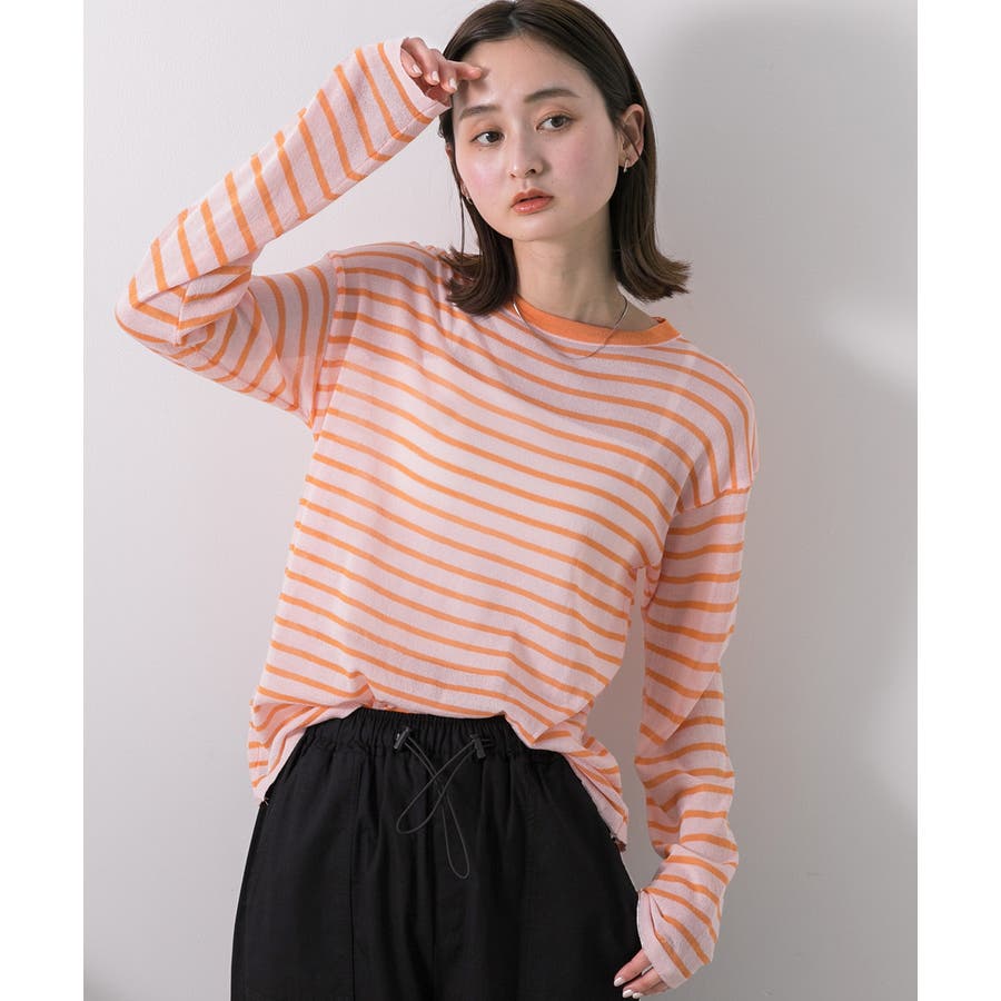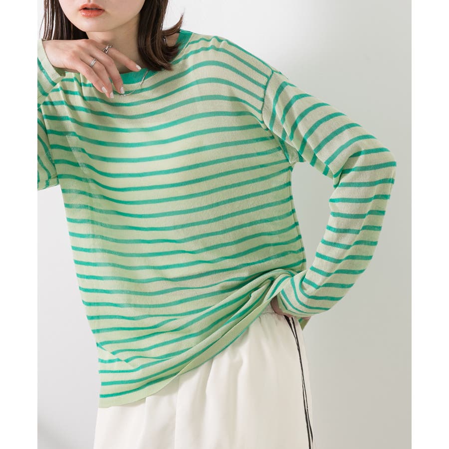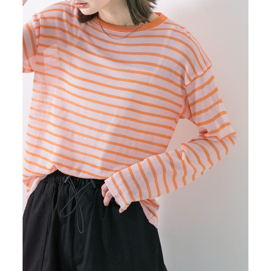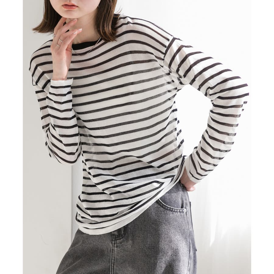 季節感のあるシアー感がポイントのボーダートップス