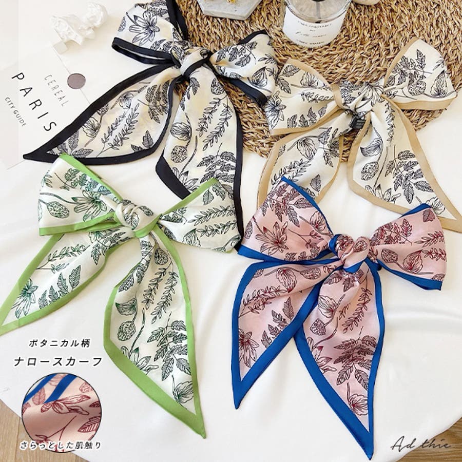 春 春コーデ 春ファッション 春服 夏 夏コーデ 夏ファッション 夏服 カジュアル カジュアルコーデ 大人 大人カジュアル オフィスカジュアル オフィス オフィスファッション オフィススタイル 韓国 韓国ファッション 韓国コーデ プチプラ プチプラファッション レディース Y2K 量産型 キレイめ 綺麗め きれい きちんと スカーフ ボウタイスカーフ リボン アクセサリー ヘッドアクセサリー ボタニカル柄 花柄 ツイリー ツイリースカーフ 黒 ブラック ベージュ グリーン 緑 青 ブルー