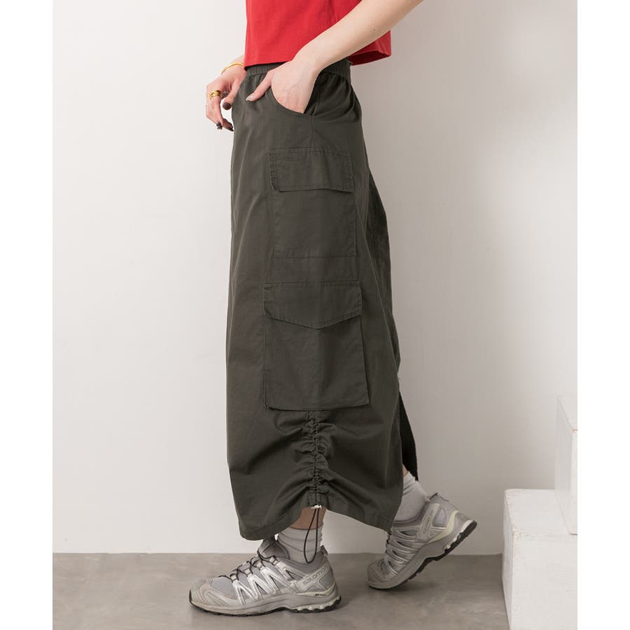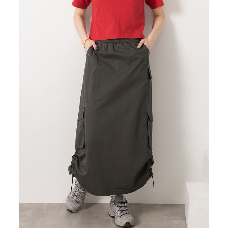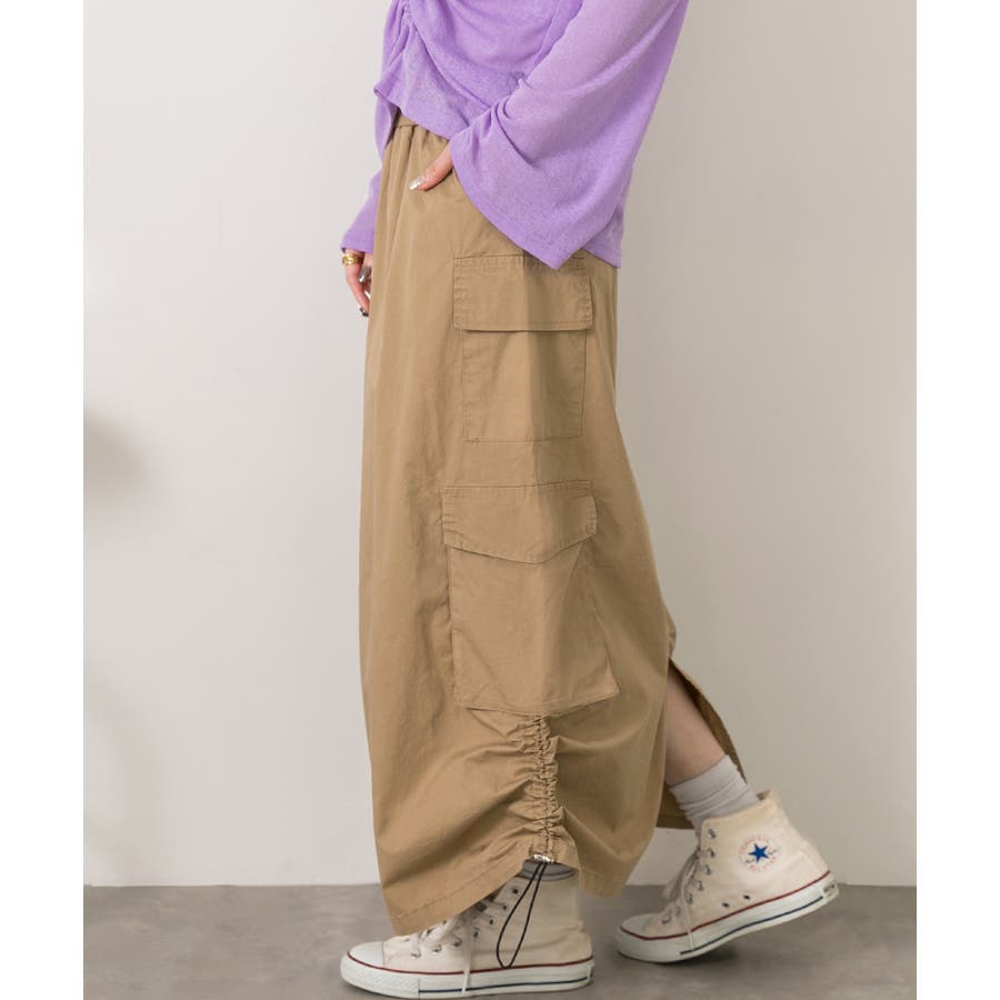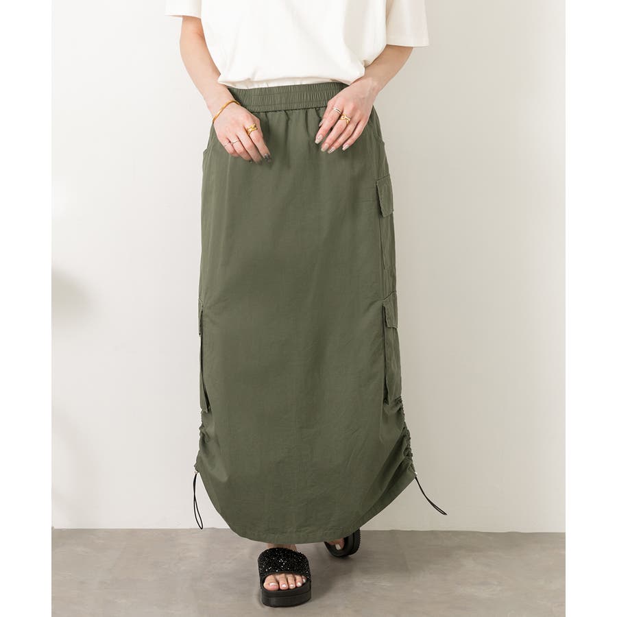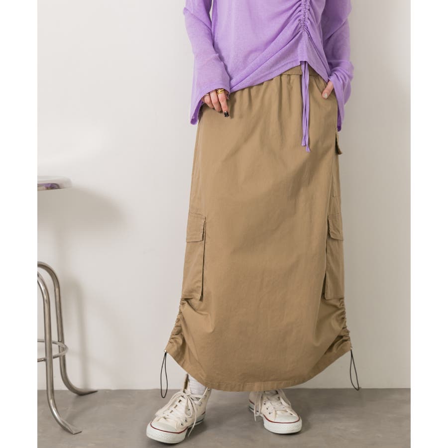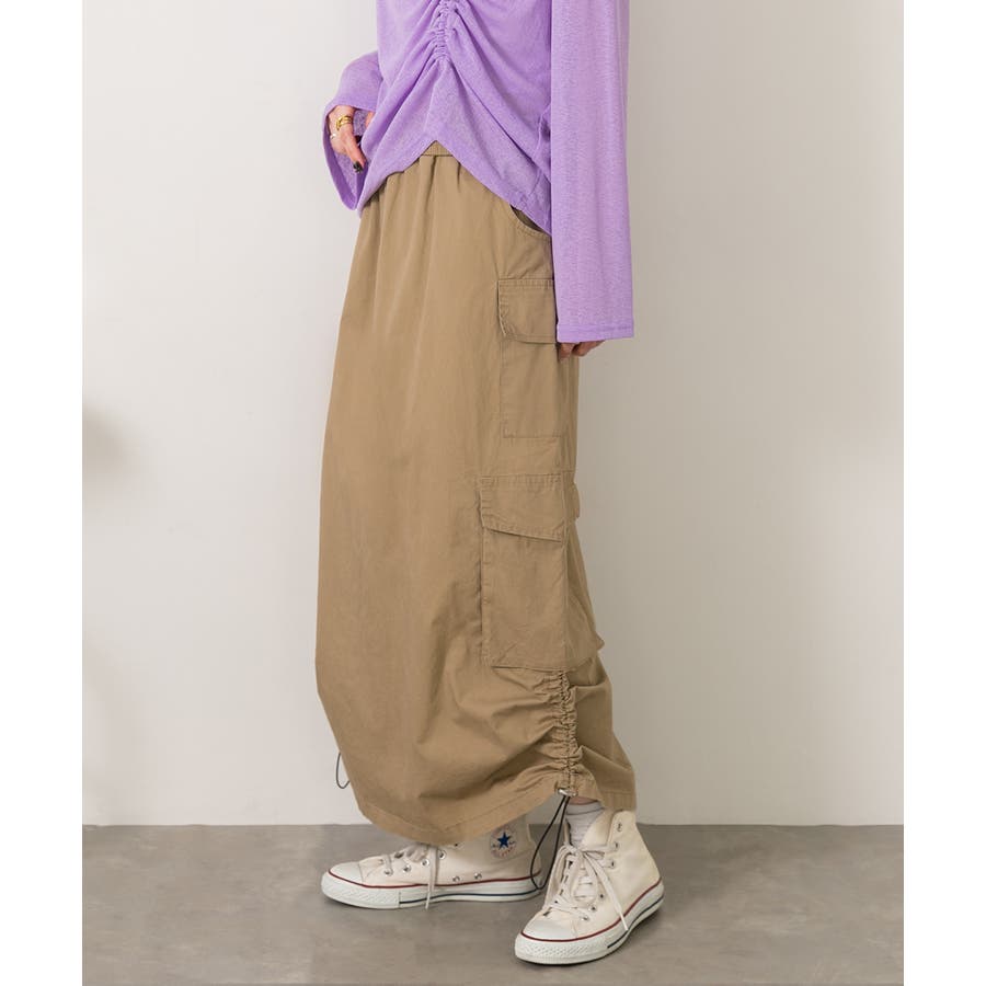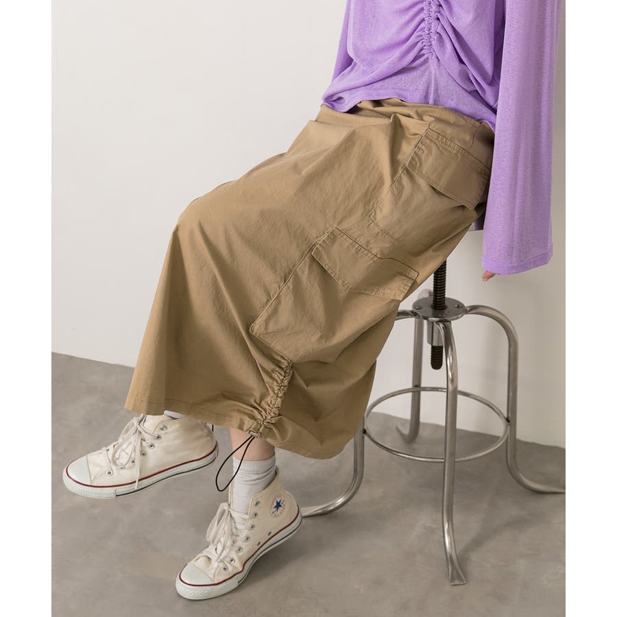 サイドにあしらわれたドローコードがポイントのカーゴスカート