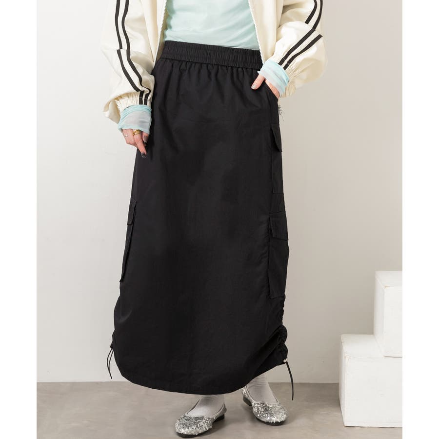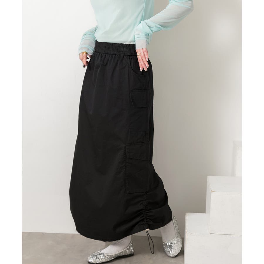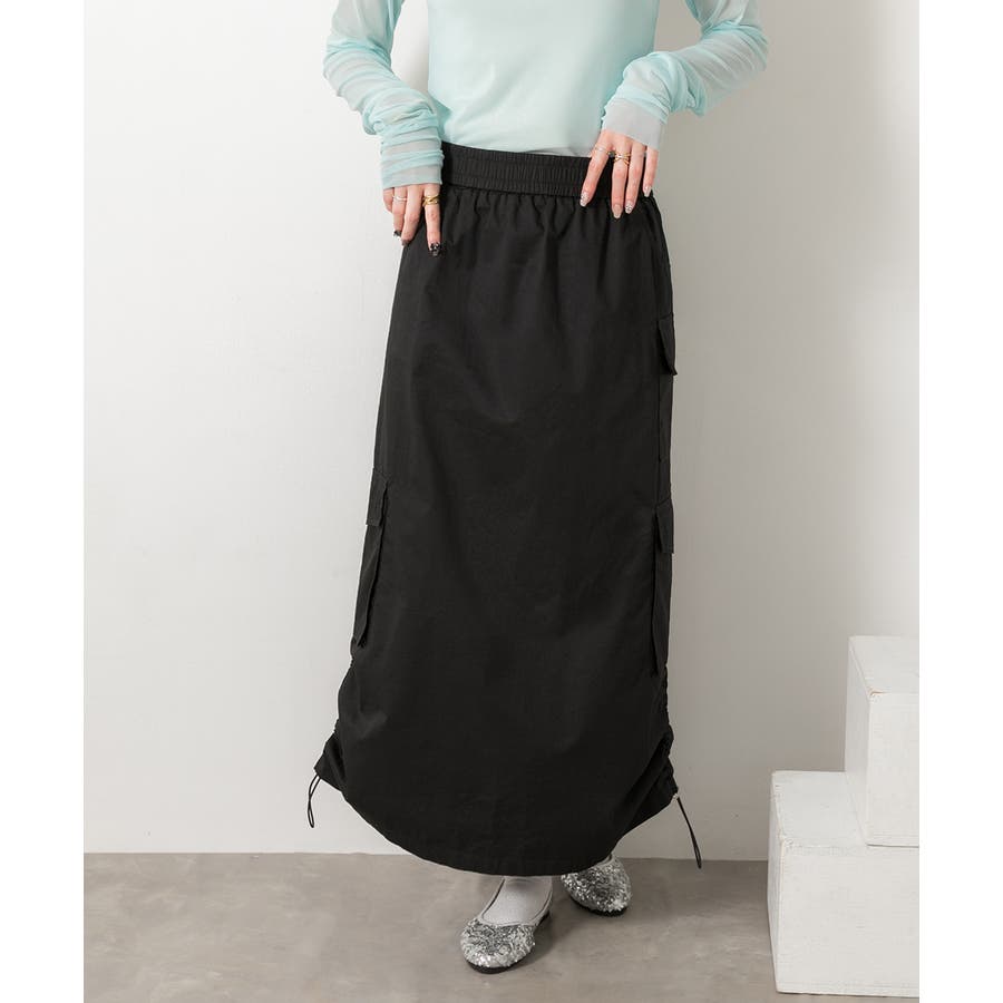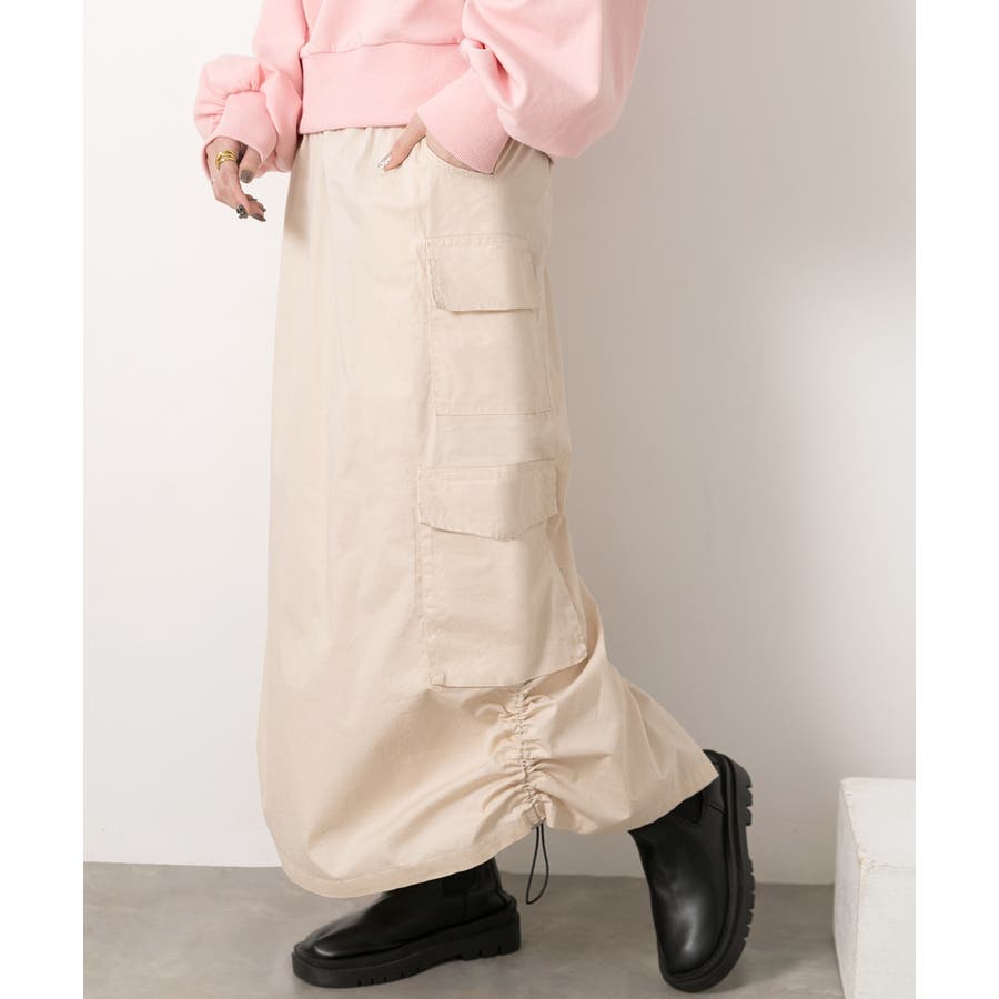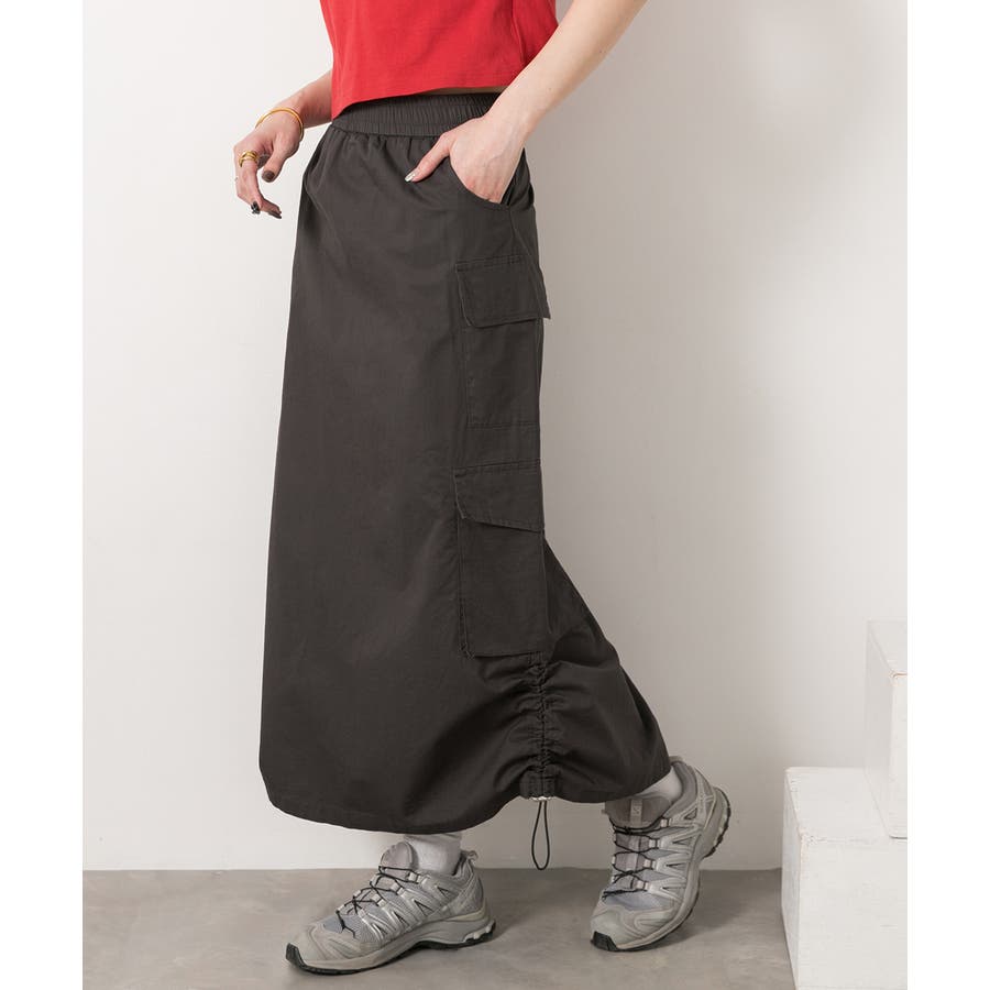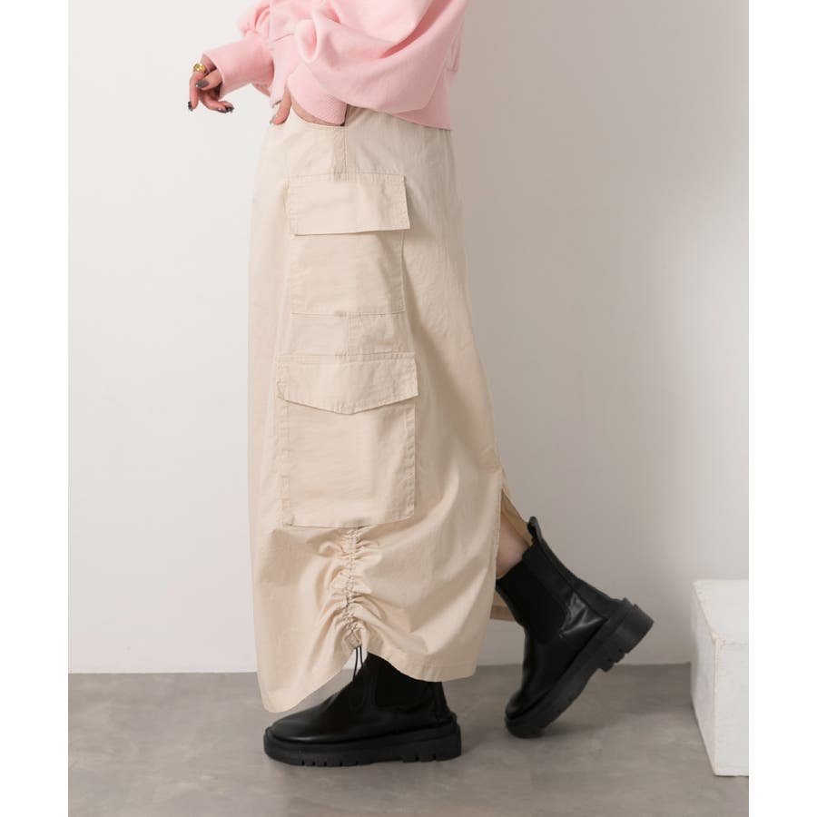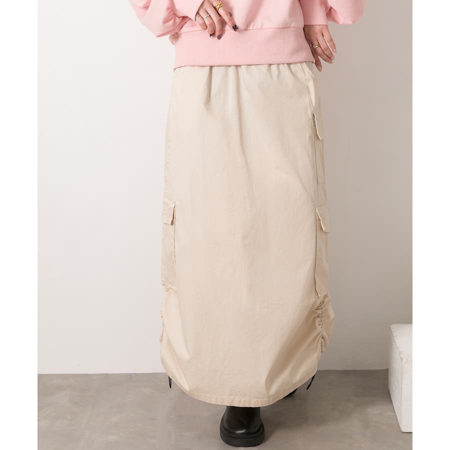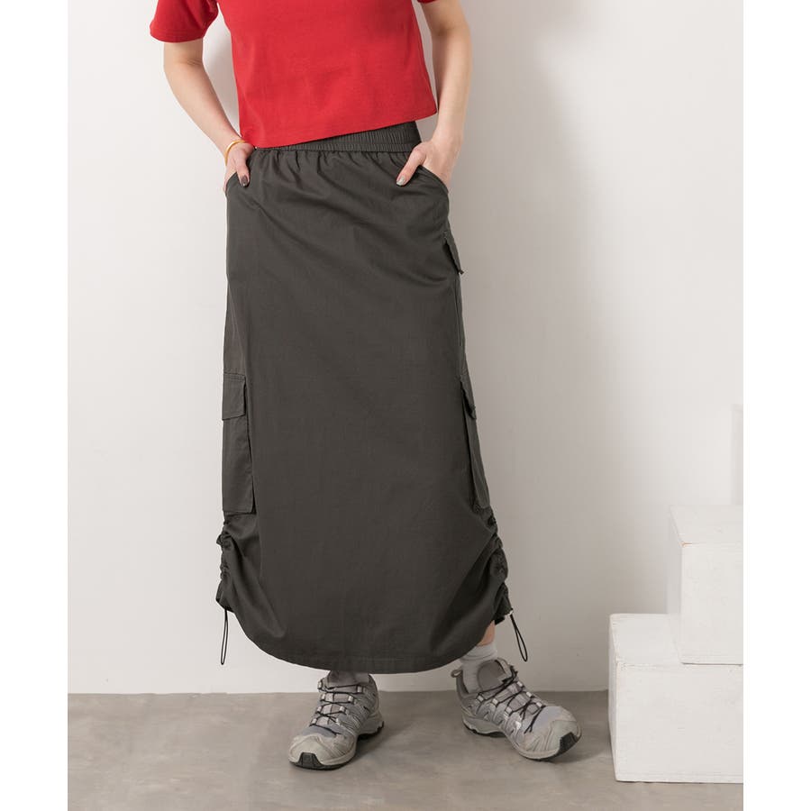 サイドにあしらわれたドローコードがポイントのカーゴスカート
