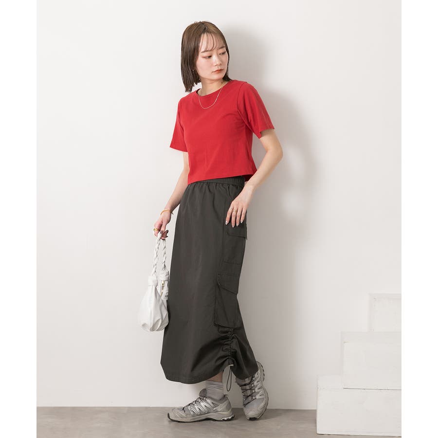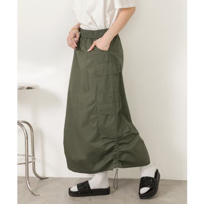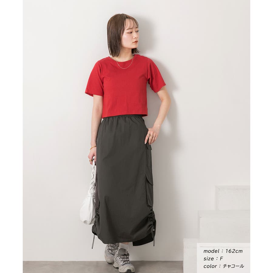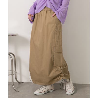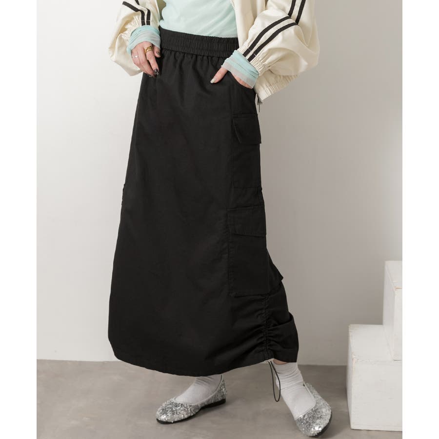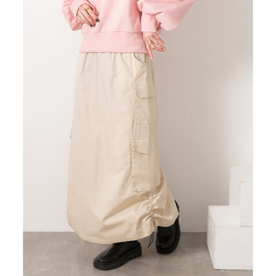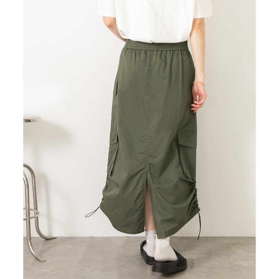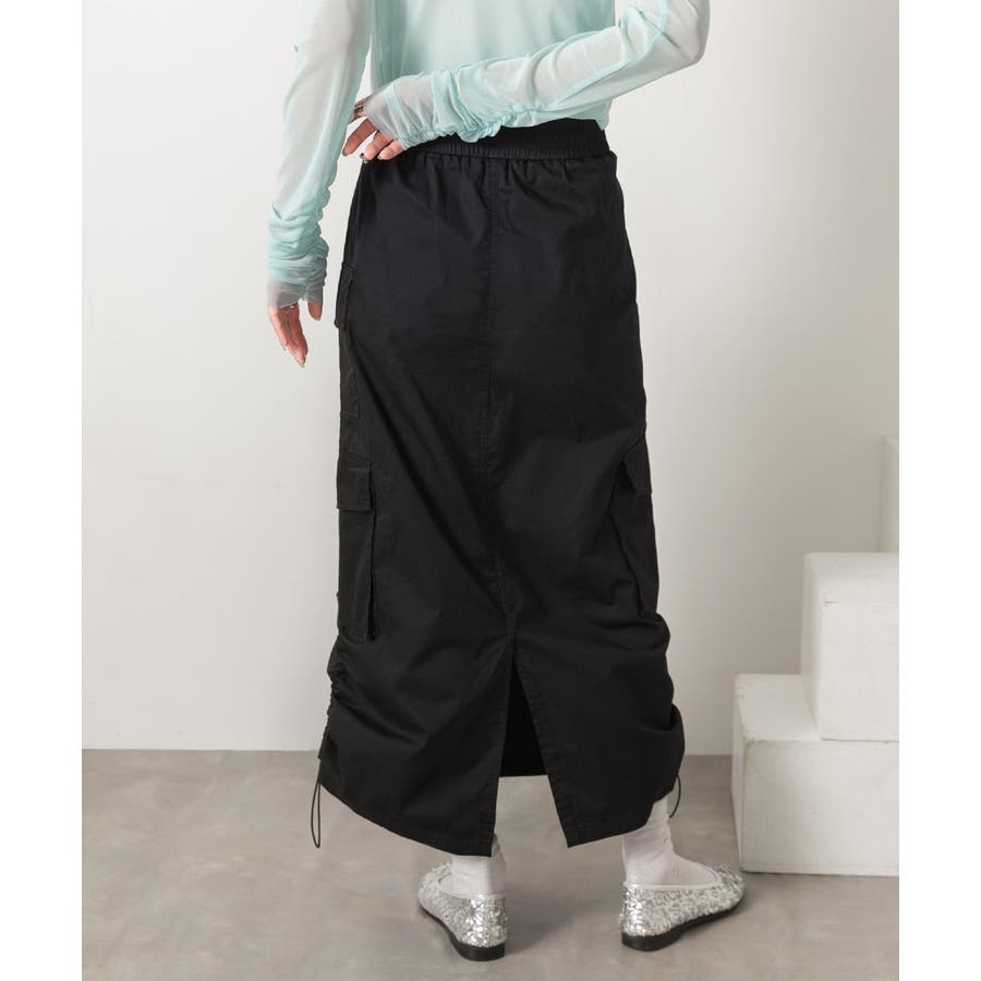サイドにあしらわれたドローコードがポイントのカーゴスカート
