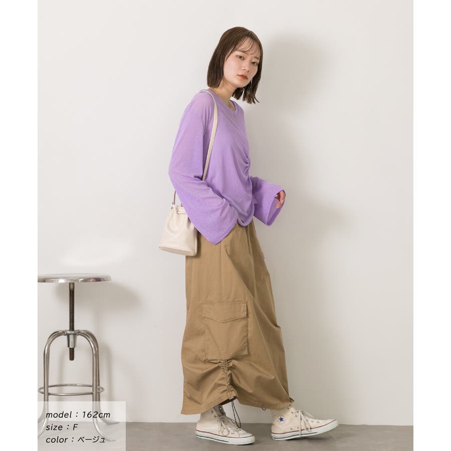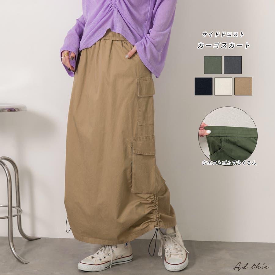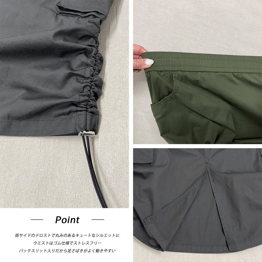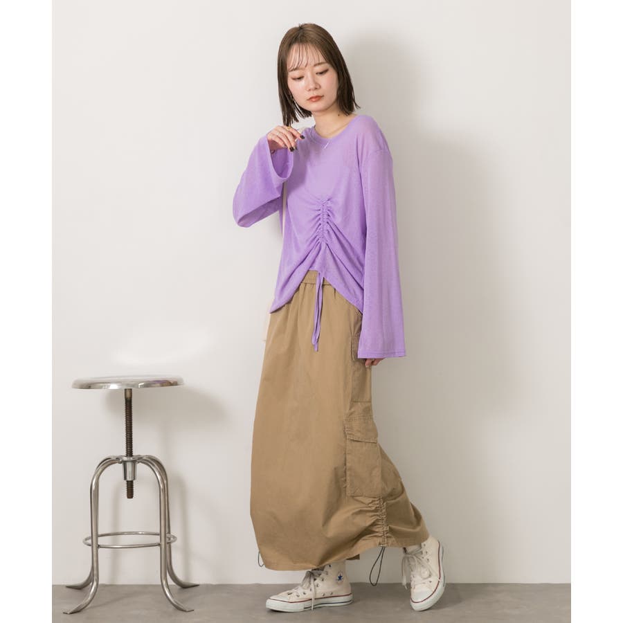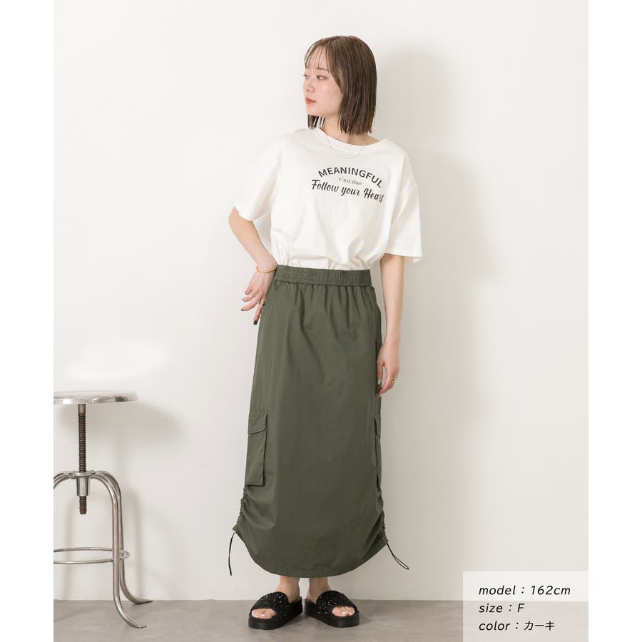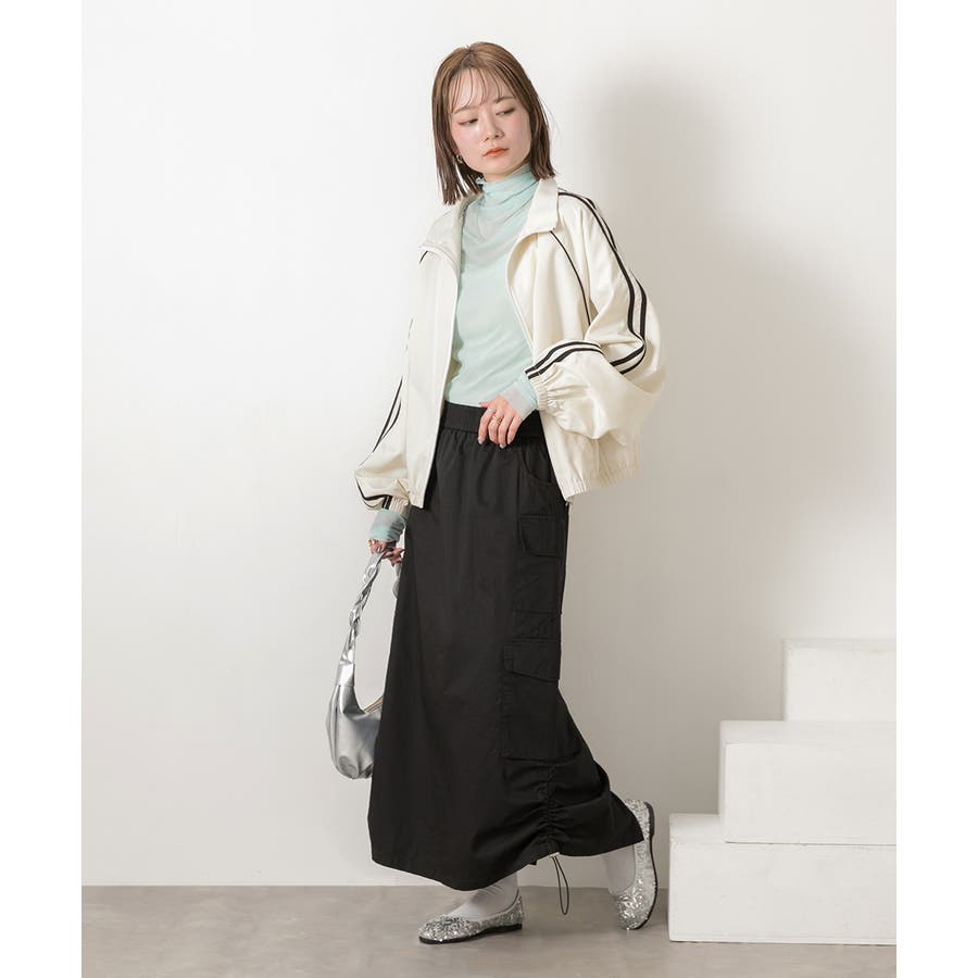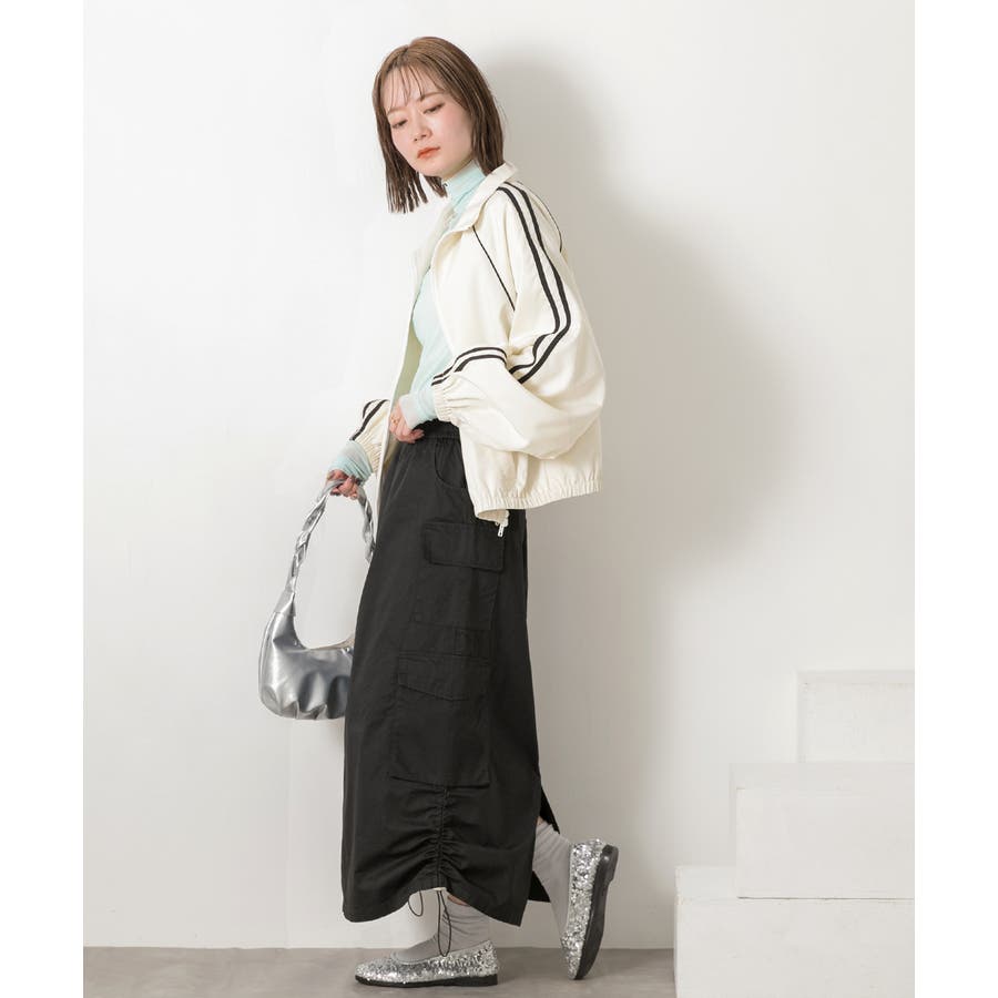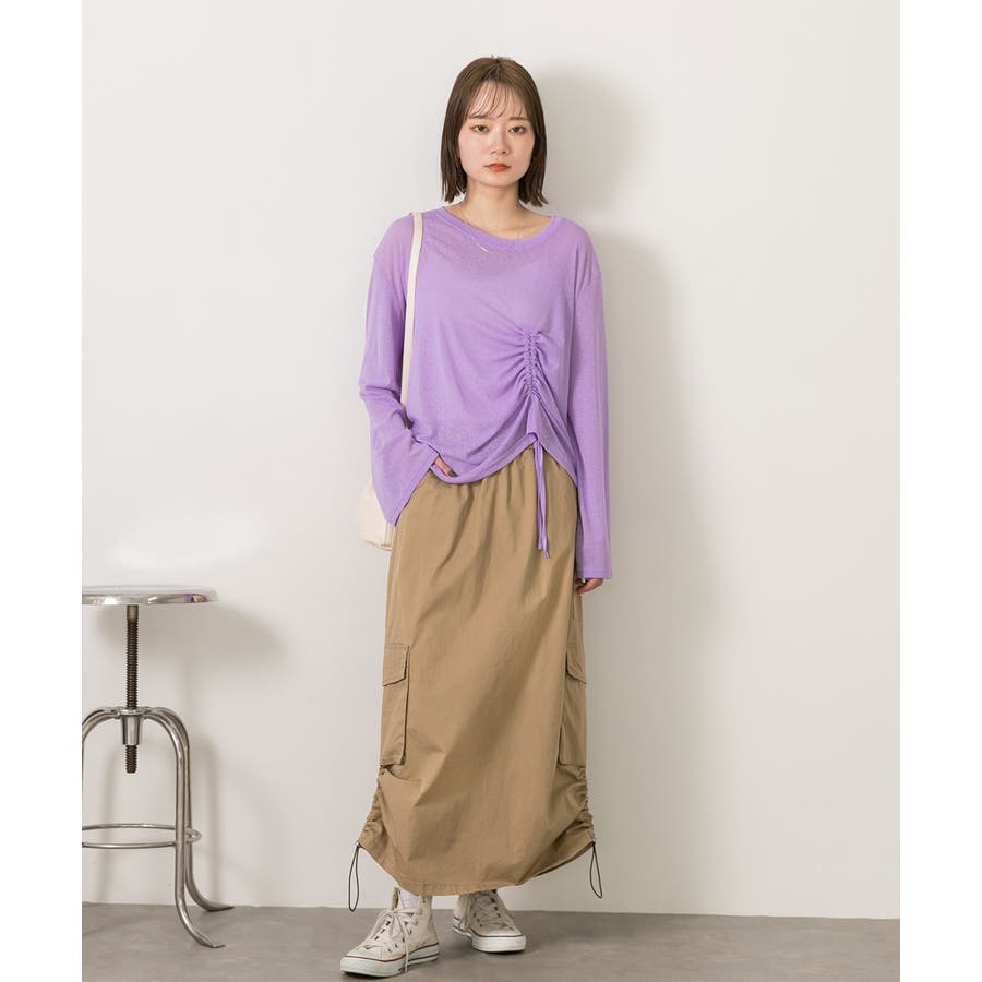 サイドにあしらわれたドローコードがポイントのカーゴスカート