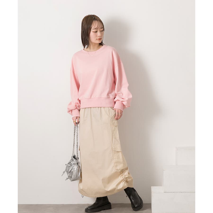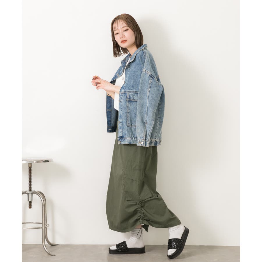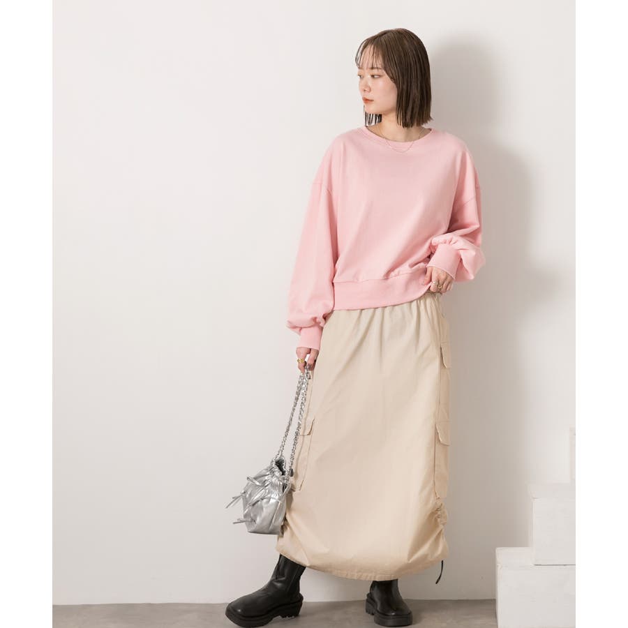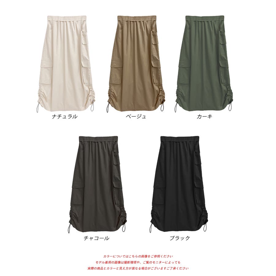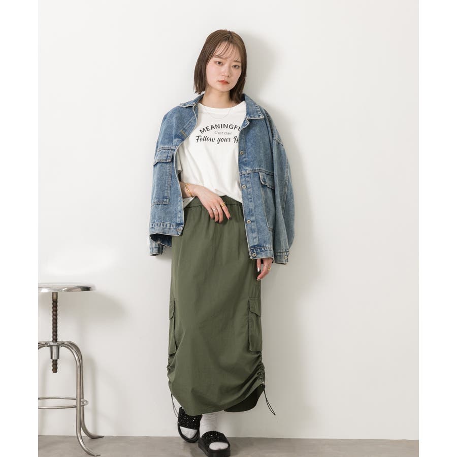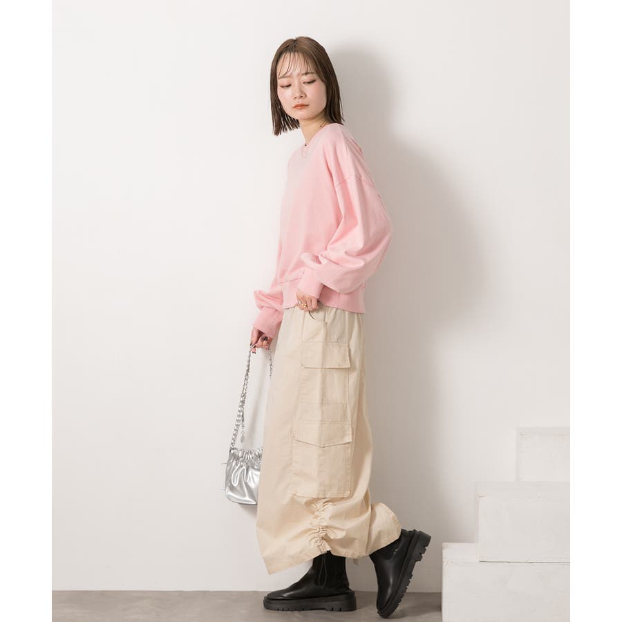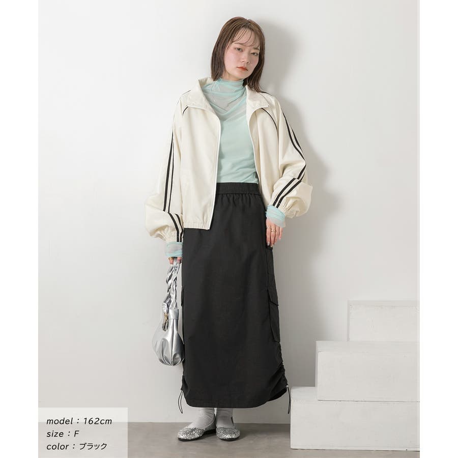 サイドにあしらわれたドローコードがポイントのカーゴスカート