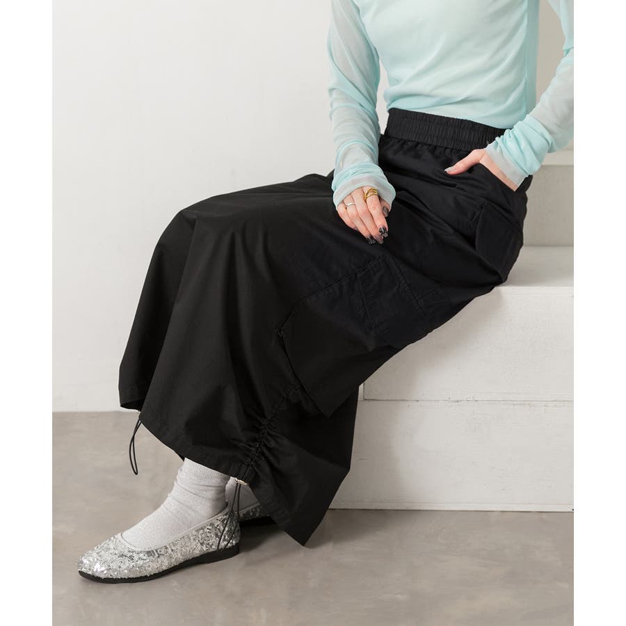 春 春コーデ 春ファッション 春服 夏 夏コーデ 夏ファッション 夏服 カジュアル カジュアルコーデ 大人 大人カジュアル オフィスカジュアル オフィス オフィスファッション オフィススタイル 韓国 韓国ファッション 韓国コーデ プチプラ プチプラファッション レディース Y2K 量産型 キレイめ 綺麗め きれい きちんと カーゴ カーゴスカート 裾ドロスト ドロスト ドローコード ドロストスカート ロングスカート ロング丈 カジュアル ラフ チャコール ブラック ナチュラル ベージュ カーキ