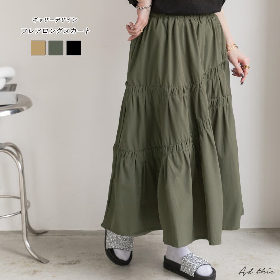 春 春コーデ 春ファッション 春服 夏 夏コーデ 夏ファッション 夏服 カジュアル カジュアルコーデ 大人 大人カジュアル オフィスカジュアル オフィス オフィスファッション オフィススタイル 韓国 韓国ファッション 韓国コーデ プチプラ プチプラファッション レディース Y2K 量産型 キレイめ 綺麗め きれい きちんと ロングスカート ロング丈 フレアスカート ギャザー フレア ギャザースカート ウエストゴム ゴム仕様 ポケット ポケット付き 黒 ブラック ベージュ カーキ