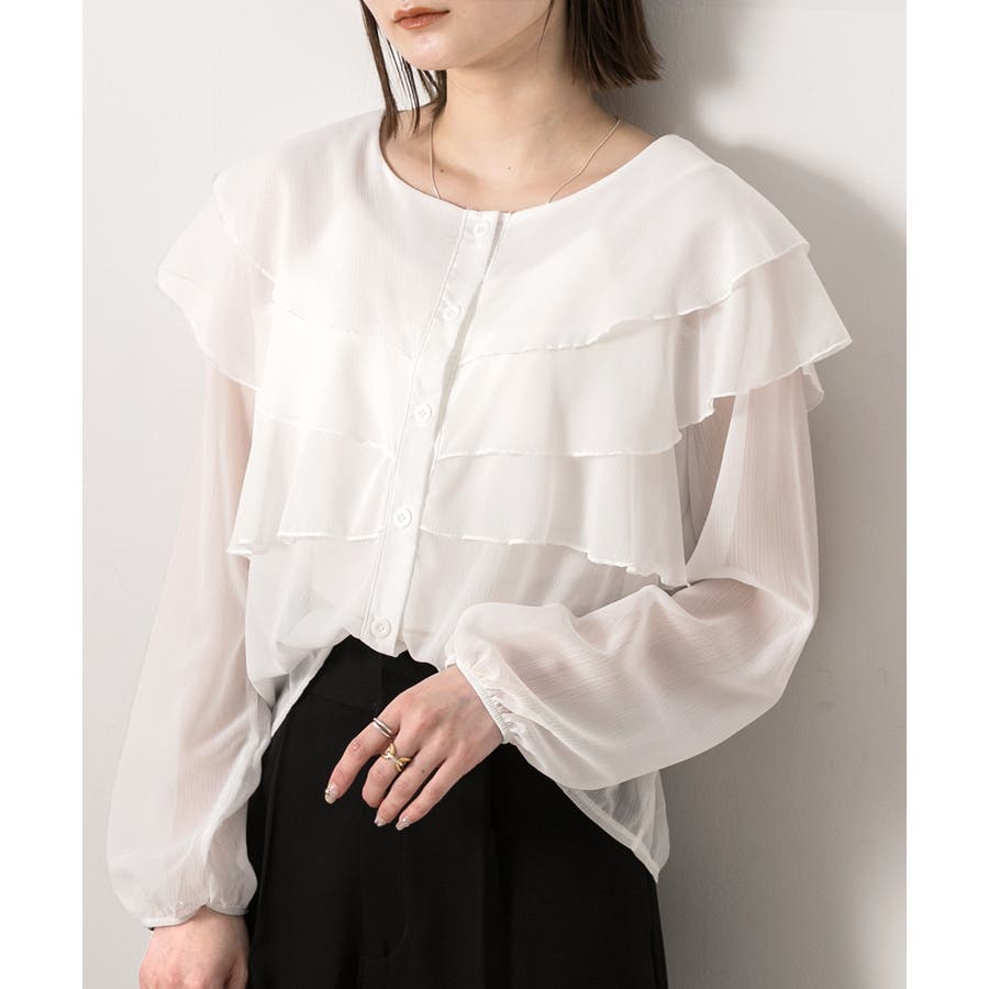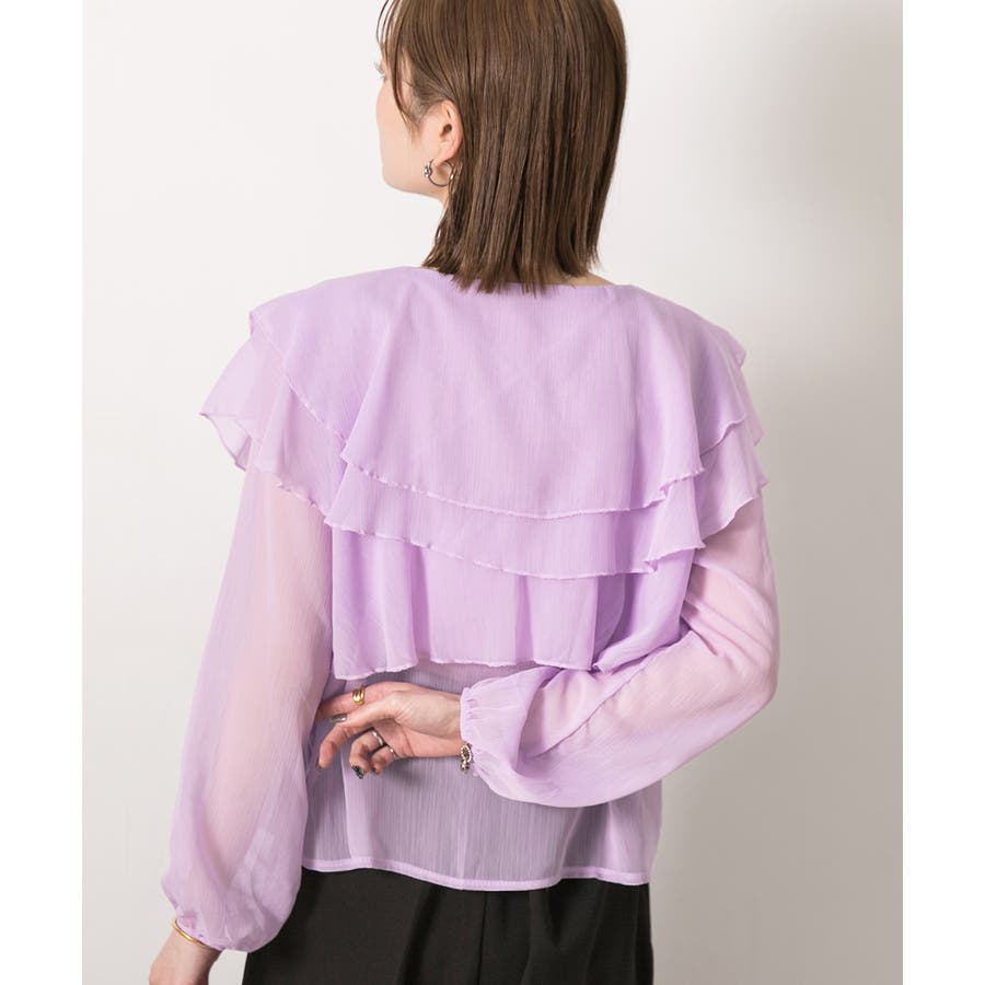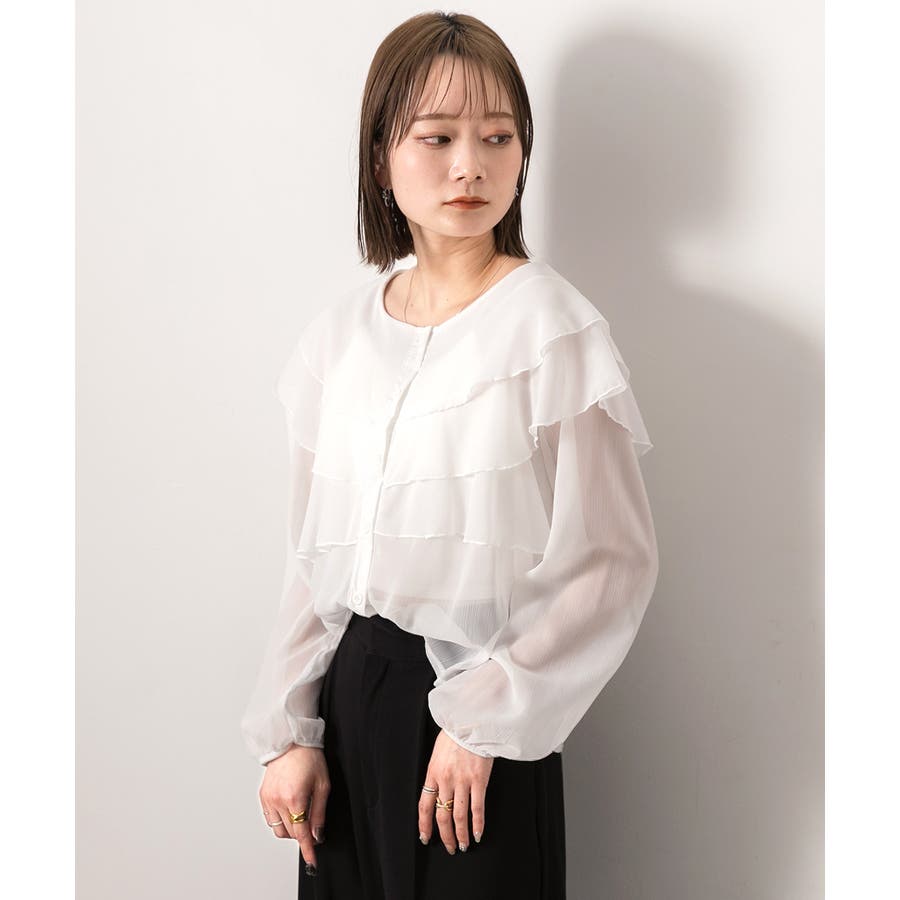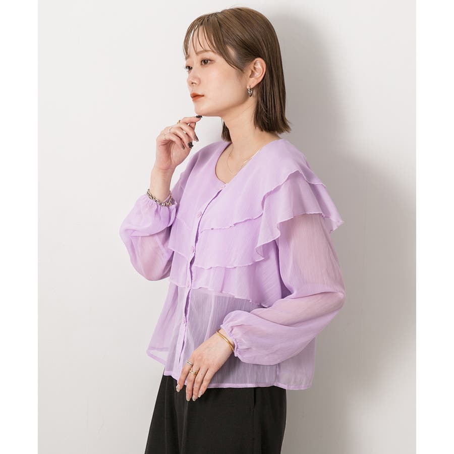 ふわりとした素材にフリルが軽やかなシアーブラウス