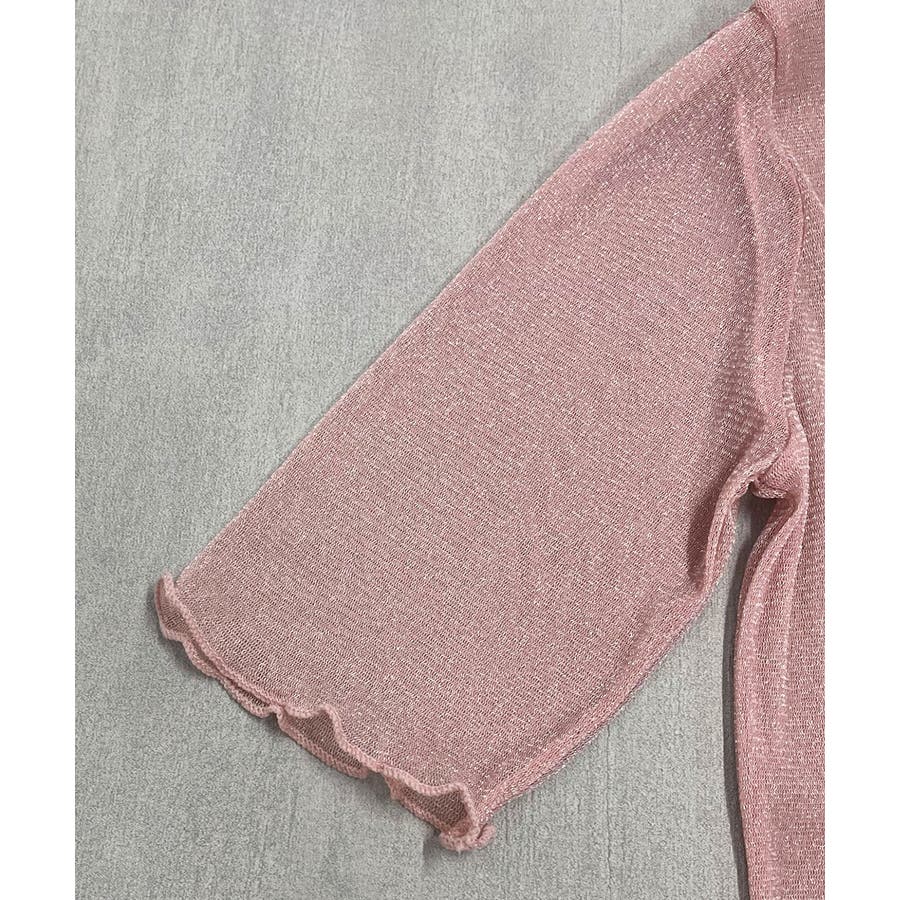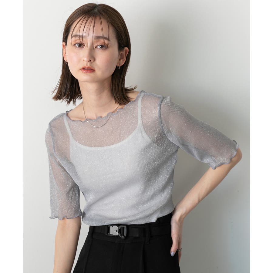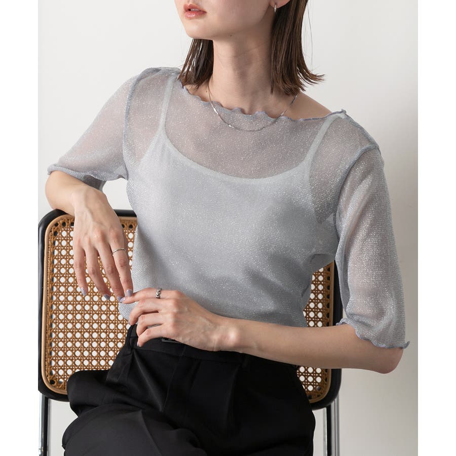 投稿日:2024.09.07シアートップスは数多くあれど、ライトグレーでラメが入っているものが中々見つけられず、こちらにたどり着きました。色も好みでしたし、ラメも控えめで上品です。ふちがメローになっているのも可愛さを引き立てています。