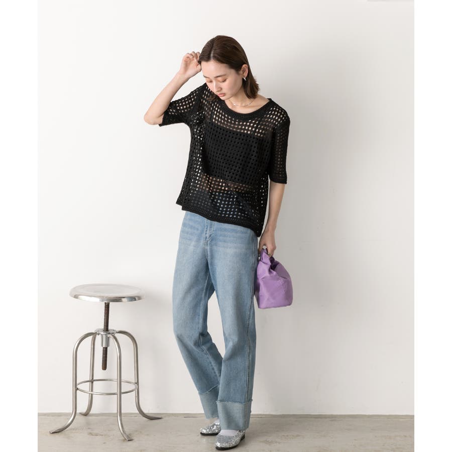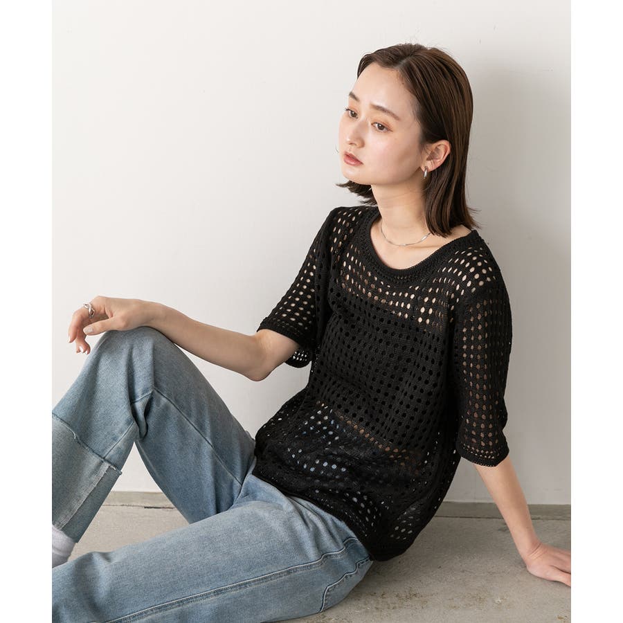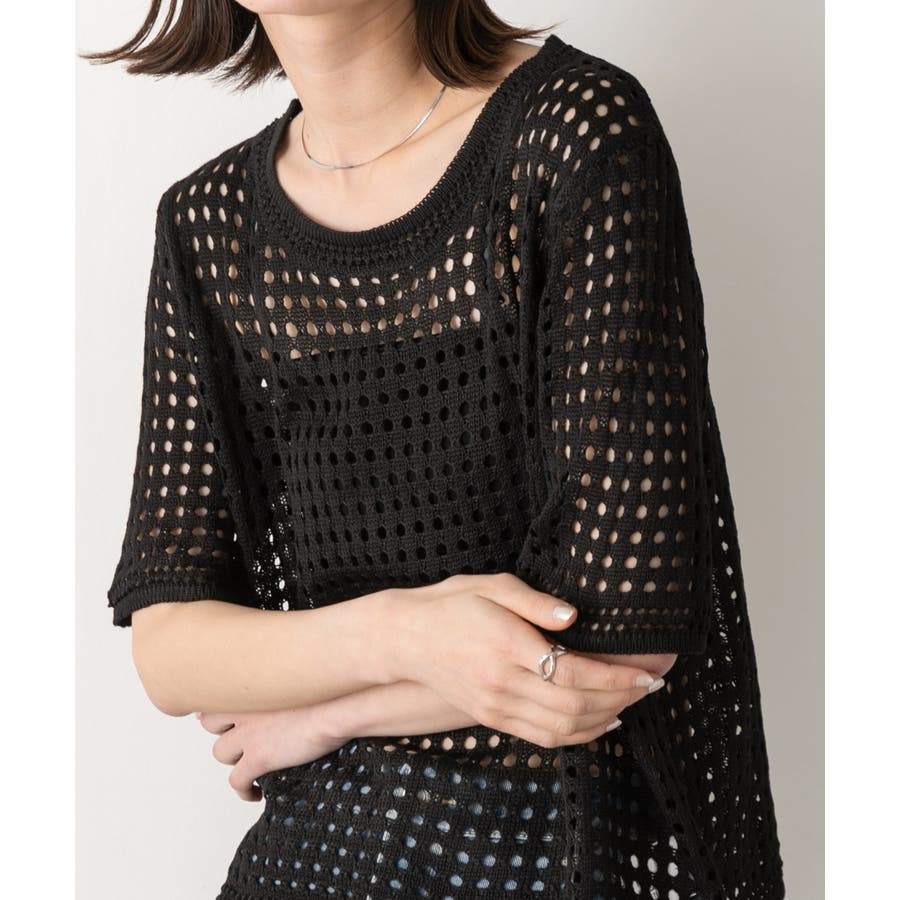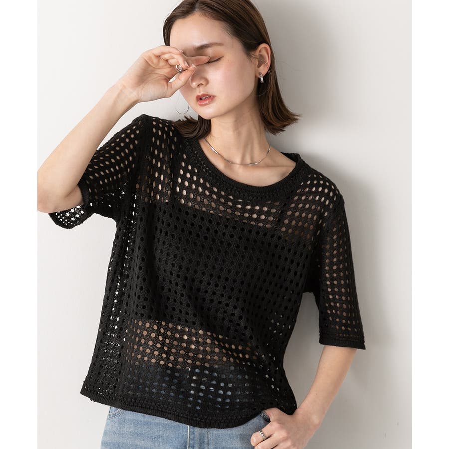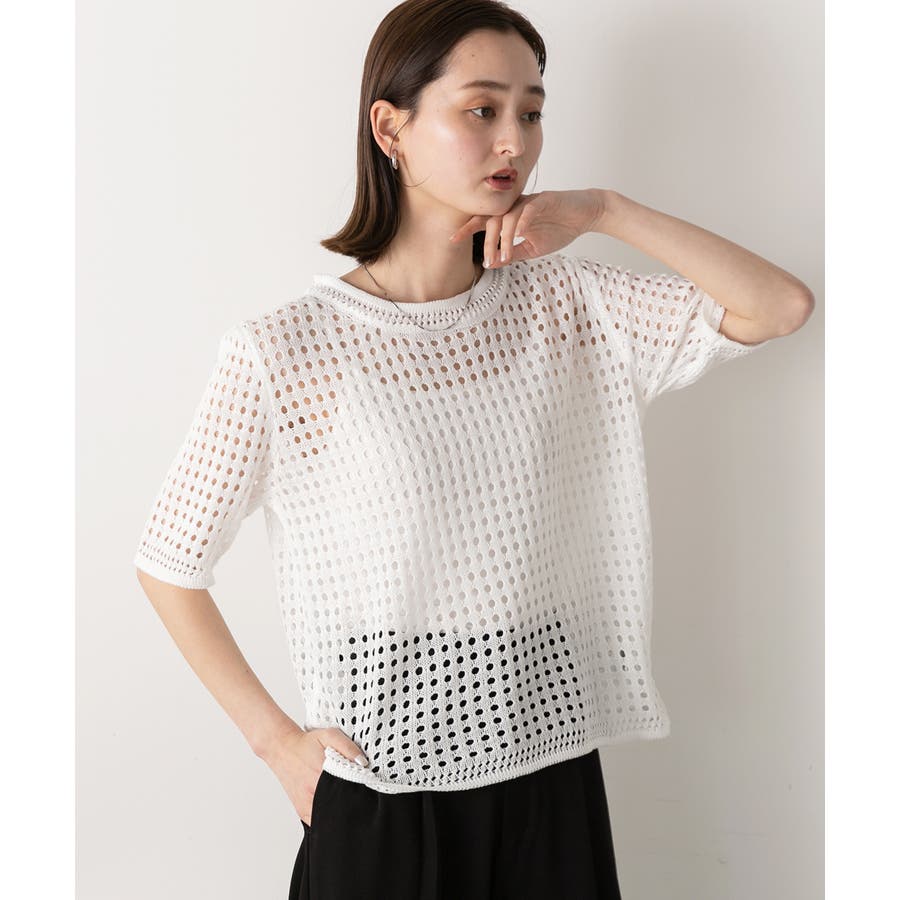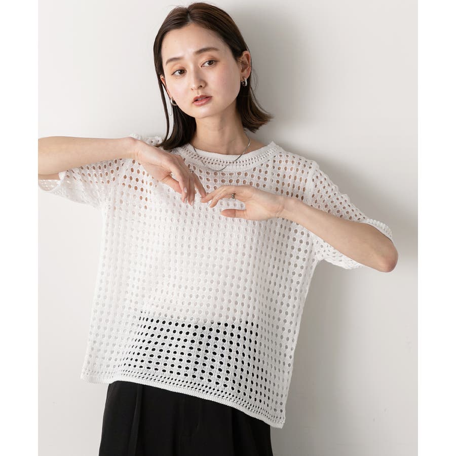 ヘルシーな肌見せができる透かし編みサマーニット