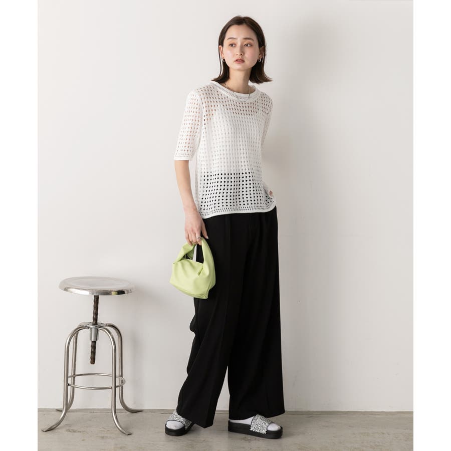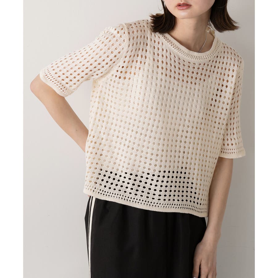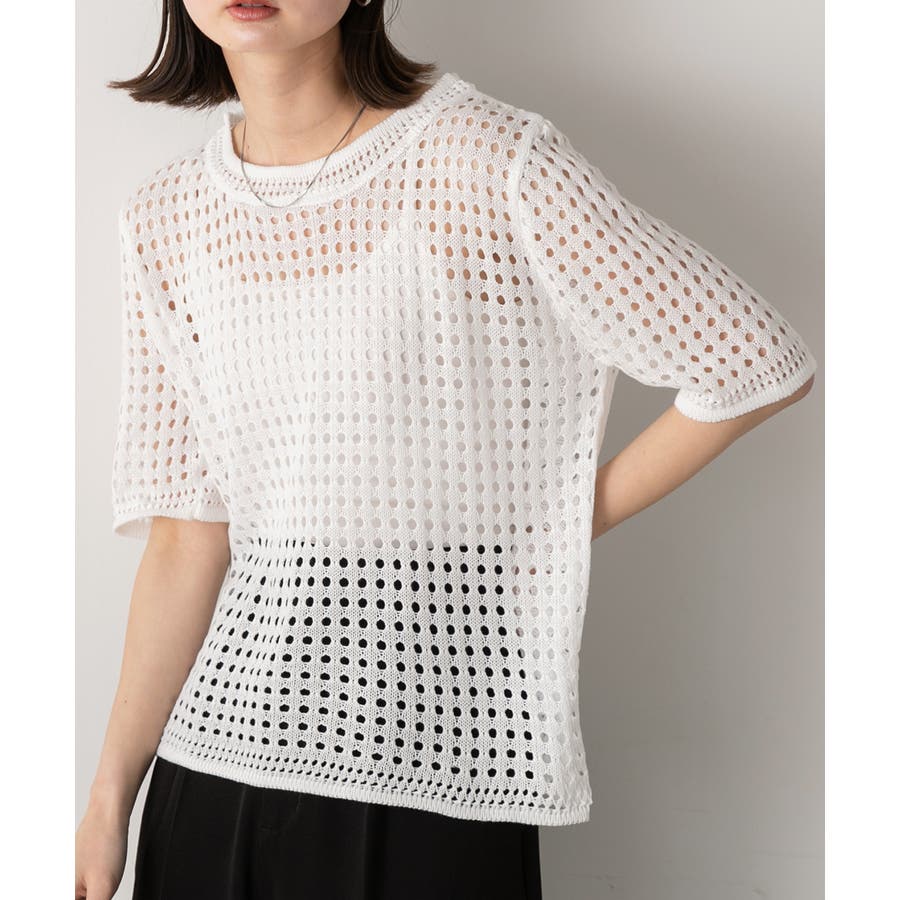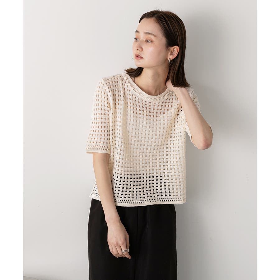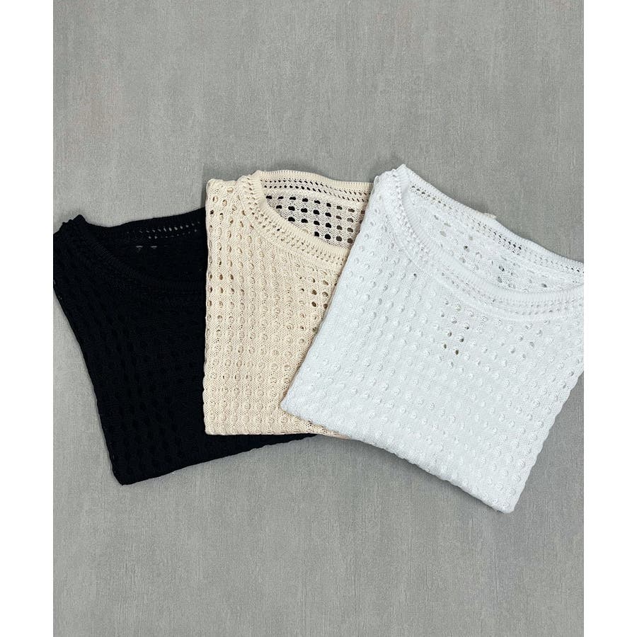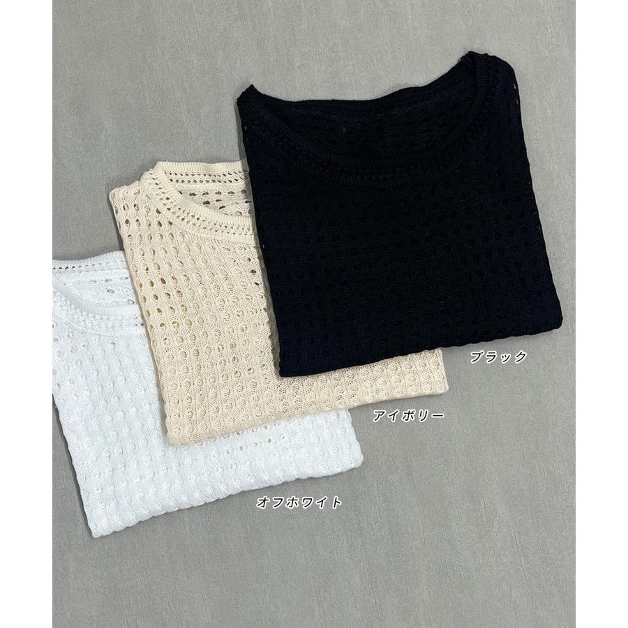 春 春コーデ 春ファッション 春服 夏 夏コーデ 夏ファッション 夏服 カジュアル カジュアルコーデ 大人 大人カジュアル オフィスカジュアル オフィス オフィスファッション オフィススタイル 韓国 韓国ファッション 韓国コーデ プチプラ プチプラファッション レディース Y2K 量産型 キレイめ 綺麗め きれい きちんと ニット サマーニット ニットトップス 上品 春のトップス 透かし編み レイヤードコーデ レイヤード レイヤー 重ね着 半袖ニット 夏ニット ラウンドネック シンプルニット 黒 ブラック オフホワイト 白 アイボリー