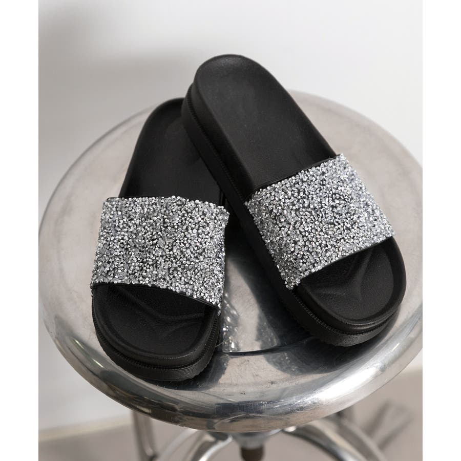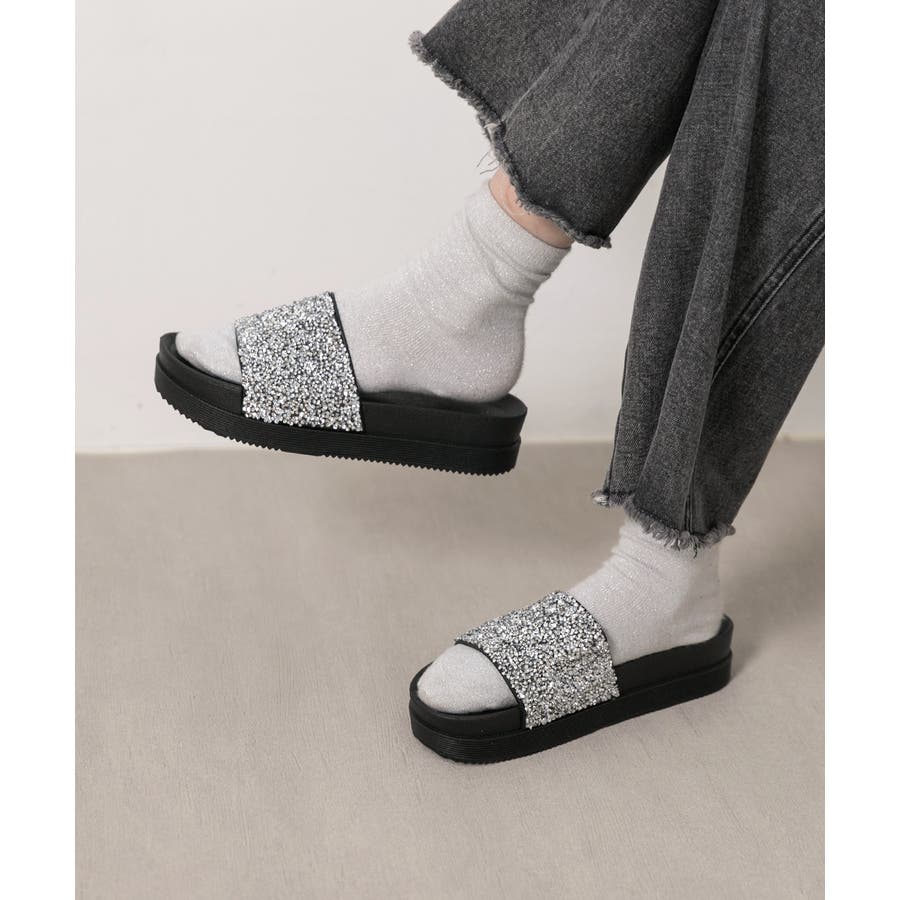 春 春コーデ 春ファッション 春服 夏 夏コーデ 夏ファッション 夏服 カジュアル カジュアルコーデ 大人 大人カジュアル オフィスカジュアル オフィス オフィスファッション オフィススタイル 韓国 韓国ファッション 韓国コーデ プチプラ プチプラファッション レディース Y2K 量産型 キレイめ 綺麗め きれい きちんと ラメ ラメサンダル グリッター ワンバンド サンダル 厚底 厚底サンダル ウエッジソール 楽々 楽 キラキラ きらきら 履きやすいサンダル 履き心地抜群 軽い ブラック 黒 シルバー