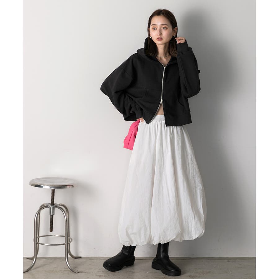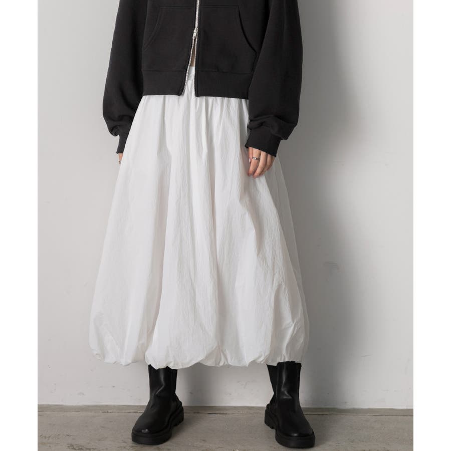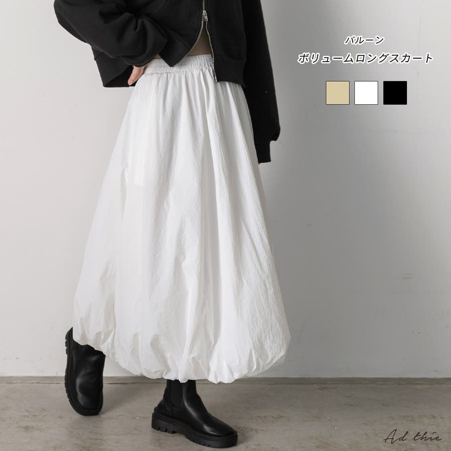 春 春コーデ 春ファッション 春服 冬 冬コーデ 冬ファッション 冬服 カジュアル カジュアルコーデ 大人 大人カジュアル オフィスカジュアル オフィス オフィスファッション オフィススタイル 韓国 韓国ファッション 韓国コーデ プチプラ プチプラファッション レディース Y2K 量産型 キレイめ 綺麗め きれい きちんと バルーンスカート バルーンロングスカート ボリュームスカート ウエストゴム ゴム仕様 ロング丈 ロングスカートしわ加工 黒 ブラック オフホワイト ベージュ