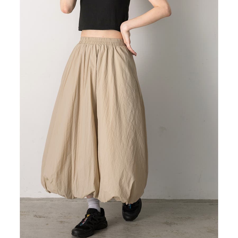 ふんわりと広がる裾が華やかな女性らしさを演出してくれるバルーンロングスカート