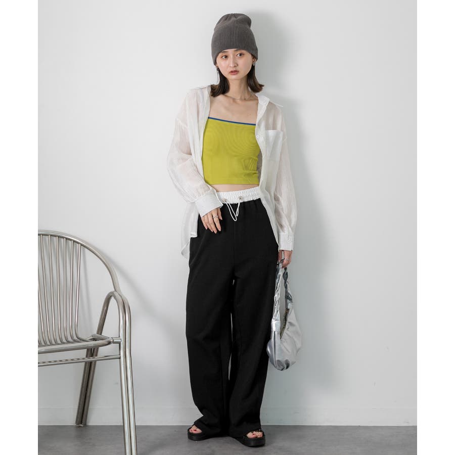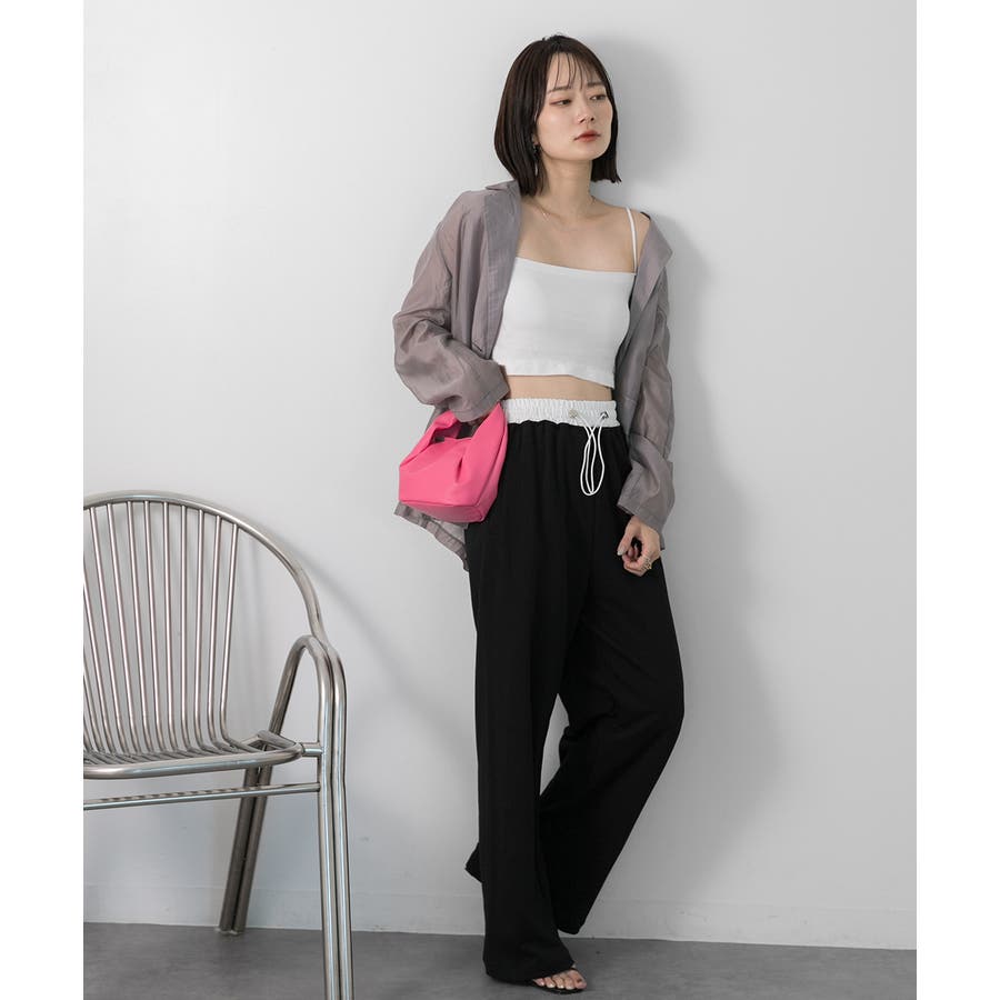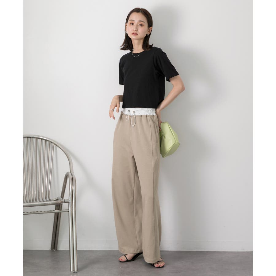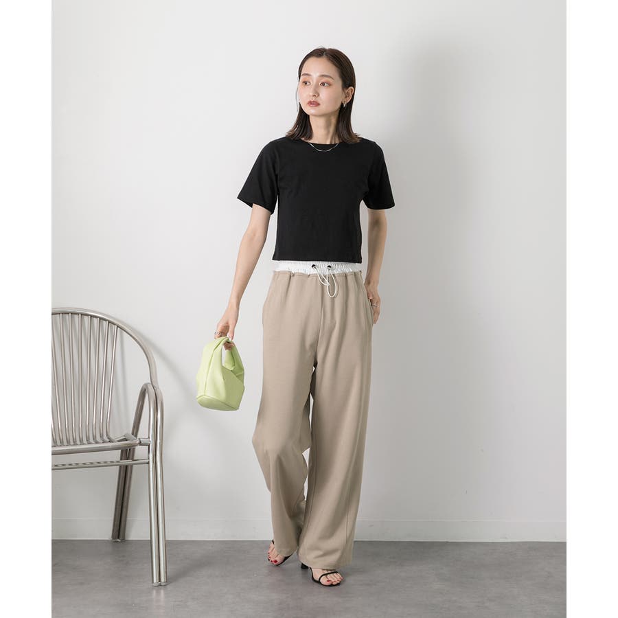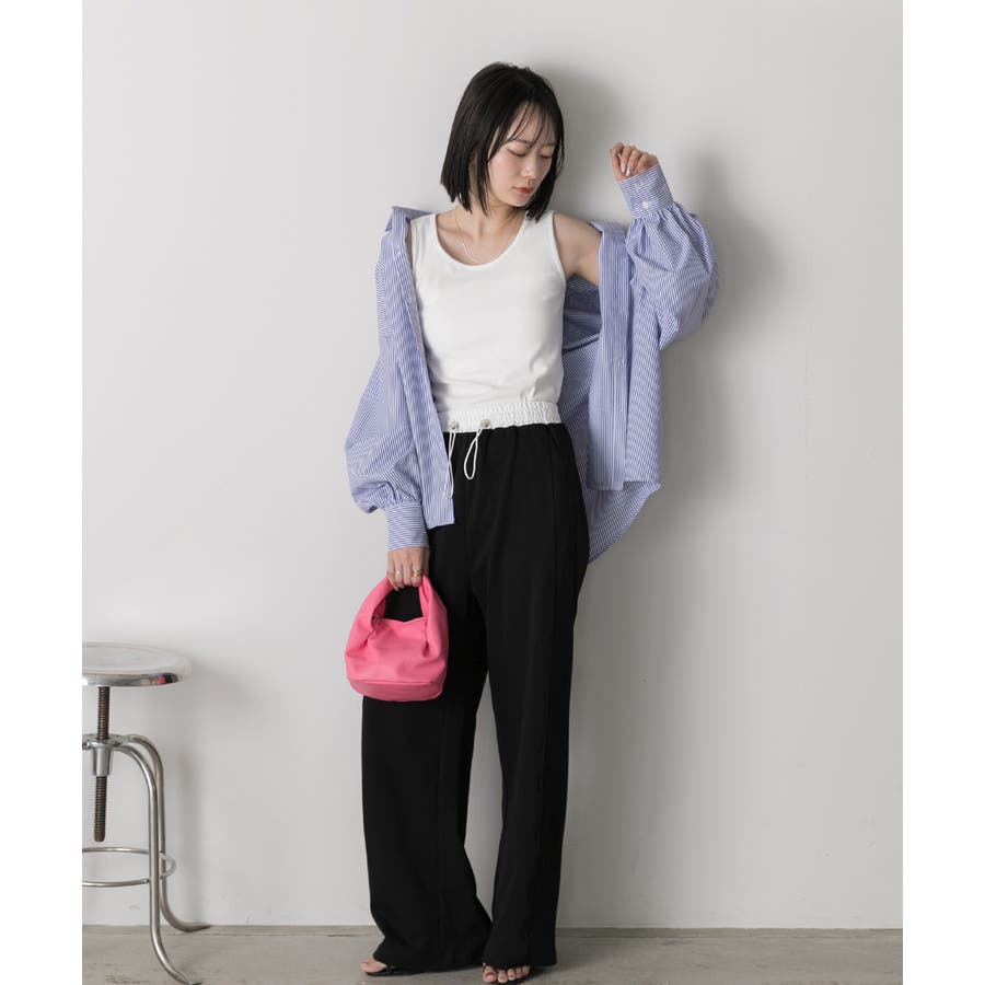 肌触りの良い柔らかな素材感と、楽ちんなウエストゴム仕様+ドロストでオンにもオフにも履きたくなる1着!