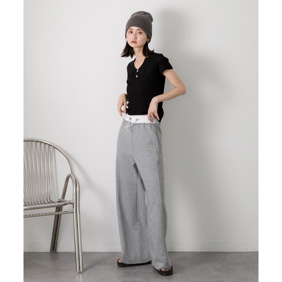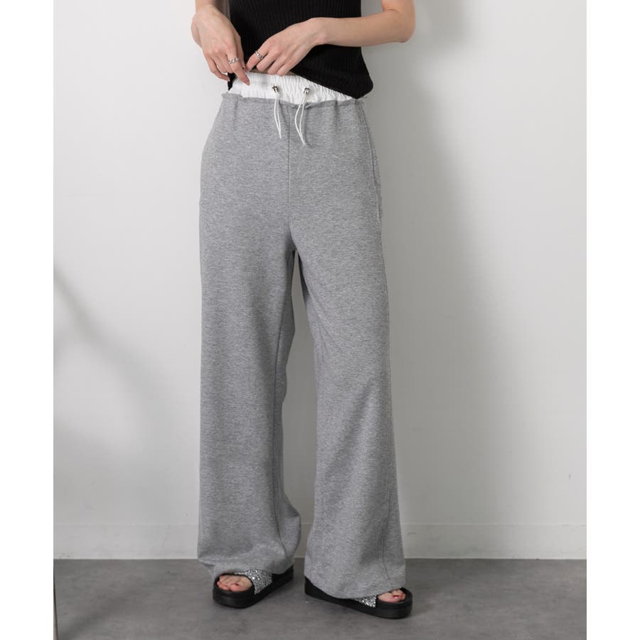 ウエストの切り替え配色がポイントになる大人のきれいめスウェットパンツ