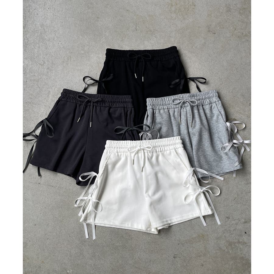 春 春コーデ 春ファッション 春服 夏 夏コーデ 夏ファッション 夏服 カジュアル カジュアルコーデ 大人 大人カジュアル オフィスカジュアル オフィス オフィスファッション オフィススタイル 韓国 韓国ファッション 韓国コーデ プチプラ プチプラファッション レディース Y2K 量産型 キレイめ 綺麗め きれい きちんと リボン リボンショートパンツ リボンパンツ サイドリボン リボンデザイン ショートパンツ ウエストゴム ホーム リラックス 楽 楽ちん 光沢 ポケット付 ポケット アウトドア フェス ホームウェア オフホワイト 白 チャコール モクグレー 黒 ブラック