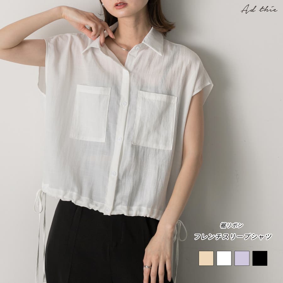 裾リボン フレンチスリーブシャツ