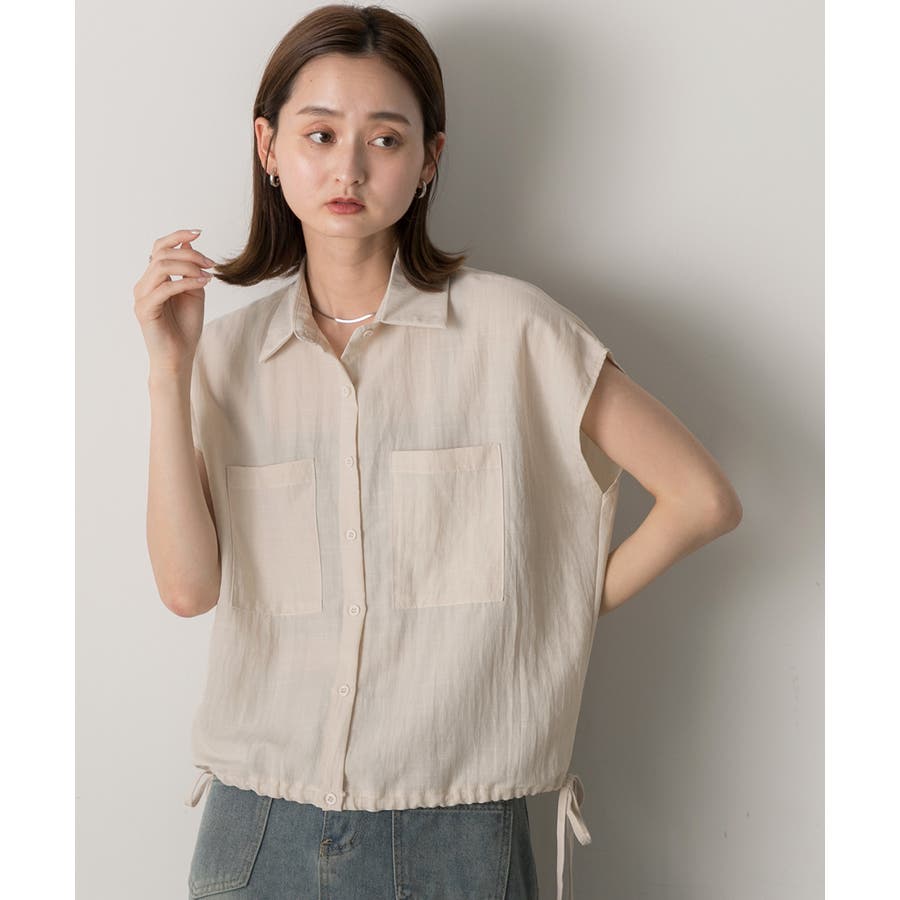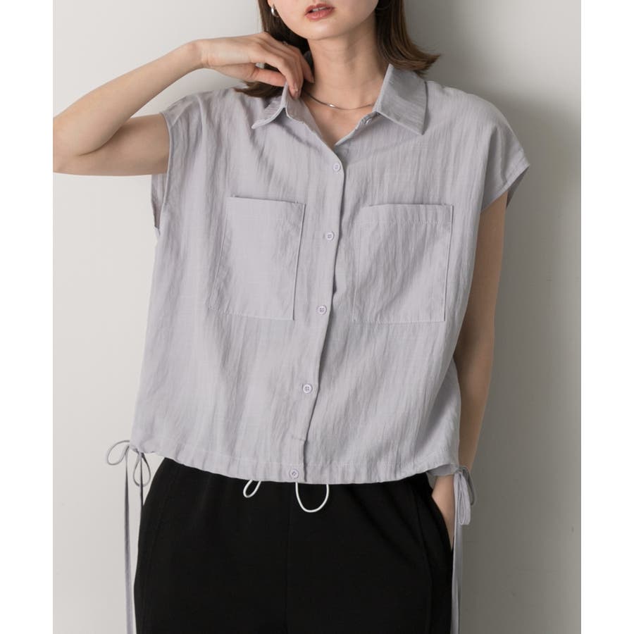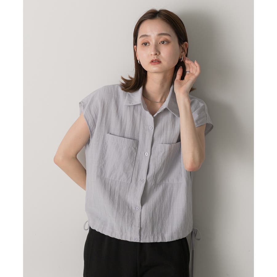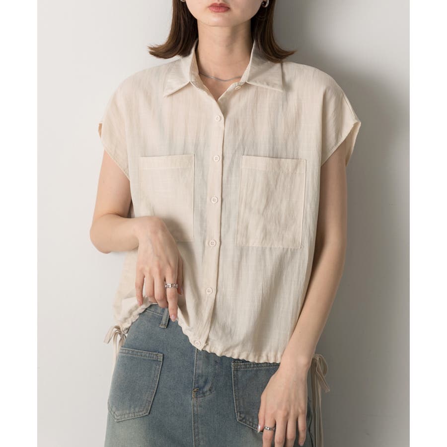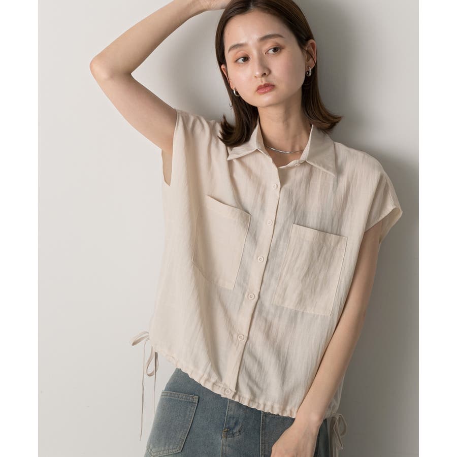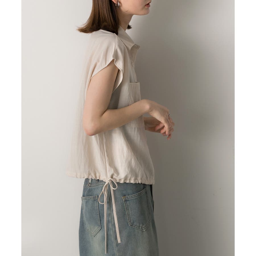 涼しげなリネンライクな生地感と裾ドロストがポイントになるトレンド感たっぷりのフレンチスリーブシャツ