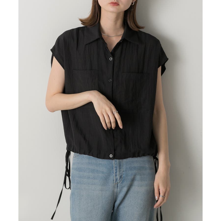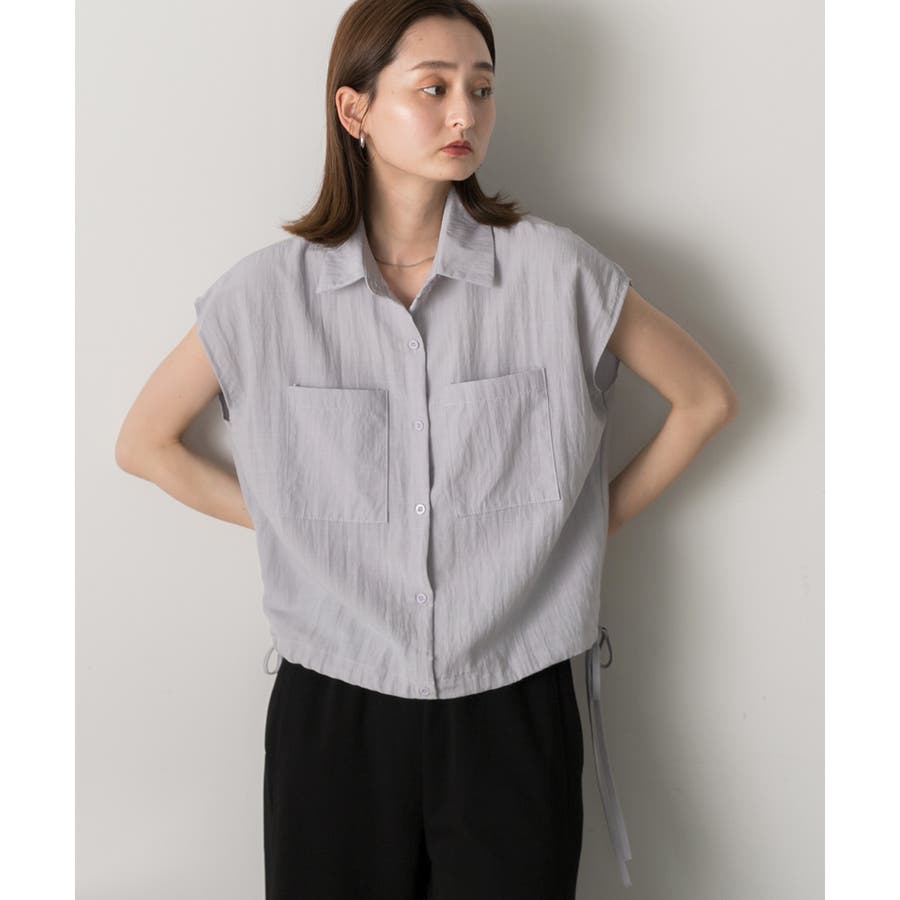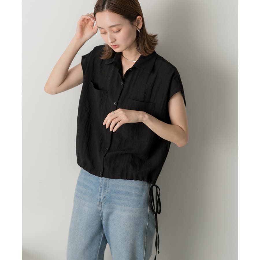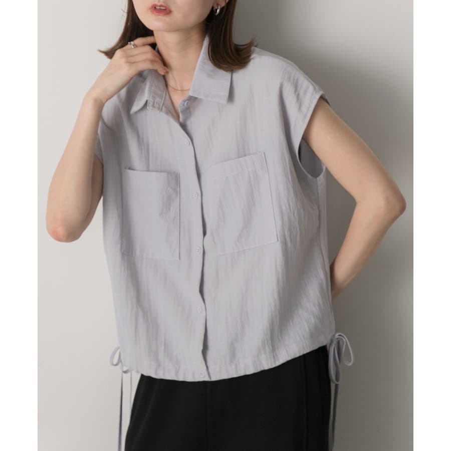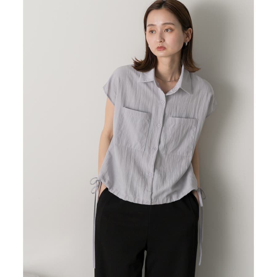 涼しげなリネンライクな生地感と裾ドロストがポイントになるトレンド感たっぷりのフレンチスリーブシャツ