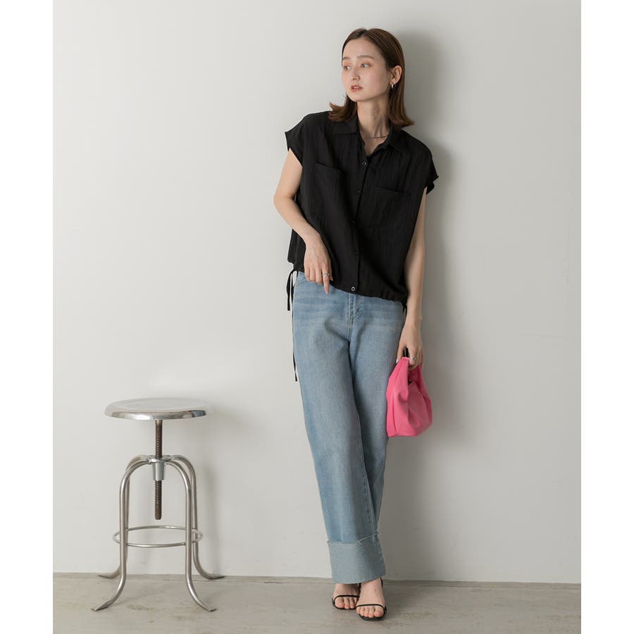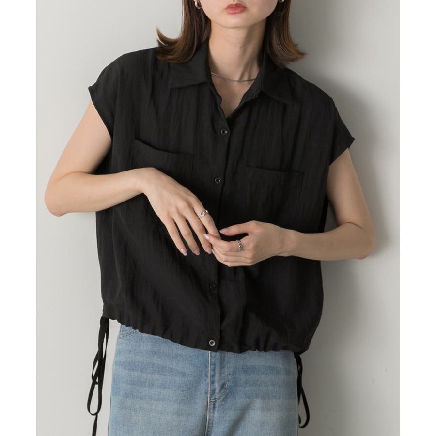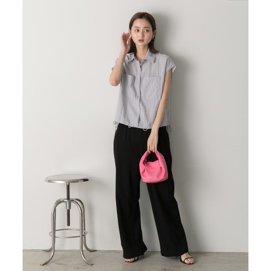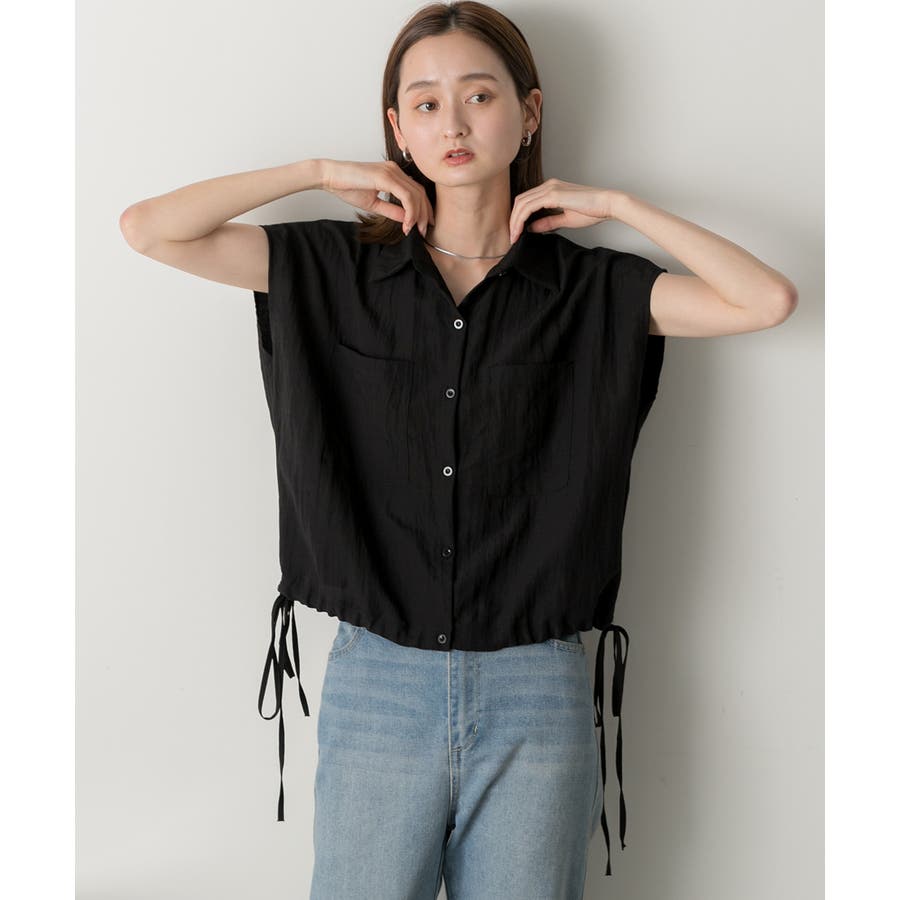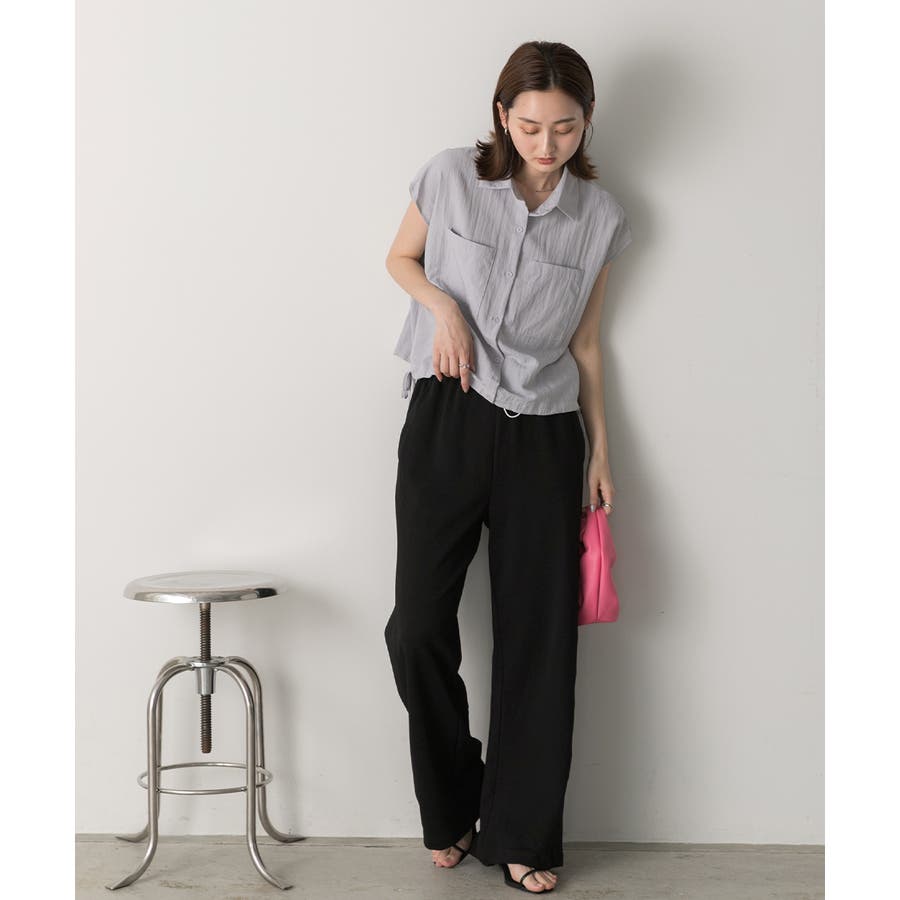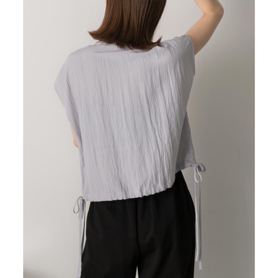 涼しげなリネンライクな生地感と裾ドロストがポイントになるトレンド感たっぷりのフレンチスリーブシャツ