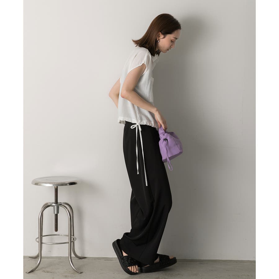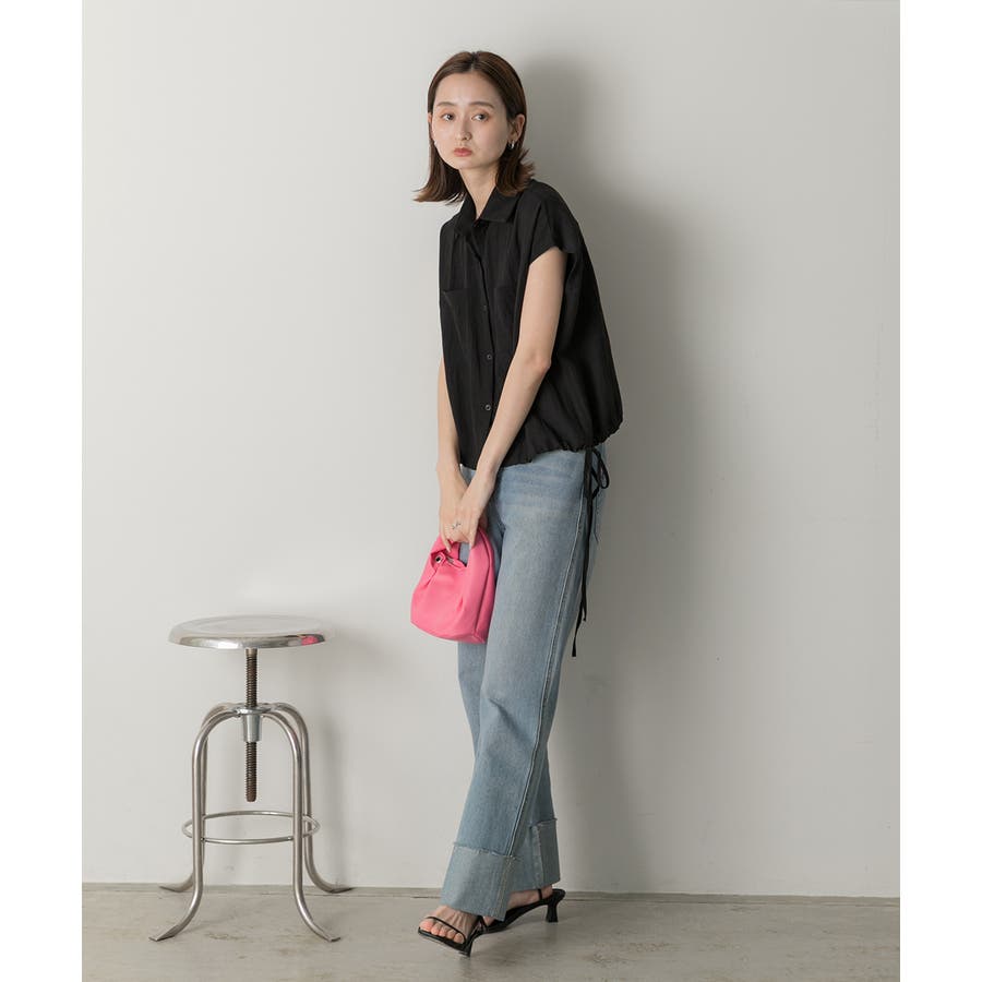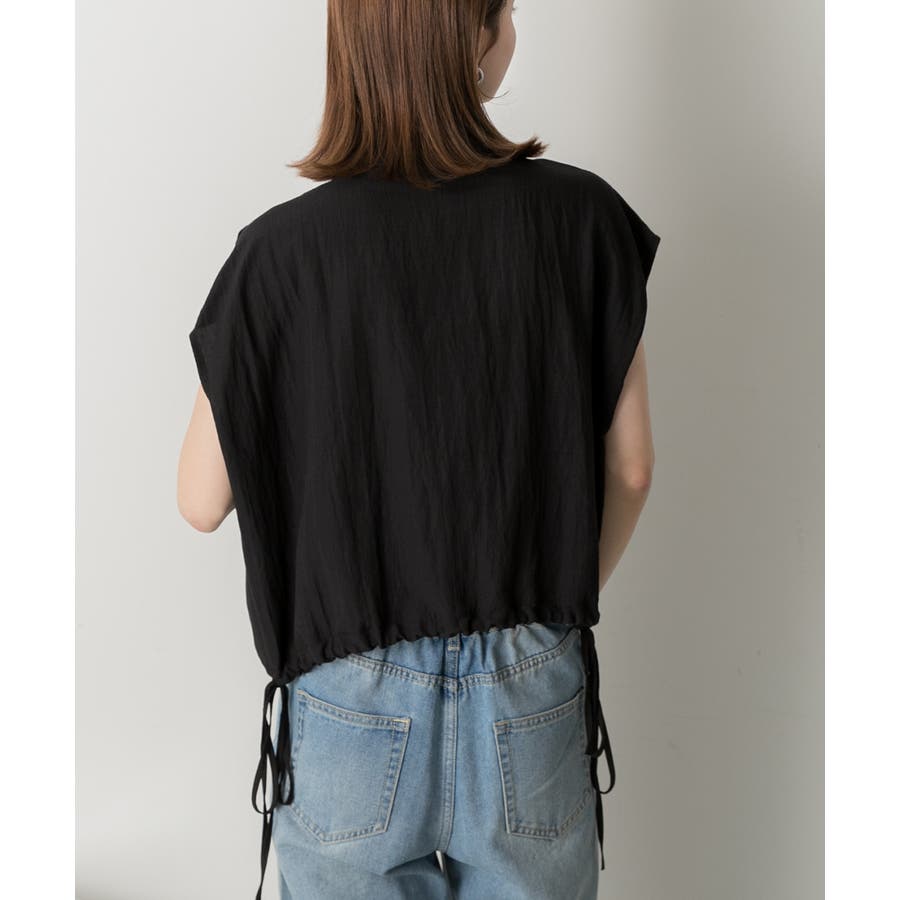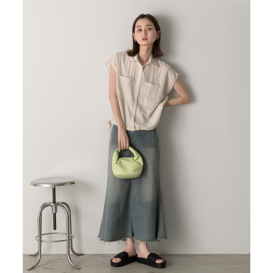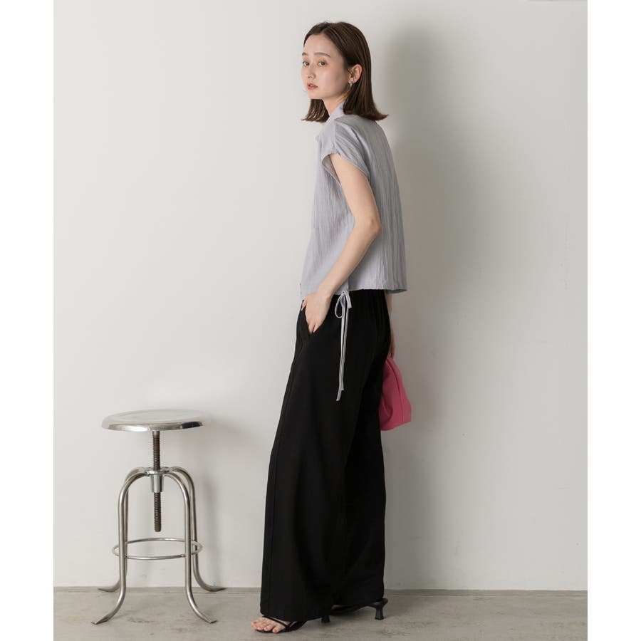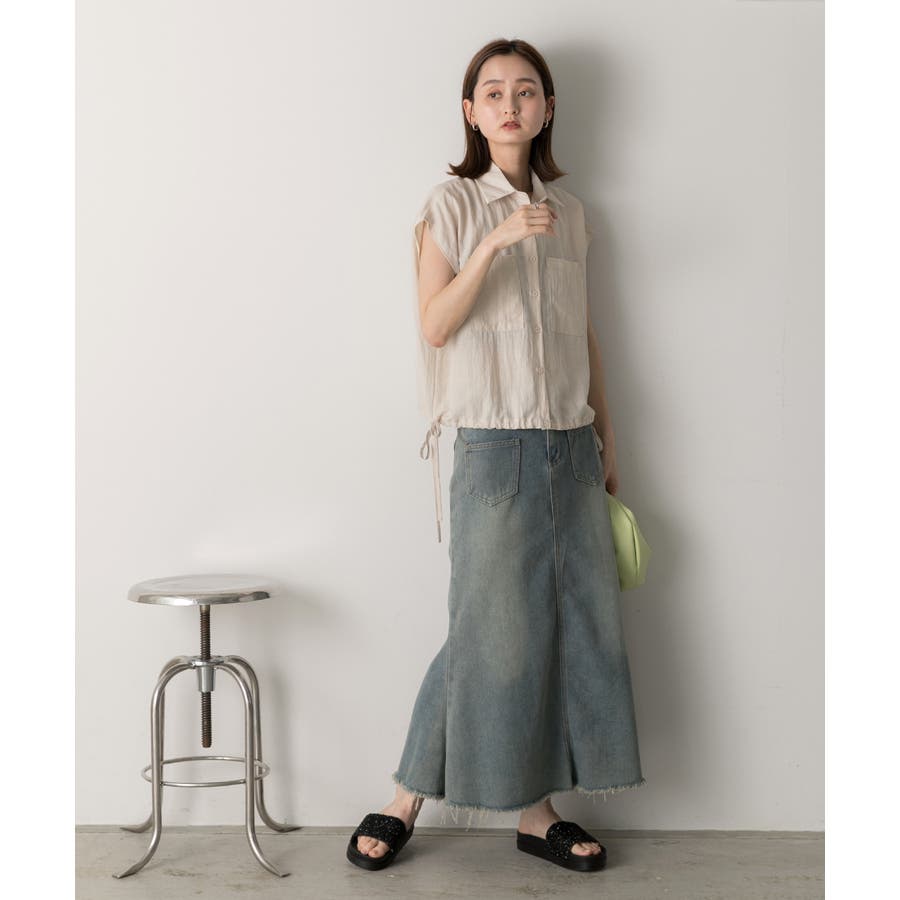 涼しげなリネンライクな生地感と裾ドロストがポイントになるトレンド感たっぷりのフレンチスリーブシャツ
