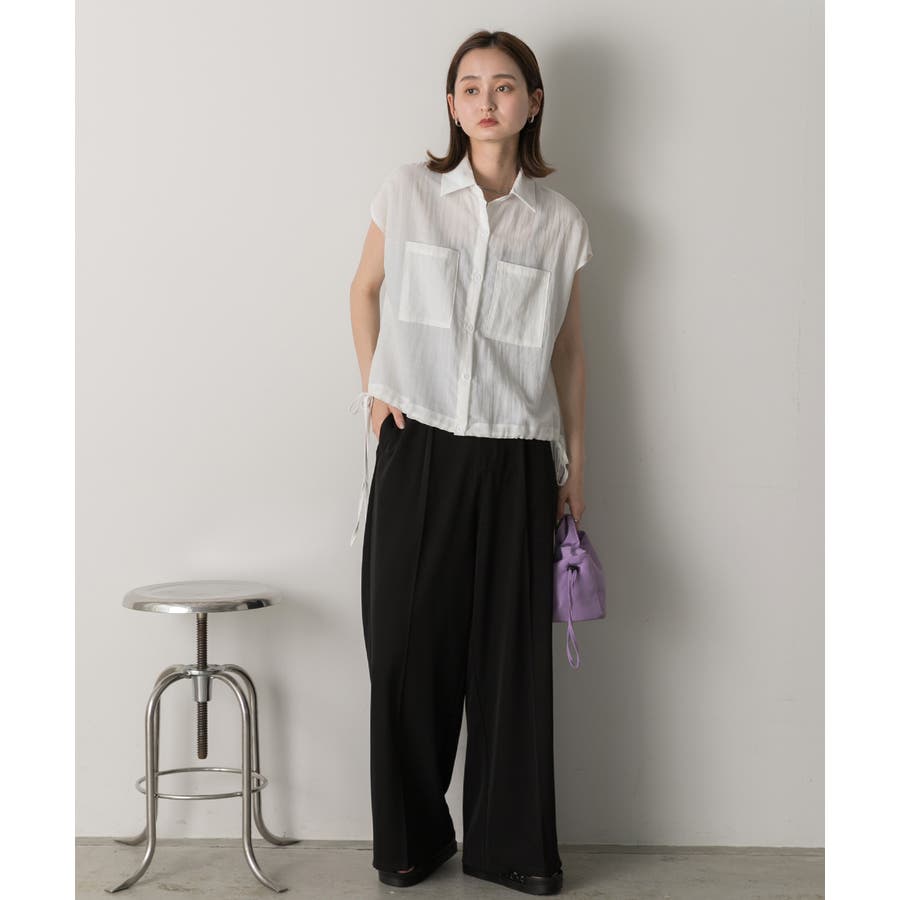春 春コーデ 春ファッション 春服 夏 夏コーデ 夏ファッション 夏服 カジュアル カジュアルコーデ 大人 大人カジュアル オフィスカジュアル オフィス オフィスファッション オフィススタイル 韓国 韓国ファッション 韓国コーデ プチプラ プチプラファッション レディース Y2K 量産型 キレイめ 綺麗め きれい きちんと 半袖トップス 上品 ドロスト シアートップス 裾ドロスト リボン 夏トップス 夏羽織 夏アウター 半袖ブラウス オフィスブラウス 襟付きブラウス シアーアウター ノースリーブ ポケット ポケット付き 無地 無地ブラウス 無地シャツ シンプルシャツ オフホワイト 白 ナチュラル ブラック 黒 パープル