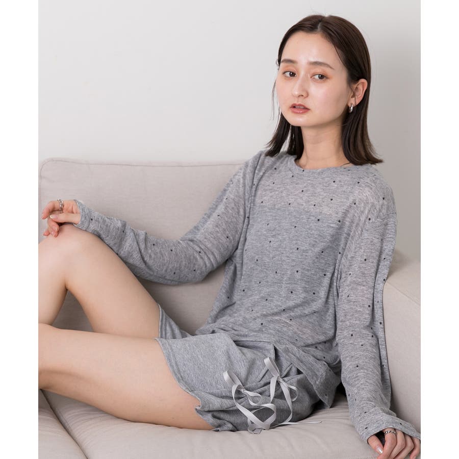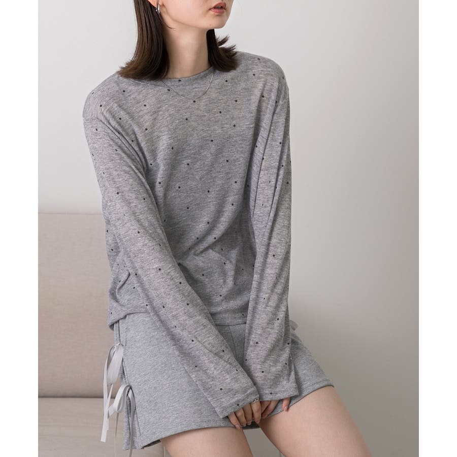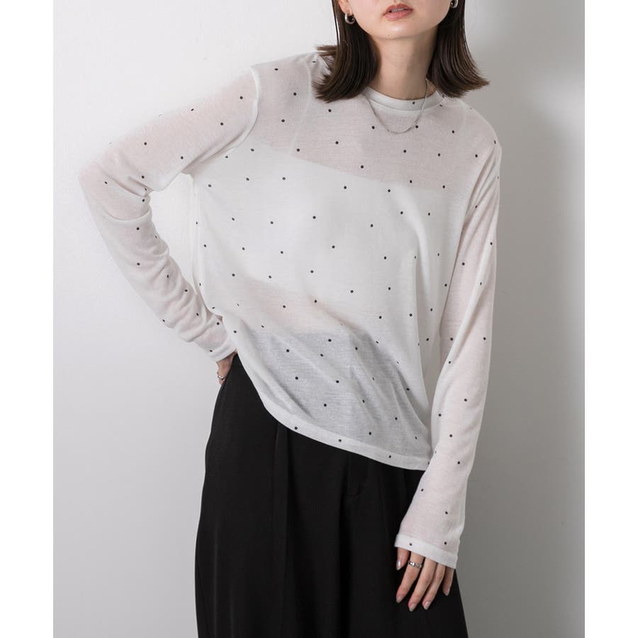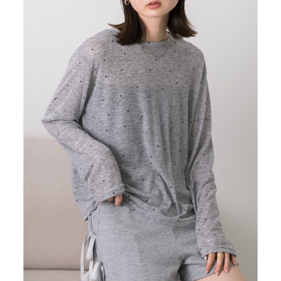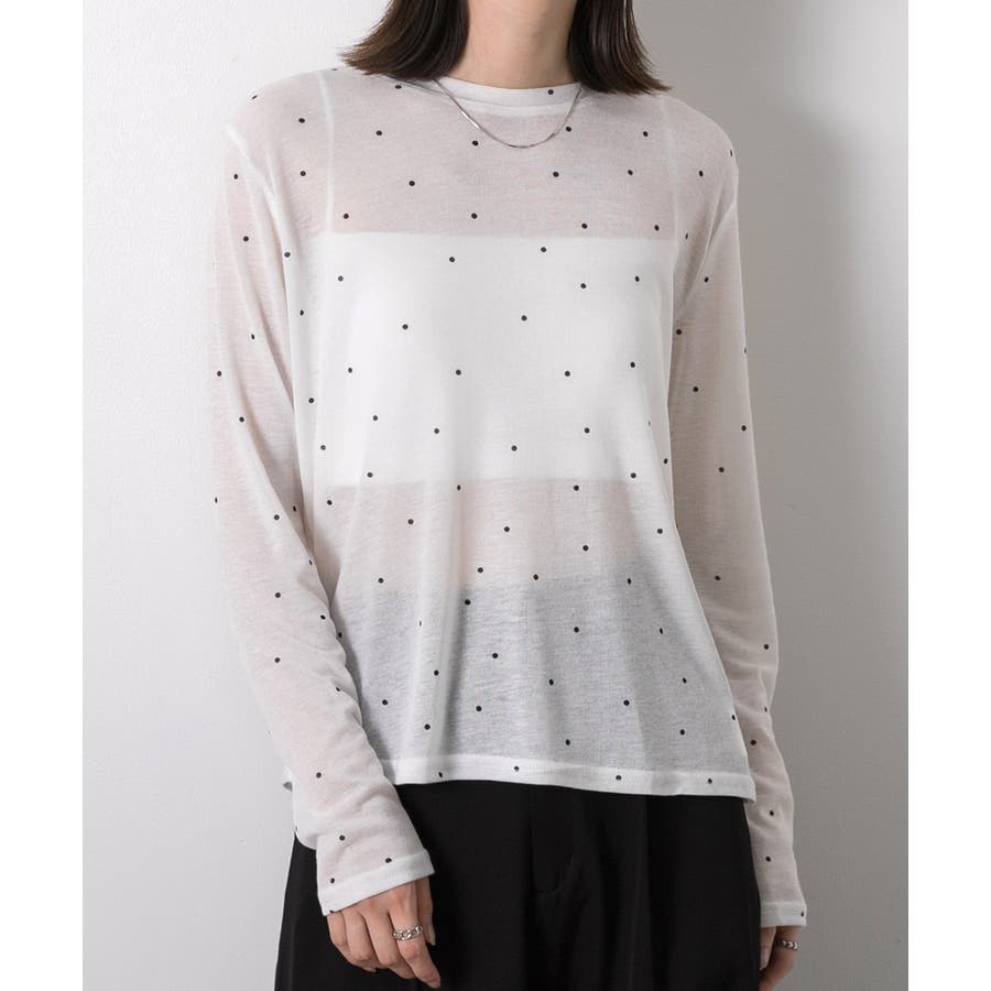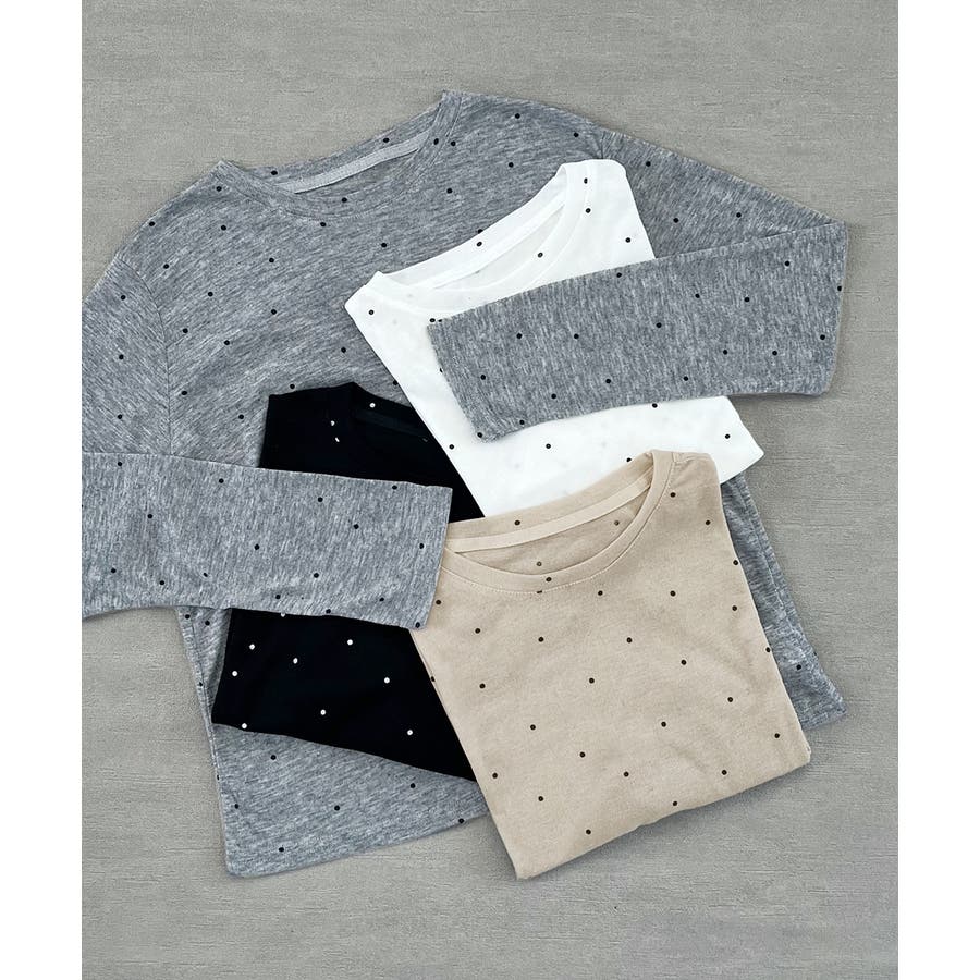春 春コーデ 春ファッション 春服 冬 冬コーデ 冬ファッション 冬服 カジュアル カジュアルコーデ 大人 大人カジュアル オフィスカジュアル オフィス オフィスファッション オフィススタイル 韓国 韓国ファッション 韓国コーデ プチプラ プチプラファッション レディース Y2K 量産型 キレイめ 綺麗め きれい きちんと 長袖トップス ロンT ロングスリーブ シンプルロンT ドット ドット柄 ドットプリント 上品 楽 楽ちん ホーム ルームウェア ルーム オフホワイト 白 モクグレー ブラック 黒 ベージュ