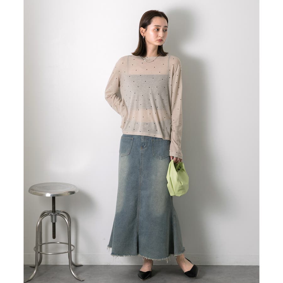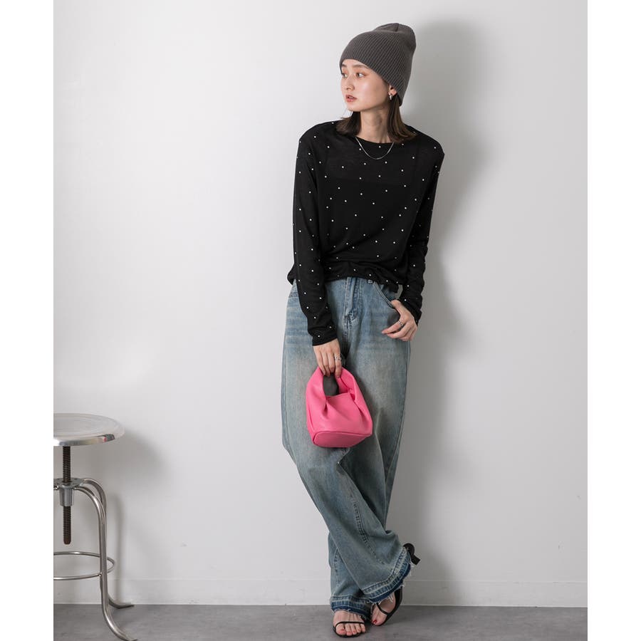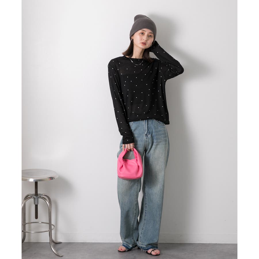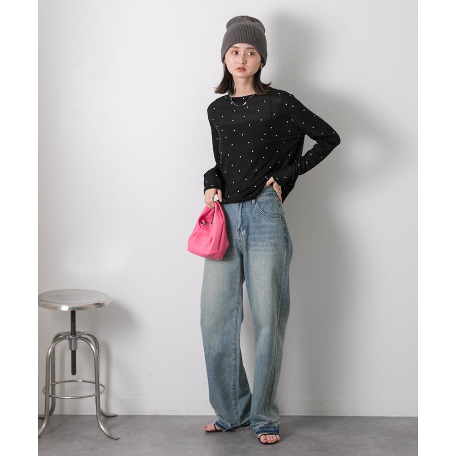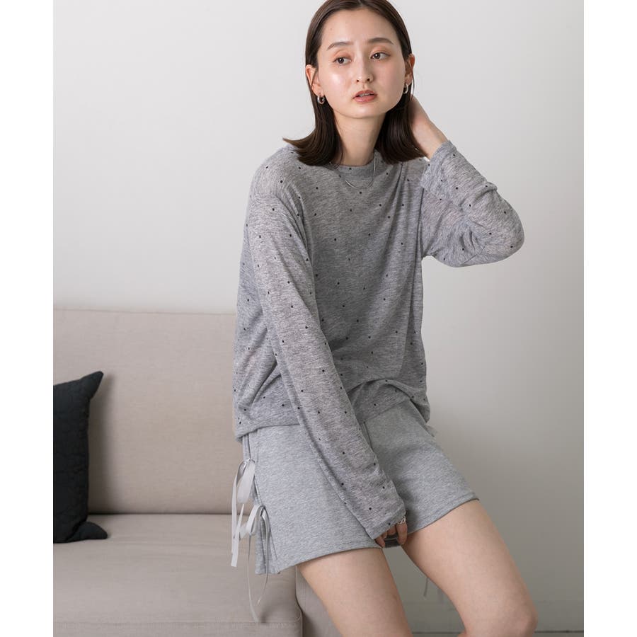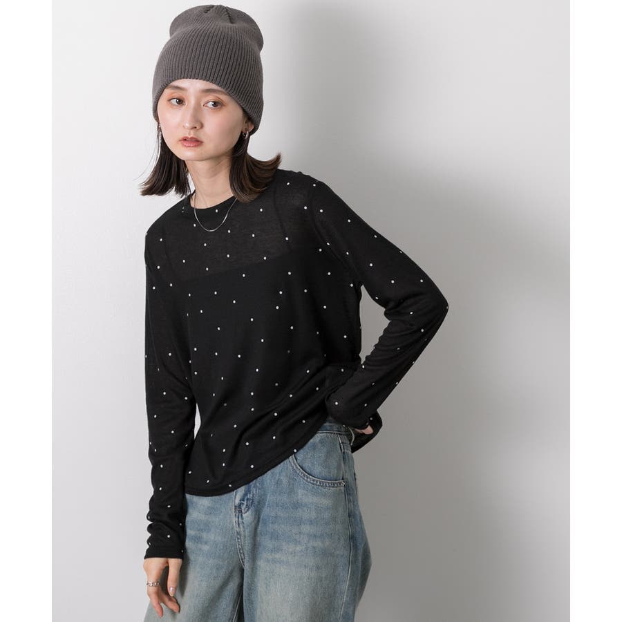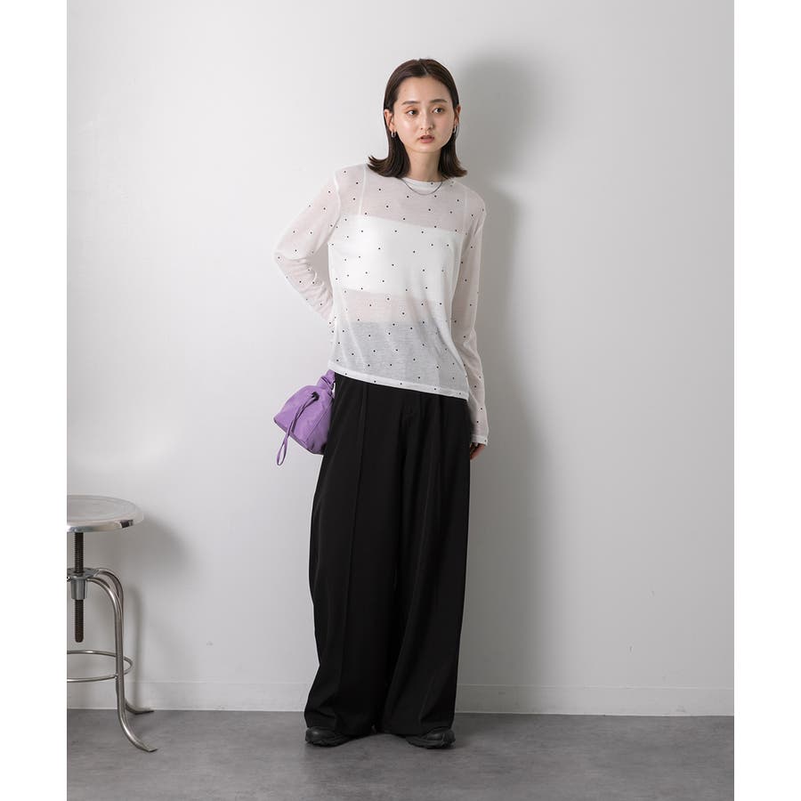 春 春コーデ 春ファッション 春服 冬 冬コーデ 冬ファッション 冬服 カジュアル カジュアルコーデ 大人 大人カジュアル オフィスカジュアル オフィス オフィスファッション オフィススタイル 韓国 韓国ファッション 韓国コーデ プチプラ プチプラファッション レディース Y2K 量産型 キレイめ 綺麗め きれい きちんと 長袖トップス ロンT ロングスリーブ シンプルロンT ドット ドット柄 ドットプリント 上品 楽 楽ちん ホーム ルームウェア ルーム オフホワイト 白 モクグレー ブラック 黒 ベージュ
