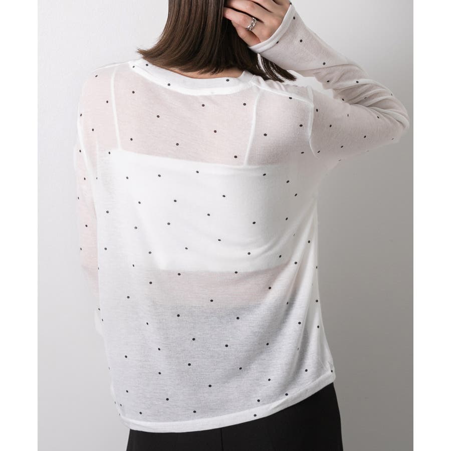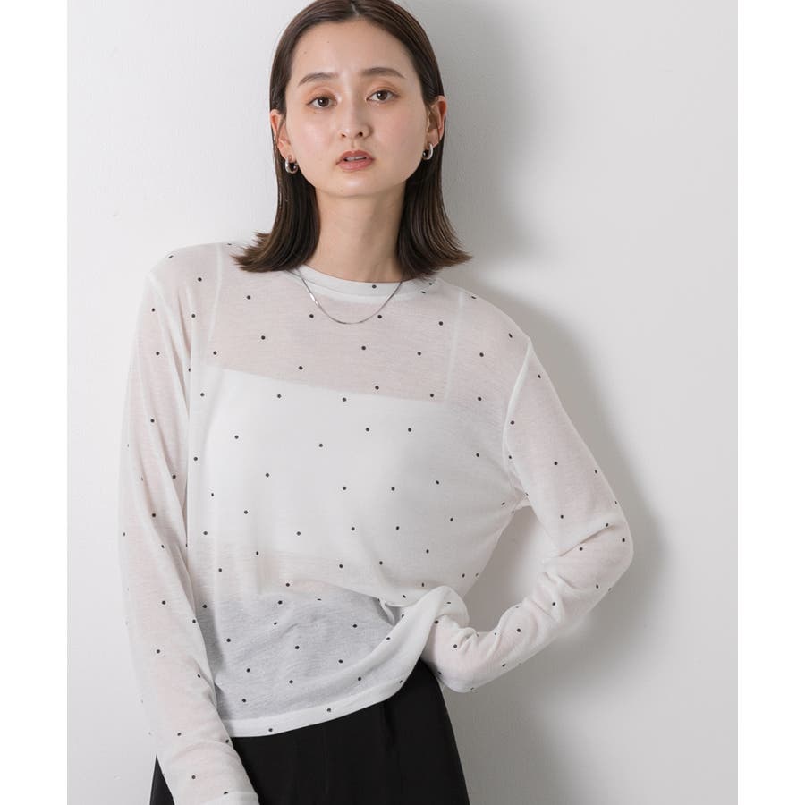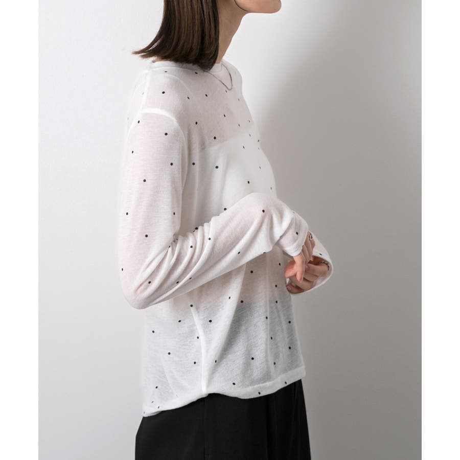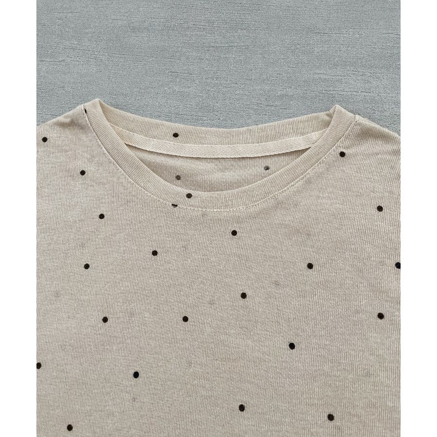 【オフホワイト】クルーネック ドット柄 カットソー
