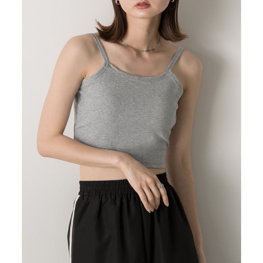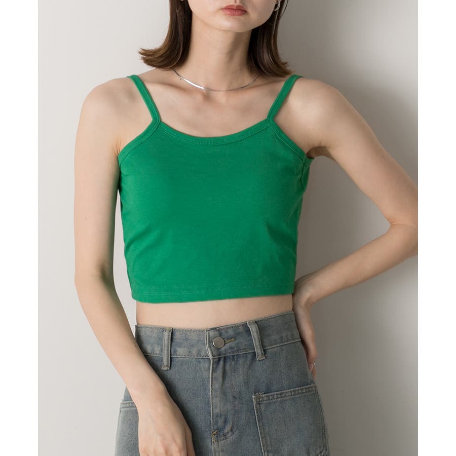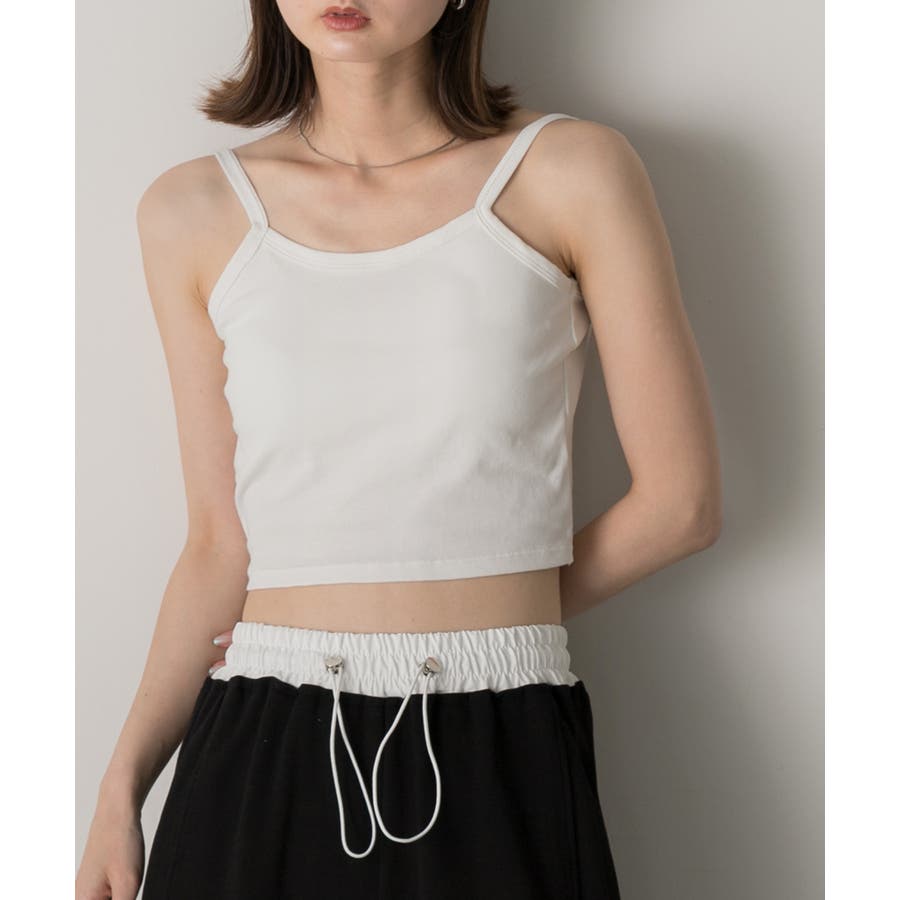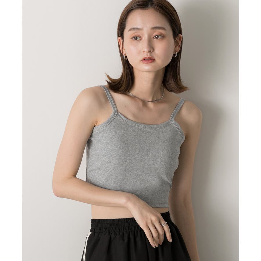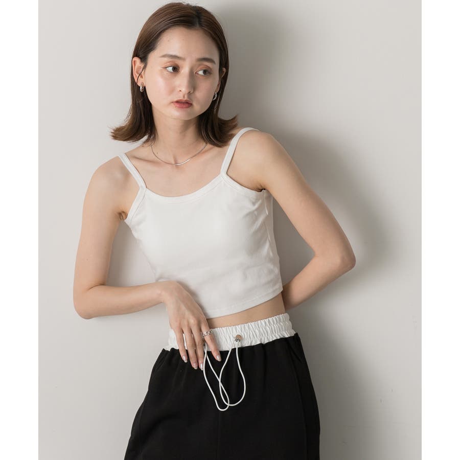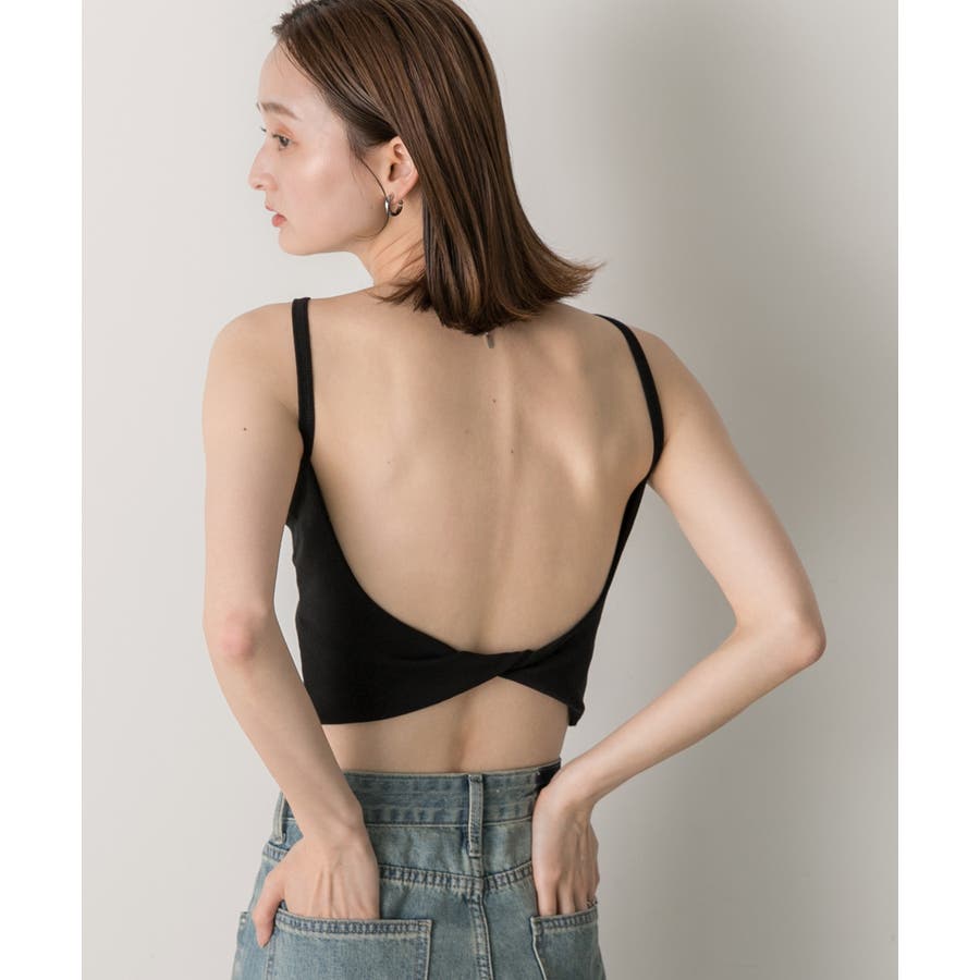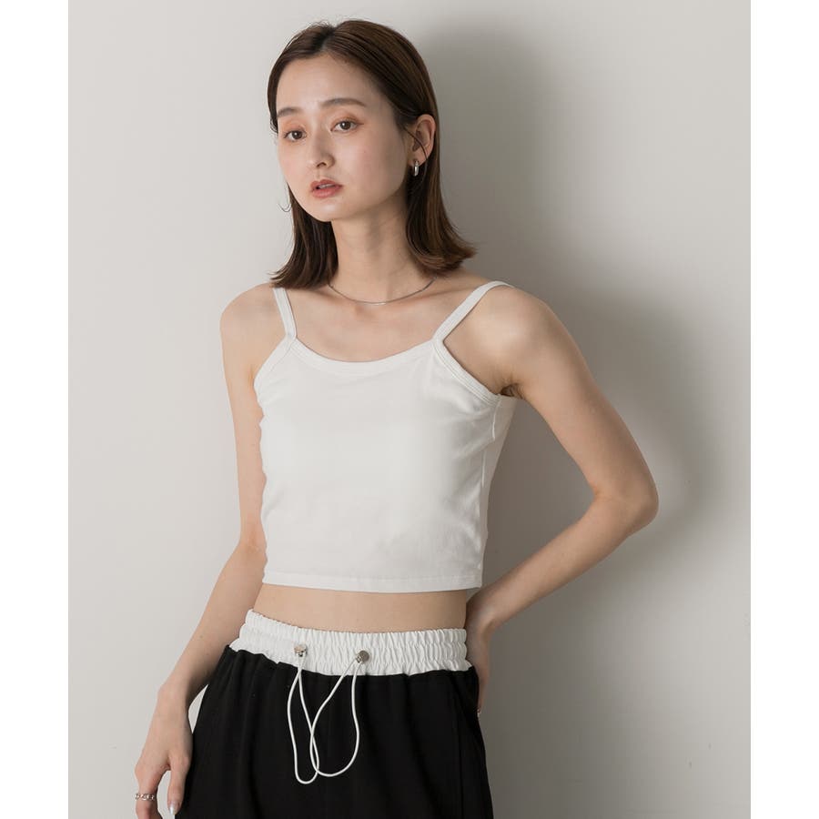 バックスタイルが映えるヘルシーなカップ付きショート丈キャミ