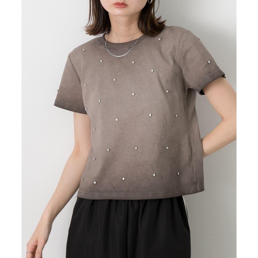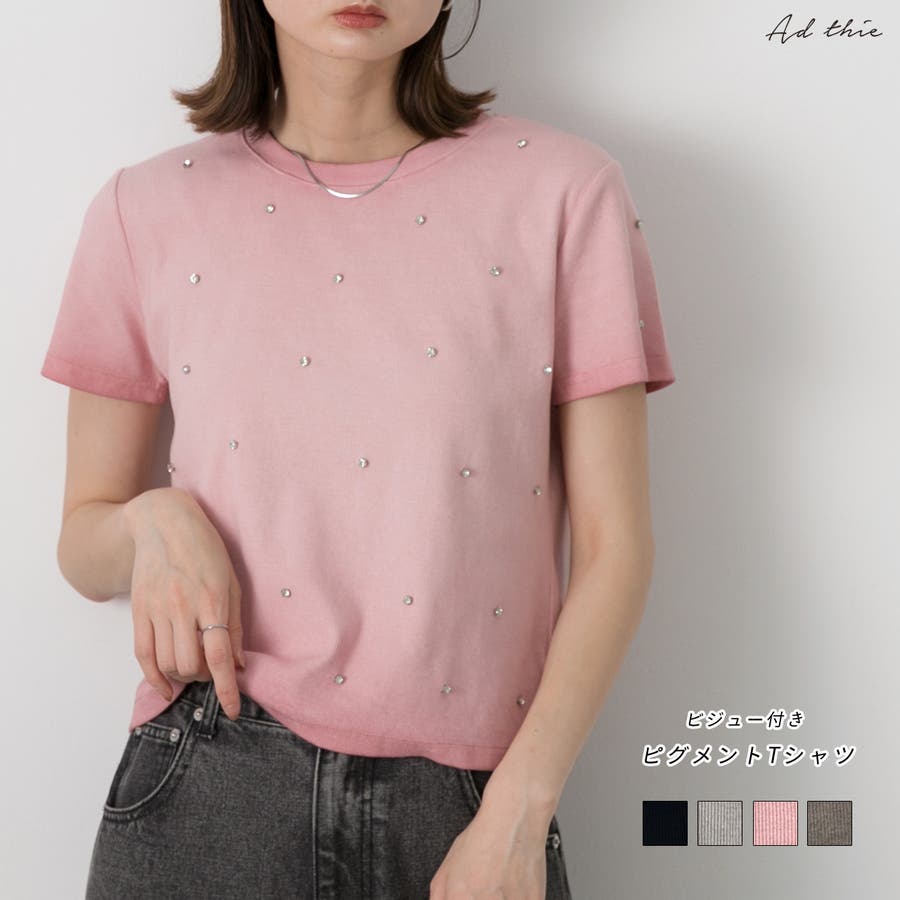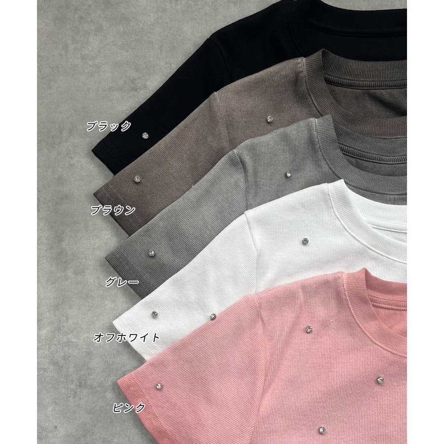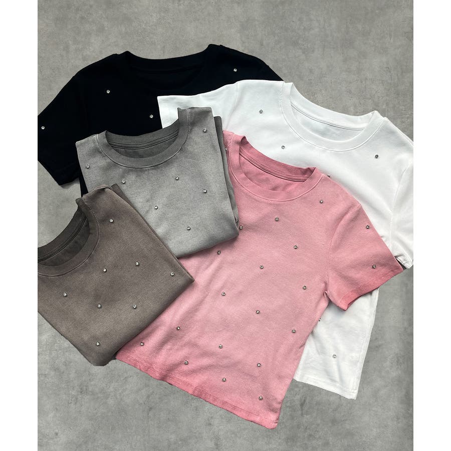 春 春コーデ 春ファッション 春服 夏 夏コーデ 夏ファッション 夏服 カジュアル カジュアルコーデ 大人 大人カジュアル オフィスカジュアル オフィス オフィスファッション オフィススタイル 韓国 韓国ファッション 韓国コーデ プチプラ プチプラファッション レディース Y2K 量産型 キレイめ 綺麗め きれい きちんと ピグメントT ピグメントTシャツ ビジュー ビジュー付きTシャツ ビジューTシャツ 上品 半袖トップス 半袖 ラウンドネック シンプルTシャツ ヴィンテージ ヴィンテージ加工 オフホワイト 白 グレー ブラック 黒 ピンク ブラウン