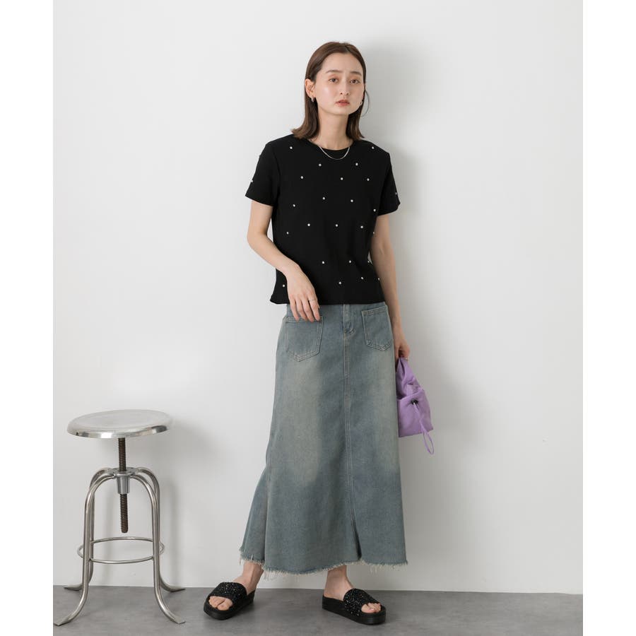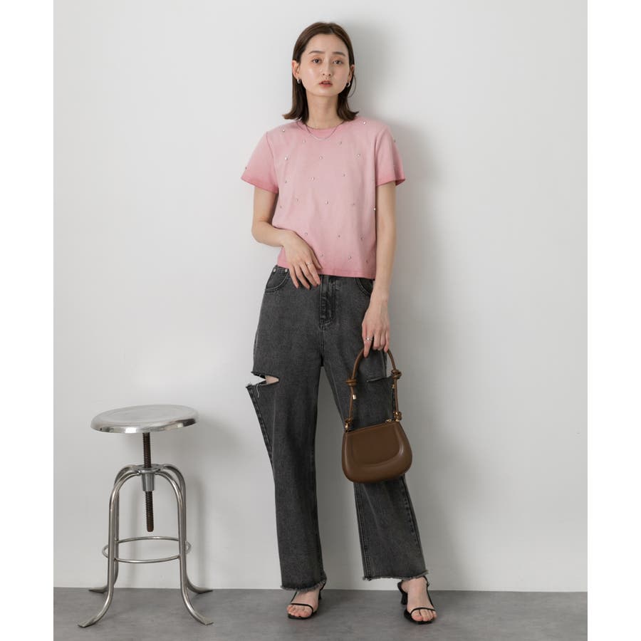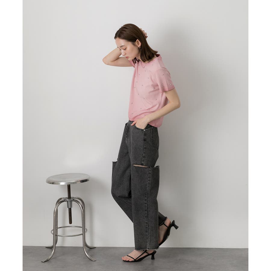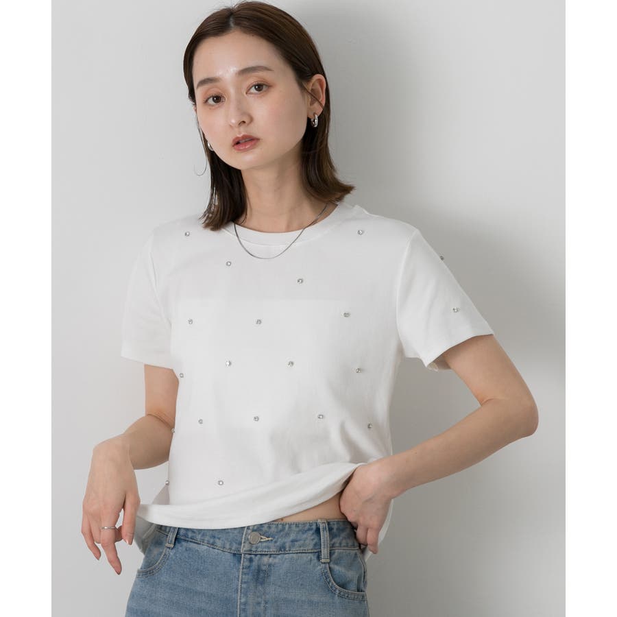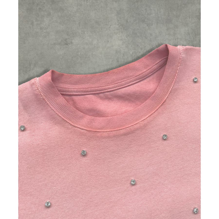 春 春コーデ 春ファッション 春服 夏 夏コーデ 夏ファッション 夏服 カジュアル カジュアルコーデ 大人 大人カジュアル オフィスカジュアル オフィス オフィスファッション オフィススタイル 韓国 韓国ファッション 韓国コーデ プチプラ プチプラファッション レディース Y2K 量産型 キレイめ 綺麗め きれい きちんと ピグメントT ピグメントTシャツ ビジュー ビジュー付きTシャツ ビジューTシャツ 上品 半袖トップス 半袖 ラウンドネック シンプルTシャツ ヴィンテージ ヴィンテージ加工 オフホワイト 白 グレー ブラック 黒 ピンク ブラウン