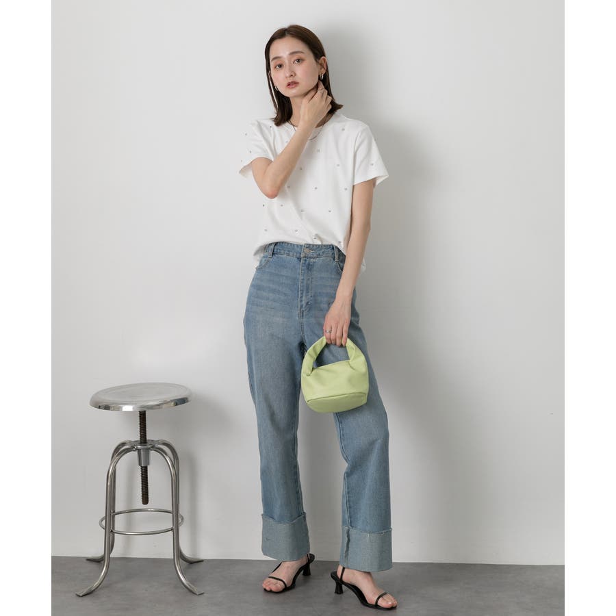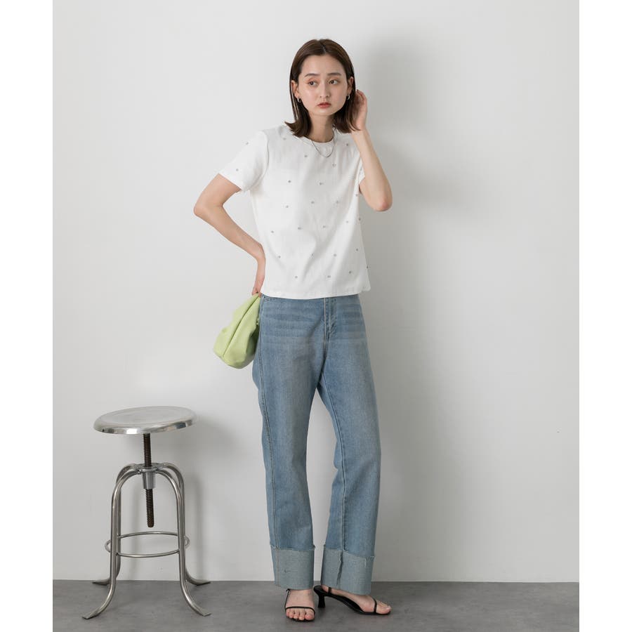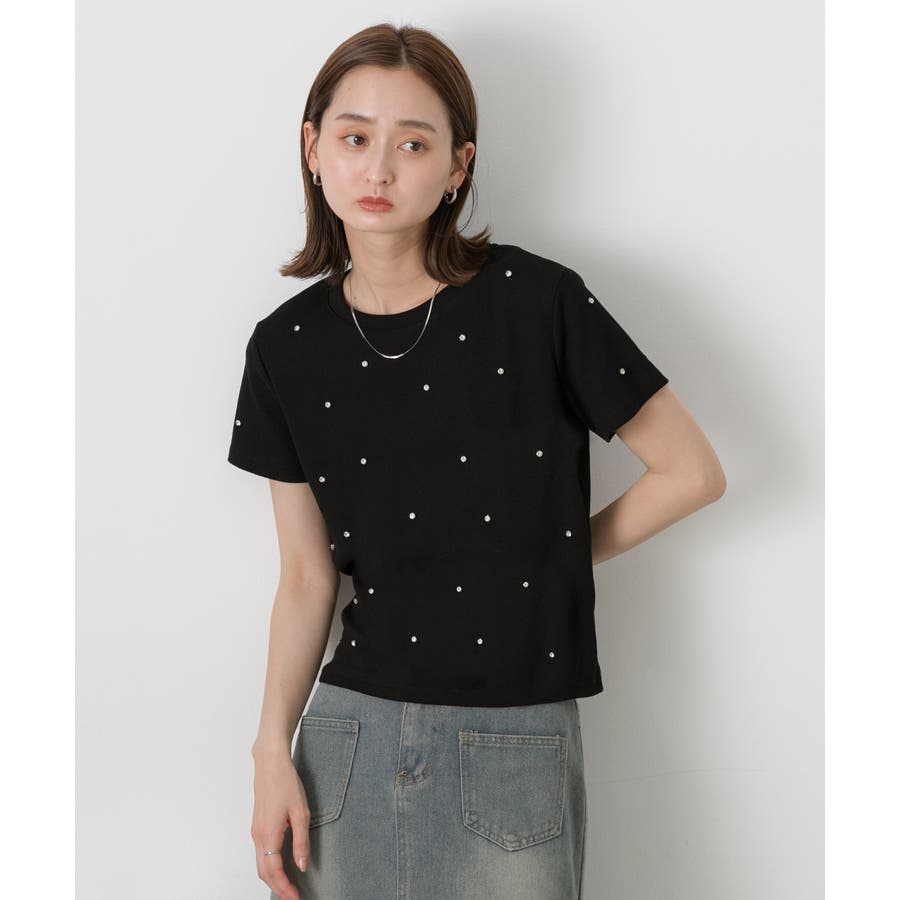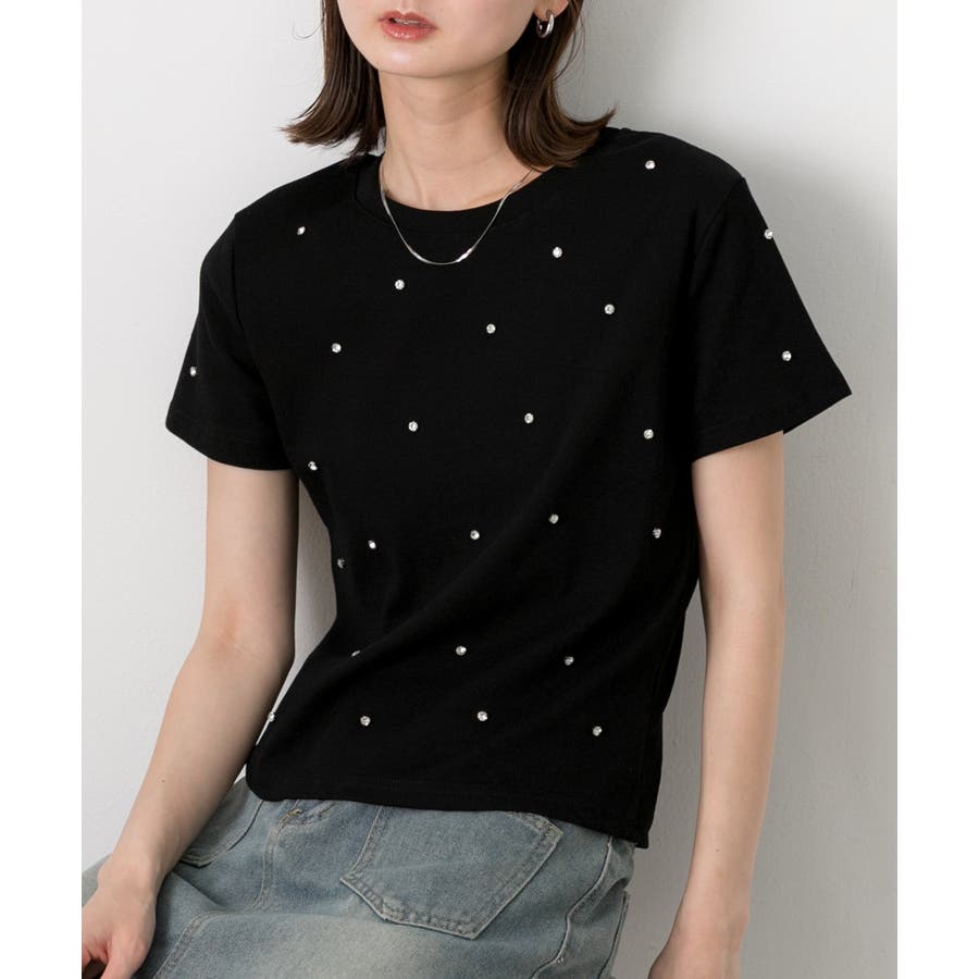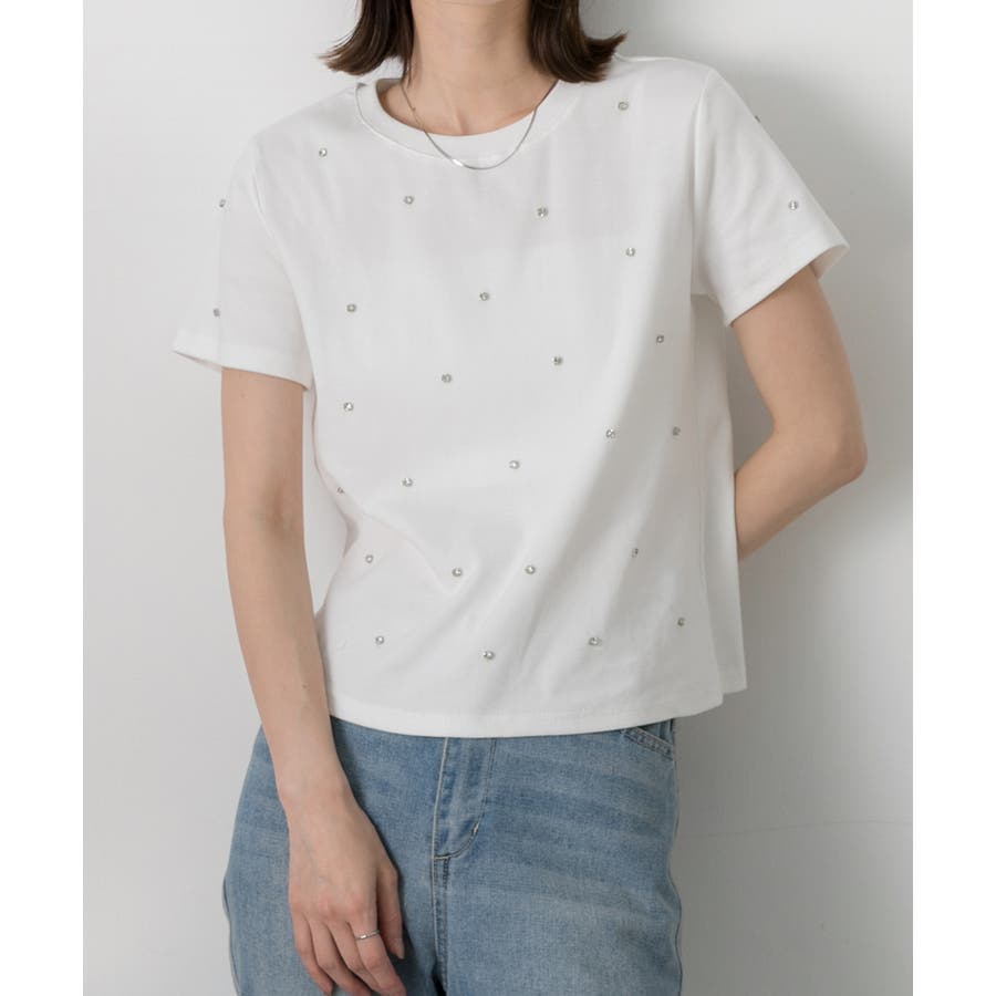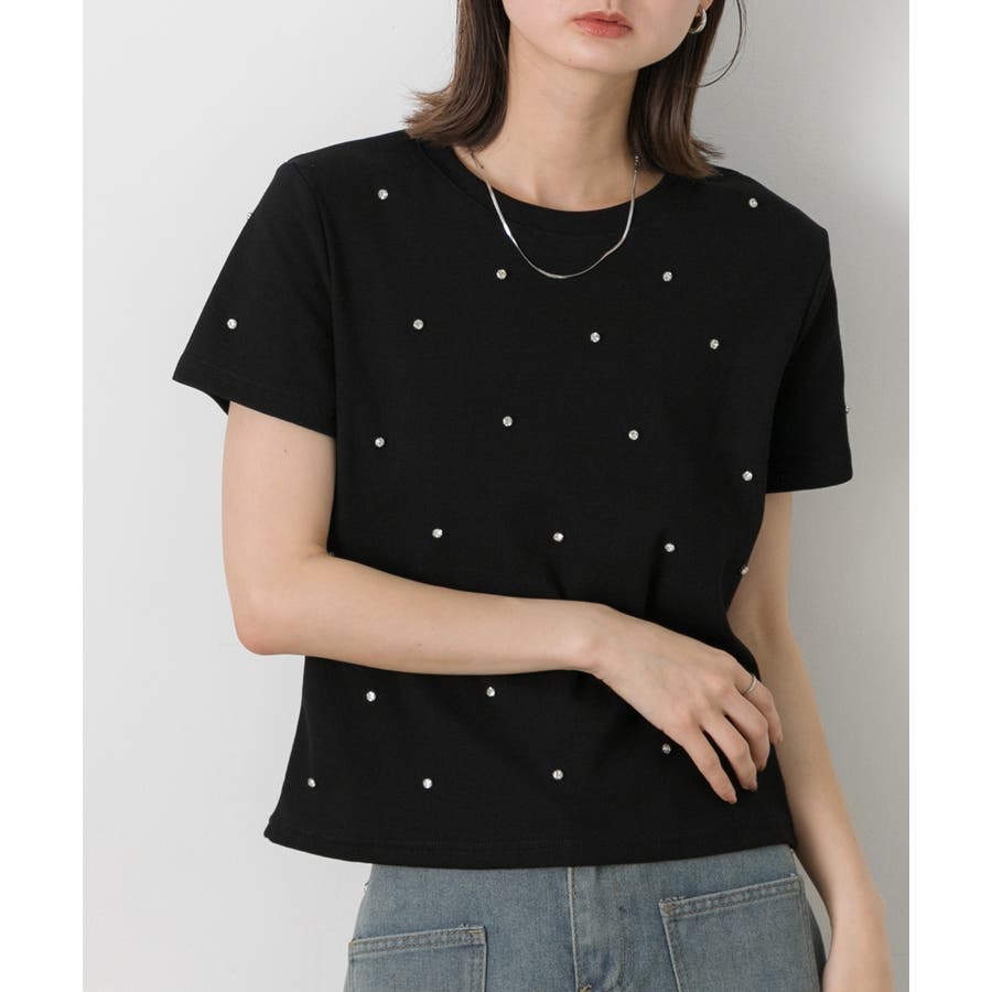 ヴィンテージ加工+ビジューのコーデが華やかになるTシャツ