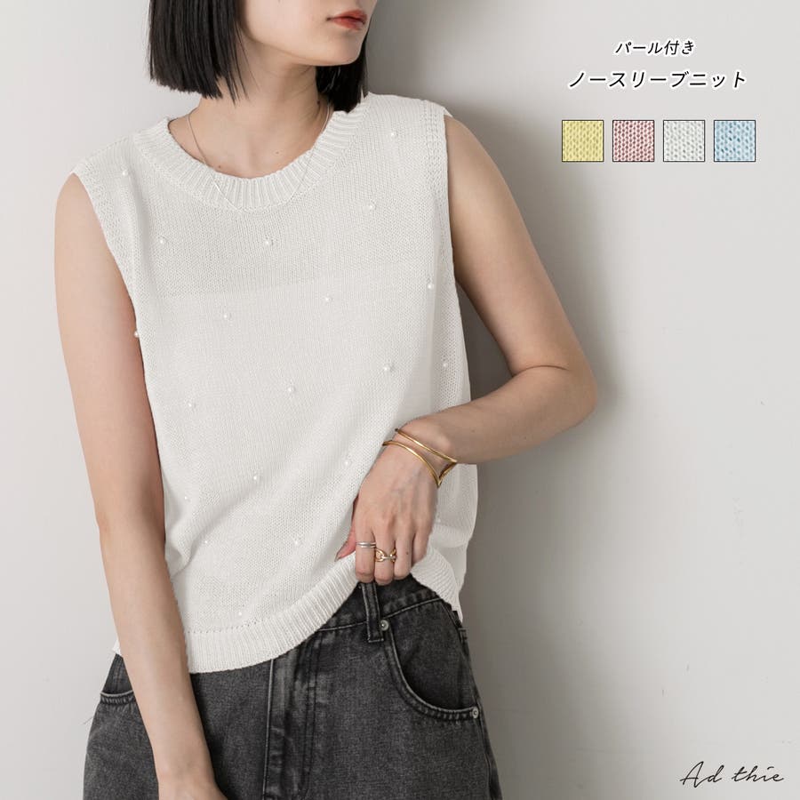 春 春コーデ 春ファッション 春服 夏 夏コーデ 夏ファッション 夏服 カジュアル カジュアルコーデ 大人 大人カジュアル オフィスカジュアル オフィス オフィスファッション オフィススタイル 韓国 韓国ファッション 韓国コーデ プチプラ プチプラファッション レディース Y2K 量産型 キレイめ 綺麗め きれい きちんと 夏ニット サマーニット ニットトップス ニットタンクトップ ノースリーブニット ノースリーブ クルーネック シンプルニット パール付き パール パールトップス パールニット ニットタンク 夏トップス オフホワイト 白 ピンク イエロー ライトブルー